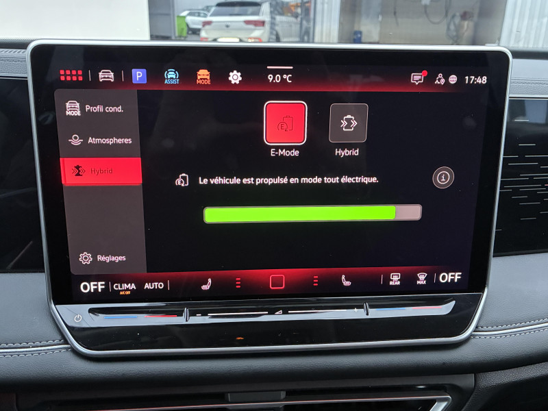 Allumage automatique des projecteurs avec feux de jour à LED et fonction "Coming/Leaving Home" / Assistant d'intersection: système de surveillance périmétrique des intersections. Ce système freine automatiquement le véhicule en cas d'urgence lors d'une intersection / Avertissement de sortie de véhicule: lorsque le conducteur veut sortir du véhicule mais qu'un cycliste ou véhicule s'approche par derrière, le conducteur est averti (le témoin d'aide au changement de voie s'allume sur le rétroviseur, un signal sonore est émis et l'éclairage de la porte passe au rouge) / Blocs de feux AR à LED 3D / Climatisation "Air Care Climatronic" 3 zones / Drive Experience Control: Sélecteur de profil de conduite avec écran OLED tactile - Permet d'ajuster le volume, le profil de conduite ainsi que les "Atmosphères" - Appuyer sur le sélecteur pour afficher les profils de conduite, passez votre doigt sur l'écran tactile pour basculer sur le choix des "Atmosphères" - Des "Atmosphères" sont déja paramétrées dans le véhicule mais vous pouvez créer vos propres atmosphères en définissant une playlist, un affichage Digital Cockpit, un éclairage d'ambiance, un niveau sonore et une tonalité / Frein de stationnement électronique y compris fonction Auto Hold / Jantes en alliage léger 18" "Napoli" 7.5Jx18", pneus 235/55 R18 / Projecteurs IQ.LIGHT HD - Matrix LED: Eclairage à technologie LED avec adaptation dynamique du faisceau lumineux en fonction des sources lumineuses en présence - Projecteurs AV matriciels à LED avec feux de jour à LED et clignotants défilants - Feux AR LED avec clignotants AR défilants - Bandeau lumineux AV/AR - Réglage dynamique du site des phares - Dynamic Light Assist sans lave-phare (Régulation du faisceau lumineux permettant un usage permanent des feux de route tout en préservant les zones qui risquent d'éblouir les autres automobilistes (à partir de 60 km/h)) / Rétroviseur intérieur à réglage jour/nuit automatique / Seuils de portes AV en aluminium / Système Navigation & Infotainment "Discover Media" / Volant multifonction cuir avec palettes au volant / 2 prises de chargement USB-C dans la console centrale AR, capacité de charge jusqu'à 45W / 2 prises USB-C à l'AV, et prise 12 V dans la console centrale / 8 HP / Airbag conducteur et passager AV avec désactivation de l'airbag du passager AV / Airbags de tête pour passagers AV/AR avec Airbags latéraux AV / Airbags rideaux et latéraux AV/AR, airbag central / App-Connect sans fil / Appui lombaire, réglage pneumatique des 2 côtés / Appuie-tête à sécurité optimisée AV / Assistant de freinage d'urgence Front Assist avec système de détection des piétons et cyclistes / Assistant de maintien sur la voie Lane Assist / Badge "eHybrid" sur le hayon à l'AR du véhicule / Bandeau lumineux AV/AR avec logo Volkswagen rétroéclairé / Banquette AR coulissante et dossier divisés, rabattables / Boitiers des rétroviseurs extérieurs et poignées de porte dans la teinte du véhicule / Clignotant séquentiel / Commande vocale IDA / Câble de recharge pour borne domestique Wallbox ou borne publique compatible (11kW) (mode 3, type 2/type 2) / Câble de recharge pour prise de courant domestique (1,8 kW) (mode 2, type 2) / Dispositif start/stop / Dossier de siège passager AV entièrement rabattable / Déverrouillage à distance pour le dossier de banquette AR / Eclairage d'ambiance étendu à 30 couleurs / Eclairage périmétrique avec projection de logo / Ecrous antivol avec protection antivol étendue / Feux de braquage et éclairage tous temps / Générateur de son à basse vitesse "e-sound" / Interface Bluetooth pour téléphone portable / Interface téléphonique "Comfort" avec fonction de chargement inductive pour 2 téléphones avec compartiment réfrigéré / Kit de crevaison - Compresseur 12V et produit de colmatage des pneus / Miroirs de courtoisie éclairés dans les pare-soleils / Oeillets de retenue ISOFIX pour sièges pour enfants sur sièges AR extérieurs et sur siège passager AV, compatibles i-Size / Plancher de coffre / Prise 12V dans le coffre à bagages / Rampes de pavillon anodisées / Régulation dynamique des feux de route "Dynamic Light Assist" / Service d'appel d'urgence e-Call / Siège conducteur ErgoActive / Sièges AV avec réglage lombaire pneumatique quatre points / Sièges AV massant avec fonction massage et fonction de massage pneumatique par trois points de pression / Suppression siège passager rabattable / Système de détection de la signalisation routière / Système de suspension DCC Pro: Le contrôle électronique actif réagit en permanence a l'état de la route et à la situation de conduite et prend en compte la direction, le freinage et l'accélération - L'amortissement idéal est calculé pour chaque roue, et ajusté par les amortisseurs en quelques fractions de seconde. Le conducteur a la possibilité de personnaliser le systeme DCC sur des réglages précis, de très confortable a très sportif - Un confort de conduite optimal, une dynamique de conduite exceptionnelle et un sentiment de sécurité accru sur des chaussées en mauvais état / Tableau de bord Digital Cockpit 10" / Tapis de sol en textile / Trappe de recharge AV gauche du véhicule / Verrouillage centralisé, avec radiocommande et 2 clés pliantes