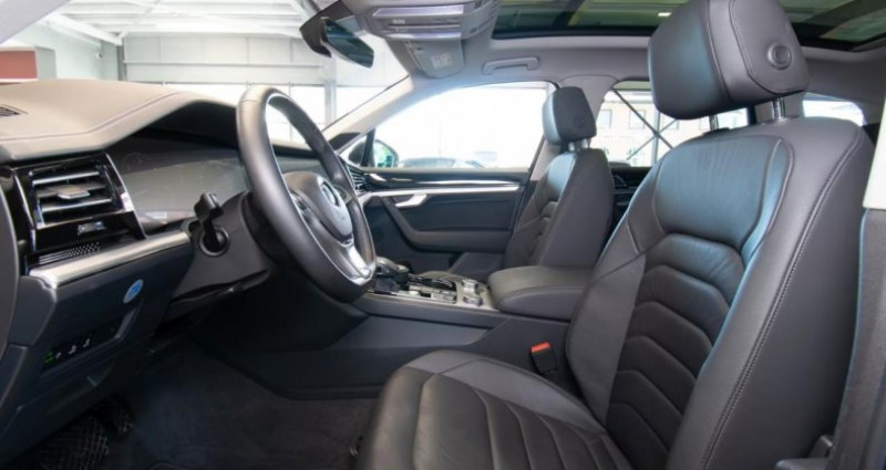 ======= OPTIONS ======= Aide au stationnement avant et arrière + caméra de recul Chauffage auxiliaire Climatisation automatique 4 zones Air Care Climatronic avec filtre anti-allergènes Crochet d?attelage escamotable avec déverouillage électrique et assistant aux manoeuvres ?Trailer Assist? Dynaudio : système son haute définition Dolby 7.1 d?une puissance totale de 730 Watts Jantes en alliage Borbet BY de 23 pouces Pack Black R-Line Pack Innovision Cockpit Peintures métallisées et peintures nacrées Noir Intense et Bleu Moonlight Projecteurs IQ.Light - Matrix LED Réservoir de 90 litres Suspension pneumatique Toit ouvrant panoramique Vitres avant et arrière en verre laminé sécurisé ======= EQUIPEMENTS DE SERIE ======= Pack hiver Régulateur de vitesse adaptatif et prédictif 'ACC' Sellerie en cuir `Vienna' R-line et autres matériaux Sièges avant électriques chauffants, à mémoire côté conducteur Nb. Vitesses : 8 Conso Mixte : l/100