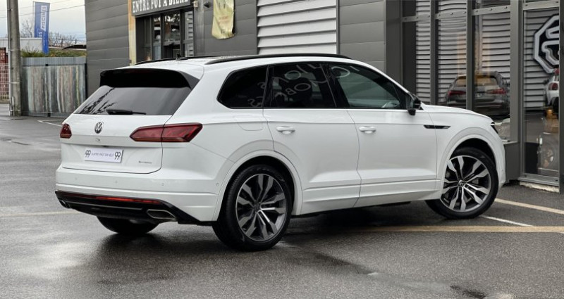 ======= OPTIONS ======= Crochet d?attelage escamotable avec déverouillage électrique et assistant aux manoeuvres ?Trailer Assist? Dynaudio : système son haute définition Dolby 7.1 d?une puissance totale de 730 Watts Jantes en alliage léger 21?? ?Suzuka? 285 40 R21 Night Vision Peinture Blanc Oryx nacré Prise 230V Sièges avant massants et ventilés ======= EQUIPEMENTS DE SERIE ======= 8 haut-parleurs Affichage tête haute Airbags de tête avant arrière Airbags latéraux avant Appel d urgence automatique en cas d accident Blocage de différentiel automatique Câble de recharge M2 UE Schuko coudé 8A Dynamic Light Assist Eclairage d ambiance 30 couleurs Emergency Assist Pack black R-line Pack cuir Vienna avec sièges ergoComfort Park Assist avec caméra de recul Sièges avant électriques chauffants, à mémoire côté conducteur Toit ouvrant panoramique Vitres arrières surteintées Nb. Vitesses : 8 Conso Mixte : l/100