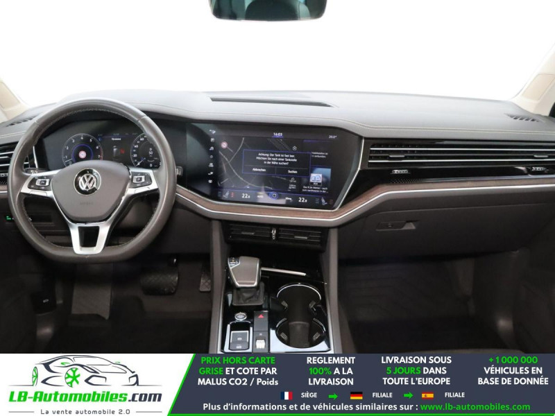 Référence : 1181400 Vos Avantages chez LB-AUTOMOBILES.com / Prix affiché TTC Livré hors carte grise / Livraison sous 10 jours dans toute la France hors 31 / Pas d?avance de frais paiement du véhicule 100% à la livraison par virement. Volkswagen Touareg Neuf remisée, Volkswagen Touareg Occasion Toulouse Beaupuy 31850, Volkswagen Touareg Véhicule sorti de réseau collaborateur, Volkswagen Touareg import, Volkswagen Touareg importateur, Volkswagen Touareg Livraison possible dans toute la France sous 5 jours, Volkswagen Touareg, Volkswagen Touareg Location Option Achat, Volkswagen Touareg LLD, Volkswagen Touareg Longue Durée, Volkswagen Touareg TVA récupérable. Possibilité d'extension de garantie 12, 24,36 mois, Pour tout autres voitures import neufs ou occasions collaborateur fortement remisée, Mandataire Audi, Mandataire BMW, Mandataire Volkswagen, Mandataire Mercedes, Mandataire Peugeot Espagne, Mandataire Renault Espagne, Porsche import, Mandataire Citroën Espagne, Mandataire Seat Espagne, n'hésitez pas à nous contacter. « Sous réserve de vente préalable et erreur de saisie » Principaux équipements : - 4x4 - ABS - Accoudoir - Android Auto - Antidémarrage - Apple CarPlay - Assistance au freinage d'urgence - Assistance de démarrage en côte - Assistant de man?uvre avec remorque - Assistant feux de route - Attache remorque pivotante - Avertisseur de franchissement de ligne - Bluetooth - Boîte de vitesses robotisée - Capteur de lumière - Capteur de pluie - Carnet d'entretien - Cockpit numérique - Commande vocale - Contrôle de la pression des pneus - Diesel avec filtre à particules - Direction assistée - Éclairage d'ambiance - Écran tactile - ESP - Fermeture centralisée - Feux de jour LED - Galerie de toit - Garantie - GPS - Hayon électrique - Isofix - Jantes alliage - Kit mains libres - Ordinateur de bord - Package hiver - Phares LED - Pneus été - Port USB - Réglage électrique des sièges - Réglage électrique des sièges avec fonction mémoire - Régulateur de vitesse adaptatif - Rétroviseur extérieur électrique - Rétroviseur intérieur anti-éblouissement automatique - Rétroviseurs extérieurs rabattables électriquement - Sièges arrières chauffants électriques - Sièges chauffants - Sièges sport - Support lombaire - Suspension pneumatique - Système d'appel d'urgence - Système d'avertissement de la distance - Système de détection de la fatigue - Système de limitation de la vitesse - Système de reconnaissance des panneaux de signalisation - Système de sonorisation - Système Stop & Start - Tuner/radio - Véhicule non-fumeur - Ventilation du siège - Verrouillage centralisé sans clé - Vitres électriques - Vitres teintées - Volant chauffant - Volant en cuir - Volant multifonction