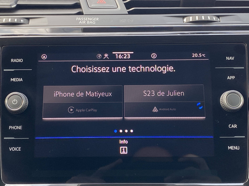 Activation automatique des feux de détresse lors d'un freinage d'urgence / Aide au stationnement AV/AR avec signaux sonores et visualisation de la distance des obstacles sur l'écran / Climatisation automatique "Air Care Climatronic", 3 zones avec filtre anti-allergènes, réglable séparément pour conducteur et passager et les sièges AR / Eclairage à LED de la plaque d'immatriculation AR / Jantes en alliage "Karlstad" 5Jx16"et pneumatiques 205/60 R16 / Rétroviseurs extérieurs électriques, à réglage jour/nuit automatique et asphérique côté conducteur et abaissement côté passager lors d?une marche AR / Système Front Assist : système de freinage automatique en cas de détection d'obstacle / Système Navigation & Infotainment "Discover Media" avec écran tactile 8?? / Système Start/Stop automatique et dispositif de récupération de l'énergie de freinage / 2 ports USB-C compatibles Apple / 2 spots de lecture AV et 2 spots de lecture AR / Accoudoir central AV réglable avec compartiment de rangement, porte-gobelet intégré, et prise 12 V pour les passagers AR / Airbags frontaux AV (Airbag passager désactivable par clé) / Airbags rideaux pour 3ème rangée / Airbags rideaux pour les 1ère et 2ème rangées / App-Connect sans fil - affichage et contrôle via l?écran tactile de la voiture, du contenu, des fonctions et des applications compatibles présents sur le Smartphone (compatibilité avec les systèmes Apple CarPlay, Apple CarPlay sans fil, Android Auto, MirrorLink). Seuls les contenus validés et utilisables en «main libre» peuvent fonctionner. / Appuis-tête (3) réglables en hauteur sur la 2ème rangée de sièges / Avertisseur sonore et témoin d'oubli du port de la ceinture de sécuritéà l'AV et témoin d'oubli du port de la ceinture de sécurité pour la 2ème rangée / Boitiers des rétroviseurs extérieurs couleur carrosserie / Calandre noire avec 3 lamelles chromées / Ceintures de sécurité (3) trois points sur la 2ème rangée de sièges / Ceintures de sécurité AV 3 points à enrouleur réglables en hauteur avec prétensionneurs / Compartiment de rangement sous la planche de bord / Compartiment de rangement sur la planche de bord avec trappe / Compartiment de rangement à gauche du volant / Console de pavillon avec un grand compartiment de rangement / Console de pavillon avec un petit compartiment de rangement / Correcteur électronique de trajectoire ESP, système d'antiblocage de roues ABS, blocage électronique de différentiel EDS, antipatinage électronique ASR, régulateur de couple MSR et assistance au contrebraquage / Couvre-coffre enroulable et amovible / Câble adaptateur USB-C vers USB-A / Digital Cockpit / Direction électromécanique à assistance variable en fonction de la vitesse / Dossier du siège passager rabattable (Fold Flat) / Eclairage de jour / Entourage des aérateurs chromées / Essuie-glace AV avec commande d'intermittence / Fatigue Detection : système de détection de fatigue du conducteur qui analyse le comportement du conducteur et recommande un temps de repos par l'apparition d'un message visuel et sonore / Frein à main électrique / Hill-Hold : Assistant au démarrage en côte grâce à une fonction anti-recul / Interface téléphone Confort avec chargeur induction / Kit de réparation pour crevaison (compresseur 12 V et bombe anti-crevaison) / Lane Assist: Assistant de maintien dans la voie / Mesures de protection des piétons et des cyclistes étendues / Miroir de courtoisie éclairé sur les pare-soleil / Oeilletons de fixation (4) dans le coffre / Pare-chocs peints dans la couleur de carrosserie / Plancher de coffre modulable / Poignées de portes couleur carrosserie / Porte-bouteille dans toutes les portes (1,5 L à l?AV et 1 L à l?AR) / Pre Safe Assist - Système proactif de protection des passagers / Prise 12 V dans la console centrale AR / Prise 12 V dans le coffre / Projecteurs antibrouillard AV avec éclairage statique d'intersection / Préparation pour "VW Connect" et "VW Connect Plus" vous permet d?obtenir des informations sur votre véhicule directement sur votre smartphone. Accès au concessionnaire Volkswagen le plus proche, Aperçu de toutes les données de votre véhicule et des prochaines maintenances à effectuer, Application totalement gratuite et facile à utiliser, Produit 100% compatible avec votre Volkswagen et garantie constructeur préservée, Sécurité totale des données grâce à un cryptage / Préparation pour fixation de sièges enfants suivant norme "Isofix" pour tous les 3 sièges de la 2ème rangée / Rampe de pavillon anodisées / Service d'appel d'urgence / Side Assist : assistance de changement de voie avec détecteurs d?angle mort / Sièges AV Confort réglables en hauteur avec réglage lombaire / Sièges individuels (3) de la 2ème rangée réglables en longueur (200 mm) et rabattables / Système de protection évitant l'utilisation d'un mauvais carburant / Tablette pliable au dos des sièges conducteur et passager AV / Tapis de sol AV/AR / Tiroir sous les sièges AV / Triangle de présignalisation / Verrouillage centralisé avec télécommande à fréquence radio par clé rétractable / XDS : Système agissant comme un différentiel autobloquant électronique permettant une meilleure motricité en courbe grâce à une répartition optimale de la puissance et du couple sur les roues AV