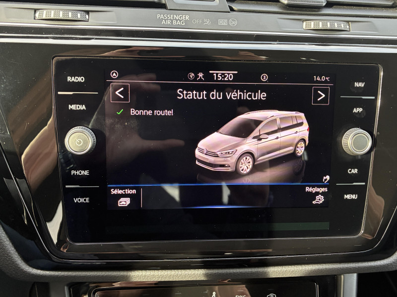 Activation automatique des feux de détresse lors d'un freinage d'urgence / Aide au stationnement AV/AR avec signaux sonores et visualisation de la distance des obstacles sur l'écran / Climatisation automatique "Air Care Climatronic", 3 zones avec filtre anti-allergènes, réglable séparément pour conducteur et passager et les sièges AR / Console de pavillon avec un grand compartiment de rangement (incompatible avec le toit ouvrant) / Eclairage d'ambiance: éclairage du plancher aux places AV, de l'intérieur des portes et rappel au au niveau des rétroviseurs extérieurs, spots de lecture à LED à l'AV / Eclairage à LED de la plaque d'immatriculation AR / Jantes en alliage "Alexandria" 6.5Jx17" et pneumatiques autocolmatants 215/55 R17 / Park Assist: Système d'assistance au stationnement en créneauet en bataille / Rétroviseurs extérieurs électriques, à réglage jour/nuit automatique et asphérique côté conducteur et abaissement côté passager lors d?une marche AR / Système Front Assist : système de freinage automatique en cas de détection d'obstacle / Système Navigation & Infotainment "Discover Media" avec écran tactile 8?? / Système Start/Stop automatique et dispositif de récupération de l'énergie de freinage / 2 ports USB-C compatibles Apple / 2 spots de lecture AV et 2 spots de lecture AR / Accoudoir central AV réglable avec compartiment de rangement, porte-gobelet intégré, et prise 12 V pour les passagers AR / Airbags frontaux AV (Airbag passager désactivable par clé) / Airbags rideaux pour 3ème rangée / Airbags rideaux pour les 1ère et 2ème rangées / App-Connect sans fil - affichage et contrôle via l?écran tactile de la voiture, du contenu, des fonctions et des applications compatibles présents sur le Smartphone (compatibilité avec les systèmes Apple CarPlay, Apple CarPlay sans fil, Android Auto, MirrorLink). Seuls les contenus validés et utilisables en «main libre» peuvent fonctionner. / Appuis-tête (3) réglables en hauteur sur la 2ème rangée de sièges / Avertisseur sonore et témoin d'oubli du port de la ceinture de sécuritéà l'AV et témoin d'oubli du port de la ceinture de sécurité pour la 2ème rangée / Boitiers des rétroviseurs extérieurs couleur carrosserie / Calandre noire avec 3 lamelles chromées / Ceintures de sécurité (3) trois points sur la 2ème rangée de sièges / Ceintures de sécurité AV 3 points à enrouleur réglables en hauteur avec prétensionneurs / Compartiment de rangement sous la planche de bord / Compartiment de rangement sur la planche de bord avec trappe / Compartiment de rangement à gauche du volant / Console de pavillon avec un petit compartiment de rangement / Correcteur électronique de trajectoire ESP, système d'antiblocage de roues ABS, blocage électronique de différentiel EDS, antipatinage électronique ASR, régulateur de couple MSR et assistance au contrebraquage / Couvre-coffre enroulable et amovible / Câble adaptateur USB-C vers USB-A / Digital Cockpit Pro: comb. d'instruments digital avec écran digital haute résolution couleur 10,25" / Direction électromécanique à assistance variable en fonction de la vitesse / Dossier du siège passager rabattable (Fold Flat) / Eclairage de jour / Entourage des aérateurs chromées / Essuie-glace AV avec commande d'intermittence / Fatigue Detection : système de détection de fatigue du conducteur qui analyse le comportement du conducteur et recommande un temps de repos par l'apparition d'un message visuel et sonore / Frein à main électrique / Hill-Hold : Assistant au démarrage en côte grâce à une fonction anti-recul / Interface téléphone Confort avec chargeur induction / Joncs chromés sur les vitres latérales / Keyless Access (système de verrouillage/déverrouillage sans clé et démarrage avec bouton start/stop) / Lane Assist: Assistant de maintien dans la voie / Mesures de protection des piétons et des cyclistes étendues / Miroir de courtoisie éclairé sur les pare-soleil / Oeilletons de fixation (4) dans le coffre / Pare-chocs peints dans la couleur de carrosserie / Plancher de coffre modulable / Poignées de portes couleur carrosserie / Porte-bouteille dans toutes les portes (1,5 L à l?AV et 1 L à l?AR) / Pre Safe Assist - Système proactif de protection des passagers / Prise 12 V dans la console centrale AR / Prise 12 V dans le coffre / Projecteurs antibrouillard AV avec éclairage statique d'intersection / Préparation pour "VW Connect" et "VW Connect Plus" vous permet d'obtenir des informations sur votre véhicule directement sur votre smartphone. Application totalement gratuite et facile à utiliser. Produit 100% compatible avec votre Volkswagen et garantie constructeur préservée. Aperçu de toutes les données de votre véhicule et des prochaines maintenances à effectuer. Sécurité totale des données grâce à un cryptage / Préparation pour fixation de sièges enfants suivant norme "Isofix" pour tous les 3 sièges de la 2ème rangée / Rampe de pavillon anodisées / Service d'appel d'urgence / Side Assist : assistance de changement de voie avec détecteurs d?angle mort / Sièges AV Confort réglables en hauteur avec réglage lombaire / Sièges individuels (3) de la 2ème rangée réglables en longueur (200 mm) et rabattables / Stores pare-soleil manuels pour les vitres de la 2ème rangée / Système de protection évitant l'utilisation d'un mauvais carburant / Tablette pliable au dos des sièges conducteur et passager AV / Tapis de sol AV/AR / Tiroir sous les sièges AV / Triangle de présignalisation / Verrouillage centralisé avec télécommande à fréquence radio par clé rétractable / XDS : Système agissant comme un différentiel autobloquant électronique permettant une meilleure motricité en courbe grâce à une répartition optimale de la puissance et du couple sur les roues AV