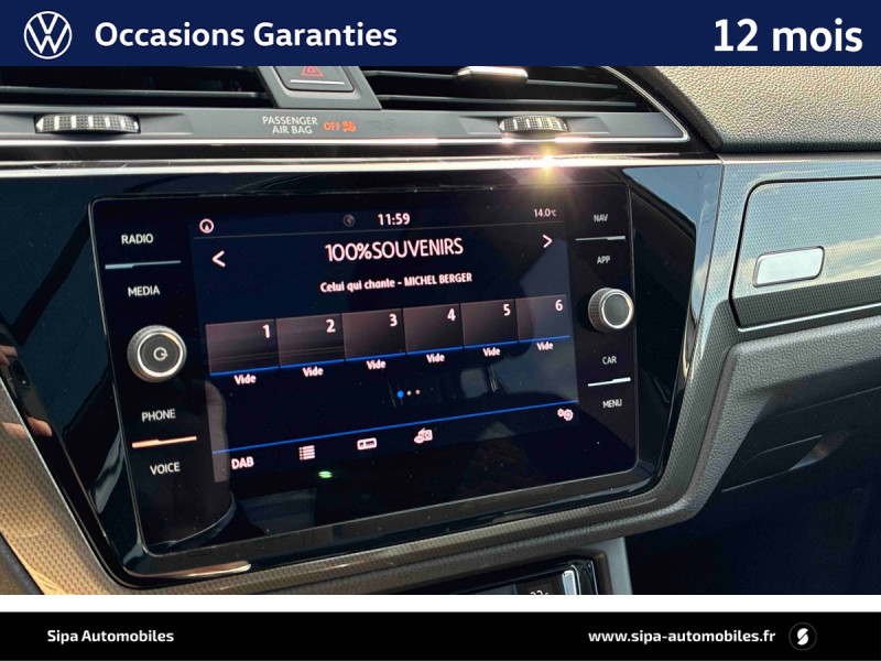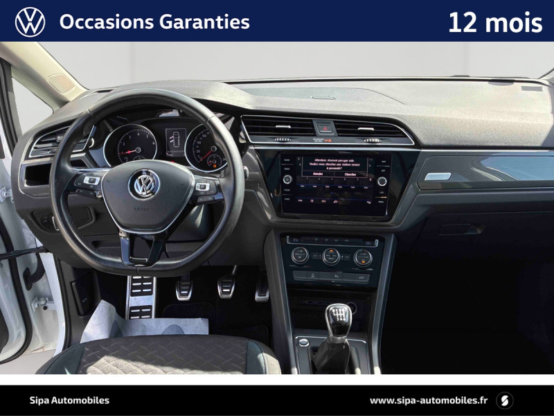 Activation automatique des feux de détresse lors d'un freinage d'urgence / Aide au stationnement AV/AR avec signaux sonores et visualisation de la distance des obstacles sur l'écran / Blind Spot Detection : Aide au changement de file / Caméra de recul avec visualisation de la zone située à l'AR du véhicule sur l'écran de la radio ou de la radionavigation / Climatisation automatique "Pure Aire Climatronic", 3 zones avec filtre anti-allergènes, réglable séparément pour conducteur et passager et les sièges AR / Console de pavillon avec un grand compartiment de rangement (incompatible avec le toit ouvrant) / Eclairage à LED de la plaque d'immatriculation AR / Jantes en alliage léger "Dublin" 6,5Jx16" et pneumatiques 205/60 R16 avec écrous antivol / Rétroviseur extérieur côté conducteur jour/nuit automatique / Système Front Assist : système de freinage automatique en cas de détection d'obstacle / Système Navigation & Infotainment "Discover Media" / Système Start/Stop automatique et dispositif de récupération de l'énergie de freinage / 2 spots de lecture AV et 2 spots de lecture AR / 7 places / Accoudoir central AV réglable avec compartiment de rangement, porte-gobelet intégré, et prise 12 V pour les passagers AR / Airbags frontaux AV (Airbag passager désactivable par clé) / Airbags rideaux pour 3ème rangée / Airbags rideaux pour les 1ère et 2ème rangées / Application Volkswagen Connect avec sa solution de connectivité Plug&Play / Applications décoratives spécifiques "IQ.drive" / Appuis-tête (3) réglables en hauteur sur la 2ème rangée de sièges / Avertisseur sonore et témoin d'oubli du port de la ceinture de sécuritéà l'AV et témoin d'oubli du port de la ceinture de sécurité pour la 2ème rangée / Boîtiers des rétroviseurs extérieurs Noirs / Calandre noire avec 3 lamelles chromées / Car-Net "App-Connect" En combinaison avec Discover Media / Car-Net "Guide & Inform" 36 mois / Ceintures de sécurité (3) trois points sur la 2ème rangée de sièges / Ceintures de sécurité AV 3 points à enrouleur réglables en hauteur avec prétensionneurs / Compartiment de rangement sous la planche de bord / Compartiment de rangement sur la planche de bord avec trappe / Compartiment de rangement à gauche du volant / Console de pavillon avec un petit compartiment de rangement / Correcteur électronique de trajectoire ESP, système d'antiblocage de roues ABS, blocage électronique de différentiel EDS, antipatinage électronique ASR, régulateur de couple MSR et assistance au contrebraquage / Couvre-coffre enroulable et amovible / Direction électromécanique à assistance variable en fonction de la vitesse / Dossier du siège passager rabattable (Fold Flat) / Dynamic Lane Assist: Assistant de maintien de trajectoire (en combinaison avec le Blind Spot Detection) / Eclairage de jour / Entourage des aérateurs chromées / Essuie-glace AV avec commande d'intermittence / Fatigue Detection : système de détection de fatigue du conducteur qui analyse le comportement du conducteur et recommande un temps de repos par l'apparition d'un message visuel et sonore / Frein à main électrique / Hill-Hold : Assistant au démarrage en côte grâce à une fonction anti-recul / Interface Bluetooth pour téléphone portable / Kit de réparation pour crevaison (compresseur 12 V et bombe anti-crevaison) / Light Assist : Activation ou désactivation des feux de route en fonction des sources lumineuses en présence / Miroir de courtoisie éclairé sur les pare-soleil / Oeilletons de fixation (4) dans le coffre / Pare-chocs peints dans la couleur de carrosserie / Plafonnier à extinction temporisée / Plancher de coffre modulable / Poignées de portes couleur carrosserie / Porte-bouteille dans toutes les portes (1,5 L à l?AV et 1 L à l?AR) / Pre Safe Assist - Système proactif de protection des passagers / Prise 12 V dans le coffre / Prise USB compatible i-Phone, i-Pad / Projecteurs antibrouillard AV avec éclairage statique d'intersection / Préparation pour fixation de sièges enfants suivant norme "Isofix" pour tous les 3 sièges de la 2ème rangée / Pédalier en acier brossé / Rampe de pavillon anodisées / Rétroviseurs extérieurs incluant le rappel de clignotant / Sièges AV Confort réglables en hauteur avec réglage lombaire / Sièges individuels (3) de la 2ème rangée réglables en longueur (200 mm) et rabattables / Tablette pliable au dos des sièges conducteur et passager AV / Tapis de sol AV/AR / Tiroir sous les sièges AV / Triangle de présignalisation / Verrouillage centralisé avec télécommande à fréquence radio par clé rétractable / Volkswagen e-Pass / XDS : Système agissant comme un différentiel autobloquant électronique permettant une meilleure motricité en courbe grâce à une répartition optimale de la puissance et du couple sur les roues AV