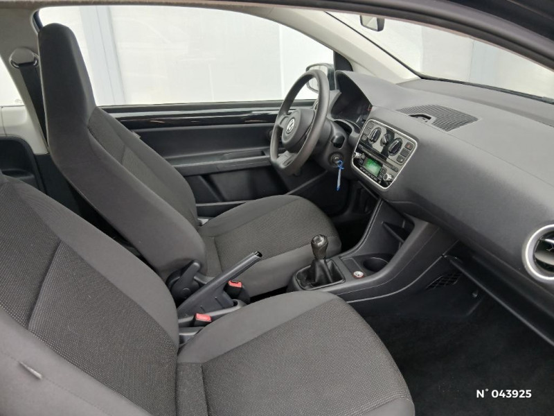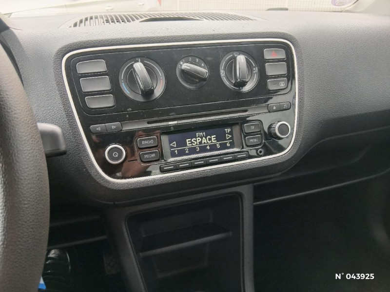 Cache-bagages / Carrosserie partiellement galvanisée / Clignotants confort (1 impulsion = 3 clignotements) / Clignotants latéraux intégrés dans les ailes AV / Climatisation avec fonctionnement en circuit fermé / Compte-tours / Console centrale avec 1 porte-boissons à l'AV et 1 à l'AR / Correcteur électronique de trajectoire ESP, amplificateur de freinage d'urgence, système d'antiblocage de roues ABS, antipatinage électronique ASR, régulateur électronique de couple MSR / Correcteur électronique de trajectoire ESP, amplificateur de freinage d'urgence, système d'antiblocage de roues ABS, antipatinage électronique ASR, régulateur électronique de couple MSR et aide au démarrage en côte "Hill Hold" / Direction assistée électrique asservie à la vitesse / Direction assistée électromécanique asservie à la vitesse / Disques de frein perforé / Dossier de banquette AR asymétrique et rabattable 60/40 / Pack Chrome Extérieur / Pack Chrome Intérieur / Pack Maps + More: Système portatif de navigation et d'infotainment avec Fonction véhicule, Fonction navigation, Fonction média et Fonction interface Bluetooth / Pare-chocs peints dans la couleur de la carrosserie / Double airbag frontal AV / Double airbag latéral et de tête à l'AV / Double plancher de coffre à bagages / Eclairage blanc sur les instruments, réglable en intensité, et rouge sur les commandes / Entourage en blanc candy du panneau central de commandes de la planche de bord et des aérateurs gauche et droit / Essuie-glace AV avec commande d'intermittence et lave-glace / Facilité d'accès "Easy Entry" avec déverrouillage des dossiers, coulissement des assises de siège et mémorisation de la position du siège conducteur / Feux de circulation de jour / Habillage du plancher de coffre à bagages en feutre / Instrumentation avec tachymètre électronique, compteur kilométrique et totaliseur kilométrique journalier / Jantes en alliage léger "Classic" 6Jx16" argent avec enjoliveur de moyeu noir, pneus 185/50 R16 et écrous antivol / Kit de dépannage en cas de crevaison (compresseur 12V et produit d'étanchéité de pneu) / Logos "Black" sur les portes AV / Oeillets d'arrimage ISOFIX: Ancrages normalisés pour 2 sièges enfants sur la banquette AR / Outillage de bord / Activation automatique des feux de détresse lors d'un freinage d'urgence / Antenne AR de pavillon / Appuis-tête AV intégrés au dossier des sièges / Avertisseur sonore 2 tons / Bacs de rangement dans les portes avec porte-boisson pour bouteilles de 1 Litre à l'AV / Banquette et dossier AR monoblocs avec dossier rabattable / Peinture nacrée noir intense / Plafonnier à temporisation à l' AV avec contacteur de portières AV / Planche de bord peinte en noir nacré / Poignée de frein à main gainée de cuir / Pommeau de levier de vitesses exclusif avec logo "Up!" / Prise allume-cigare et cendrier à l'AV / Projecteurs halogène avec inserts chromés / Projecteurs halogènes H4 et clignotants sous glace commune en verre clair / Protection antidémarrage Immotronic agrée SRA 7 clés / Radio "RCD 215" avec lecteur CD en faà§ade, lecture des formats audio MP3 sur CD, prise multimédia AUX-IN et 2HP d'une puissance de 2x20W / Réglage manuel du siège conduteur en hauteur / Rétroviseur extérieur asphérique côté conducteur / Rétroviseur intérieur jour/nuit manuel / Sellerie en tissu, en ArtVelours et similicuir, bi colore et dossier perfore "ID." / Seuils de portes avec logo Up / Seuils de portes avec logo Up à l'AV / Signal d'avertissement acoustique et optique pour ceinture de sécurité conducteur non attachée / Système de ventilation / chauffage 4 vitesses / Système de ventilation / chauffage 4 vitesses avec commande de fonctionnemment en circuit fermé / Tapis de sol AV/AR / Vitres AR entrebaillantes / Vitres athermiques teintées vertes / Volant cuir exclusif avec applications laquées noir et logo "Up!" / Volant 3 branches / 2 appuis-tête et 2 Ceintures de sécurité avec 3 points sur la banquette AR / 3ème feu stop surélevé / 6HP (4HP à l'AV et 2HP à l'AR) / Boîte à gants avec couvercle