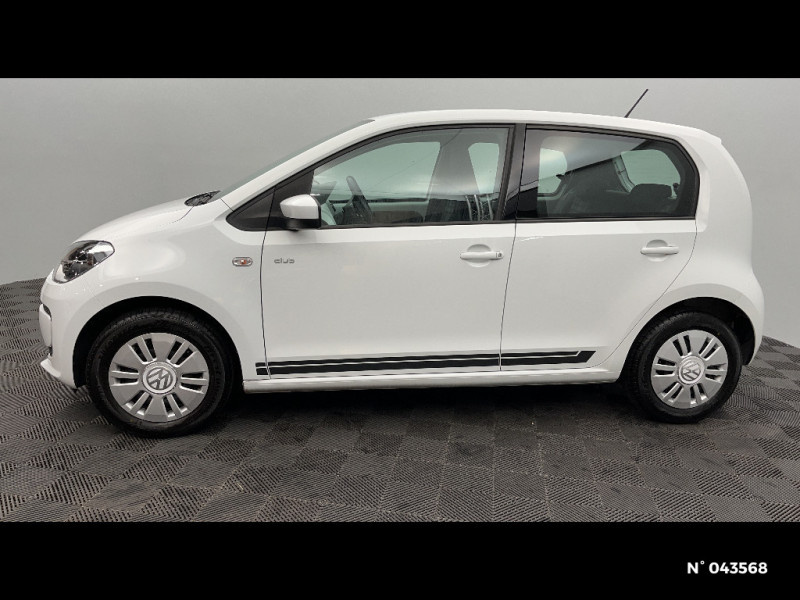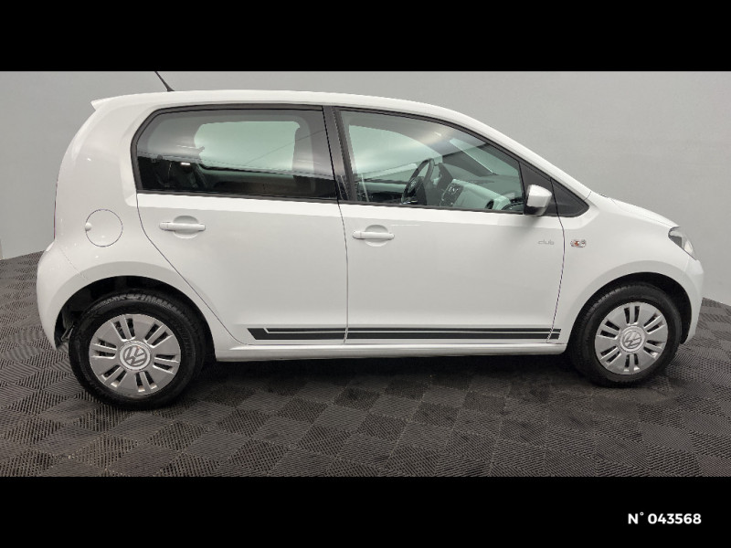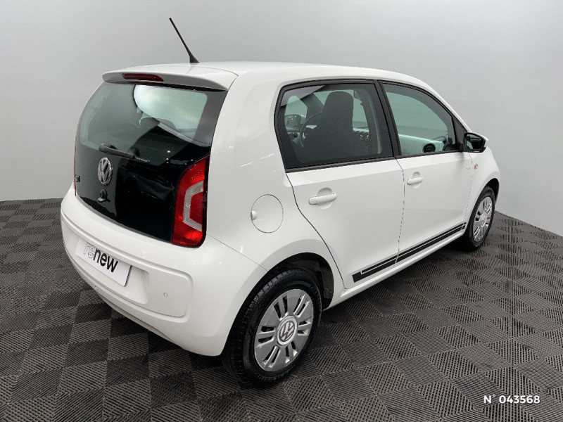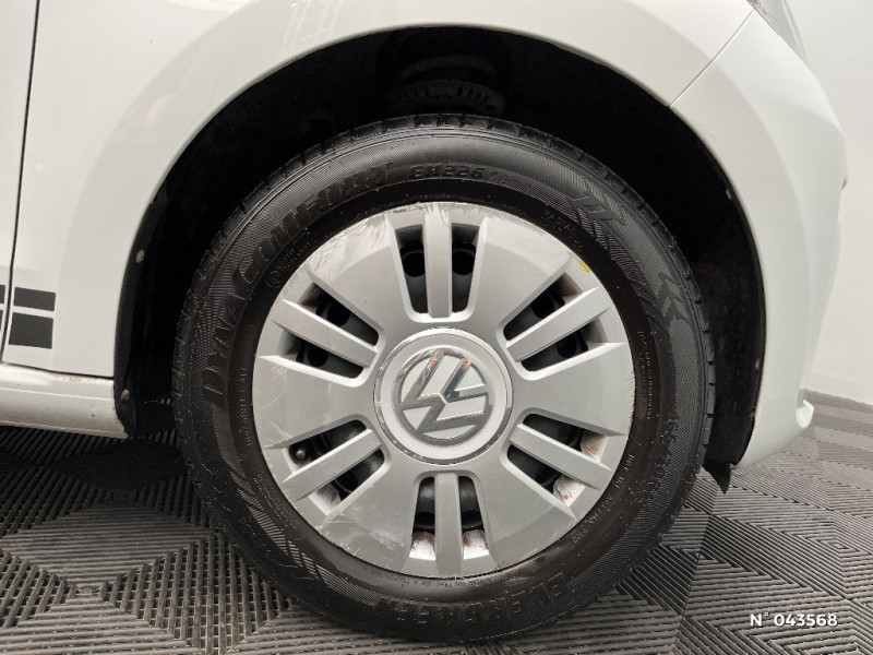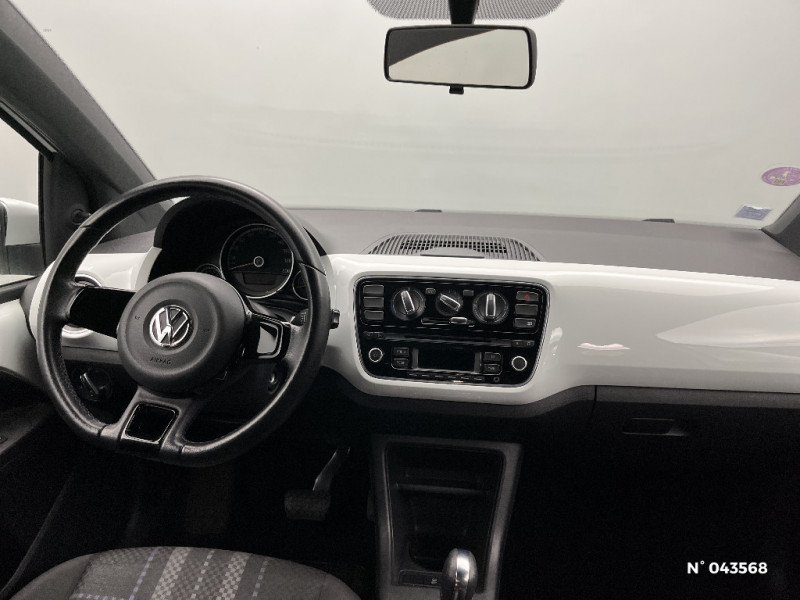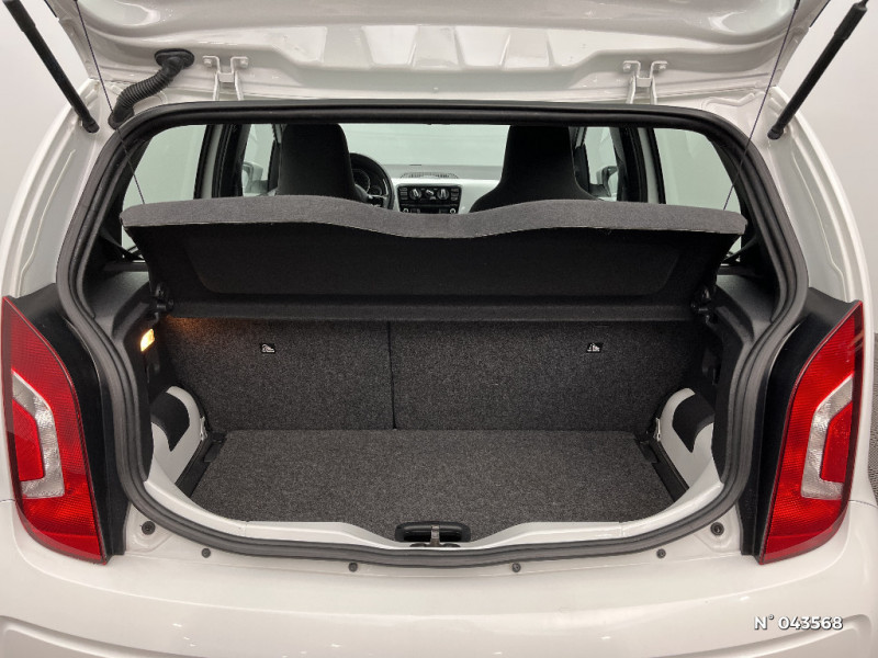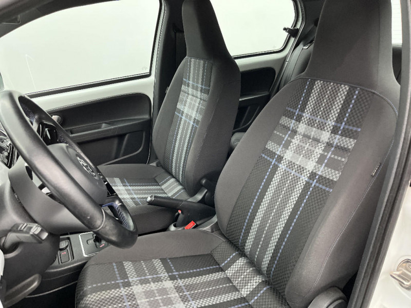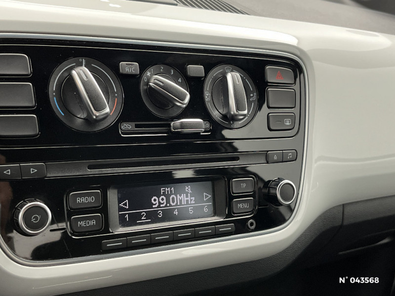 Poignées de portes couleur carrosserie / Plafonnier à temporisation à l' AV avec contacteur de portières AV / Activation automatique des feux de détresse lors d'un freinage d'urgence / Double airbag latéral et de tête à l'AV / Projecteurs halogènes H4 et clignotants sous glace commune en verre clair / Volant 3 branches / Double airbag frontal AV / Antenne AR de pavillon / Vitres athermiques teintées vertes / Protection antidémarrage Immotronic agrée SRA 7 clés / Clignotants confort (1 impulsion = 3 clignotements) / Tapis de sol AV et AR / 2 appuis-tête et 2 Ceintures de sécurité avec 3 points sur la banquette AR / Boîte à gants avec couvercle / Pack Maps + More: Système portatif de navigation et d'infotainment avec Fonction véhicule, Fonction navigation, Fonction média et Fonction interface Bluetooth / Radio "RCD 215" avec lecteur CD en façade, lecture des formats audio MP3 sur CD, prise multimédia AUX-IN et 2HP d'une puissance de 2x20W / Appuis-tête AV intégrés au dossier des sièges / Feux de circulation de jour / Kit de dépannage en cas de crevaison (compresseur 12V et produit d'étanchéité de pneu) / Oeillets d'arrimage ISOFIX: Ancrages normalisés pour 2 sièges enfants sur la banquette AR / Outillage de bord / Signal d'avertissement acoustique et optique pour ceinture de sécurité conducteur non attachée / Carrosserie partiellement galvanisée / Clignotants latéraux intégrés dans les ailes AV / Jantes en acier 6Jx14" avec enjoliveurs spécifiques, logo VW en aluminium et pneumatiques 165/70 R14 / Projecteurs halogène avec inserts chromés / Bacs de rangement dans les portes avec porte-boisson pour bouteilles de 1 Litre à l'AV / Dossier de banquette AR asymétrique et rabattable 60/40 / Pack Chrome Intérieur / Eclairage blanc sur les instruments, réglable en intensité, et rouge sur les commandes / Rétroviseur intérieur jour/nuit manuel / Volant cuir avec poignees de frein a main et pommeau de levier de vitesse en cuir / Double plancher de coffre à bagages / Console centrale avec 1 porte-boissons à l'AV et 1 à l'AR / Entourage en blanc candy du panneau central de commandes de la planche de bord et des aérateurs gauche et droit / Habillage du plancher de coffre à bagages en feutre / Essuie-glace AV avec commande d'intermittence et lave-glace / Instrumentation avec tachymètre électronique, compteur kilométrique et totaliseur kilométrique journalier / Disques de frein ventilés à l'AV / 3ème feu stop surélevé / Correcteur électronique de trajectoire ESP, amplificateur de freinage d'urgence, système d'antiblocage de roues ABS, antipatinage électronique ASR, régulateur électronique de couple MSR et aide au démarrage en côte "Hill Hold" / Direction assistée électromécanique asservie à la vitesse / Seuils de portes avec logo Up à l'AV / Vitres AR entrebaillantes / Système de ventilation / chauffage 4 vitesses / Climatisation avec fonctionnement en circuit fermé / Pare-chocs peints dans la couleur de la carrosserie / Planche de bord peinte / Avertisseur sonore 2 tons / Poignées de frein à main et soufflet du levier de vitesse en cuir avec surpiqures bleues / Volant cuir exclusif avec applications laquées noir, logo "Up!" et surpiqures bleues / Logos "Cup" sur les ailes avant / Pack Laque & Chrome intérieur / Boitiers de rétroviseurs extérieurs teinte carrosserie ou reflet d?argent en fonction de la couleur du véhicule / Sellerie exclusive en tissu, design "club" / Stripping latéral gris indium ou reflet d?argent en fonction de la couleur du véhicule / Cache-bagages / Compte-tours