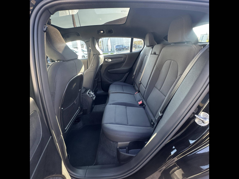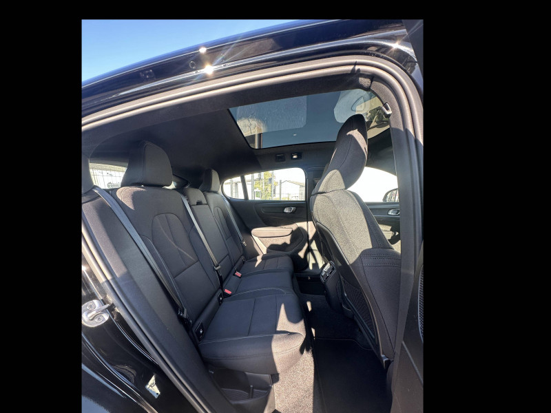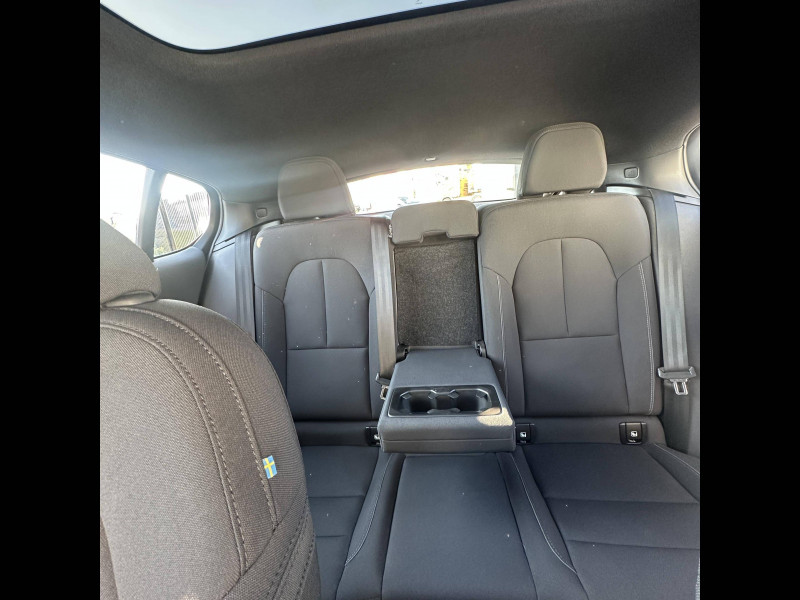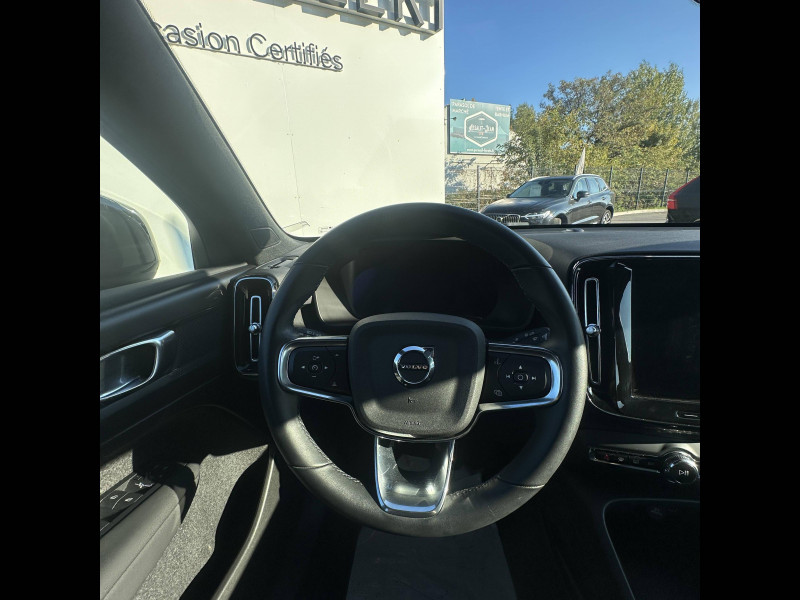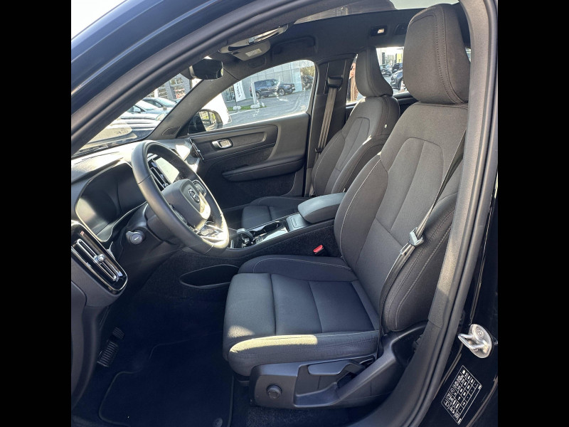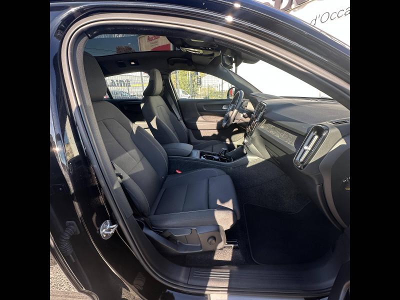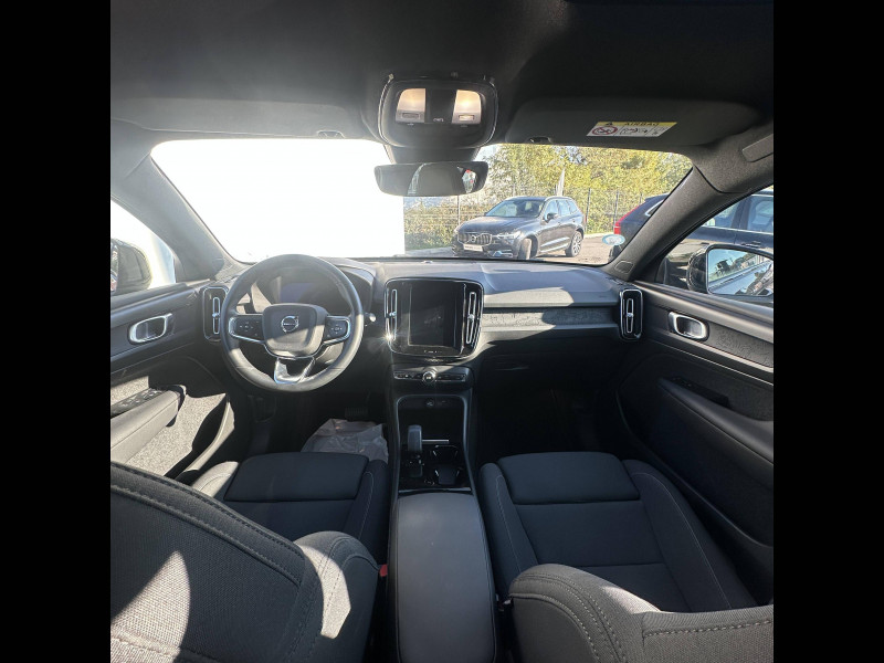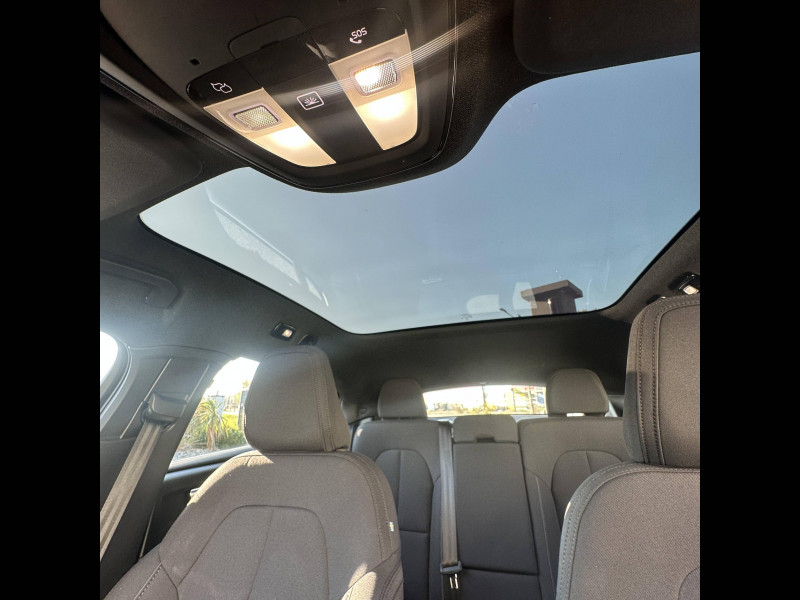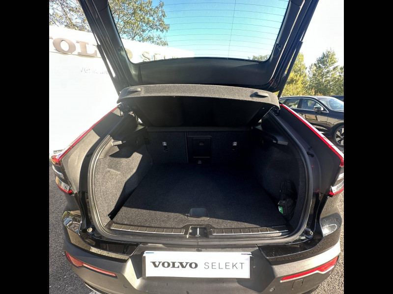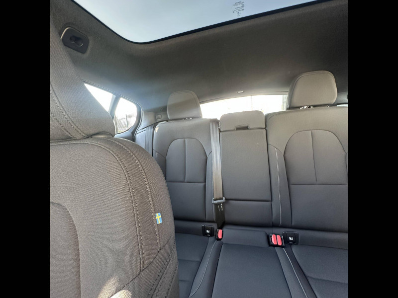 2 porte-cintres / Accès au service d'assistance Volvo via bouton dédié / Accès au service d'urgence Volvo via bouton SOS dans le plafonnier / Airbag passager désactivable avec témoin d'indication (on/off) / Airbags conducteur et passager à déclenchement différencié / Alerte automatique au service d´urgence Volvo, en cas de collision / Alerte vigilance conducteur (Driver Alert Control) Informe le conducteur lorsque le système remarque qu'il est nécessaire de porter plus d'attention sur le trafic ou que la conduite semble anormale. Si le conducteur ne réagit pas, alors le véhicule pourra effectuer un arrêt de sécurité / Application Volvo Cars / Assise des sièges AV extensible manuellement / Assistance à l'évitement des piétons et des cyclistes / Badge Recharge ou Recharge Twin sur le hayon / Bas de caisse et passages de roues Anthracite / Câble de recharge de 7 mètres / 10 A. Pour prise secteur / Calandre AV pleine couleur carrosserie / Ceintures de sécuritéà inertie à 3 points d'ancrage (sur les 5 sièges) / City Safety, système d'anticipation de collision intelligent Détection des véhicules, cyclistes, piétons et grands animaux avec freinage automatique à pleine puissance, Détection des véhicules aux intersections avec freinage automatique à pleine puissance, Avertissement lumineuse et sonore, Préparation des freins et ceintures de sécurité AV / CleanZone : Filtre à charbon de climatisation multi-actif / Climatisation automatique bi-zone (incluant ouïes d'aération à l'AR) / Coffre sous le capot AV d'une capacité de 31 litres / Combiné d'instruments digital 12,3" personnalisable, nouvelle génération / Commande vocale avancée (climatisation, médias, téléphone, eManuel utilisateur et navigation) / Contrôle de la transmission en descente HDC / Coques de rétroviseurs Noir Brillant / Corbeille intégrée et amovible au niveau du tunnel central AV / Crochet pour sacs intégréà la boîte à gants / Déclenchement automatique des feux de detresse lors d'un freinage d'urgence / Deuxième câble de recharge Type 2, 4, 5 mètres, 32 A triphasé (fonctionne également en monophasé) Pour borne de recharge / Diffuseur AR Noir Laqué / Direction assistée électrique asservie à la vitesse / Eclairage d'approche et d'accompagnement / Ecran tactile multimédia haute résolution 9", personnalisable / Espace de rangement sous la console centrale / Fonction climatisation de l'habitacle moteur coupé / Freinage automatique post-collision (réduction du risque de suraccident) / Frein de parking électronique automatique avec fonction Auto Hold (désactivable) / Freins à disques à l'AV et à l'AR / Gravure Recharge sur les montants AR / Incrustations Origin / Indicateur de perte de pression des pneus / Infotainment Google Android Chargeur de téléphone par induction,Services Google, Assistant, Google Play Store, chargeur smartphone par induction et kit mains libres Bluetooth, Streaming Audio, mode d'emploi numérique du véhicule, réception de la radio numérique (DAB+), mises à jour Over the Air (OTA) / Jantes alliage 19" 10 branches Graphite Mat / Diamant / Kit anticrevaison / Matériaux anti-allergènes dans l'habitacle / Miroirs de courtoisie éclairés, spots de lecture à l'AV et éclairage dans le coffre / Mise à jour du système à distance / Pare-brise en verre feuilleté et colonne de direction rétractable en cas de choc / Parties inférieures des vitres Noir brillant / Phares LED avec feux de jour design marteau de Thor et feux de route adaptatifs / Pneus toutes saisons / Pommeau de levier de vitesses gainé Simili-Cuir / Port de recharge sur l'aile AR gauche et connecteur charge rapide (jusqu'à 150 kW) / Porte-cartes bancaires et cartes de services intégré dans la planche de bord / Pré-câblage électrique pour le crochet d'attelage / Préparation pour fixations Isofix (places latérales de la deuxième rangée de sièges) / Protections de pare-chocs AV et AR Noir brillant / Rappel d'oubli de bouclage de ceinture de sécurité AV et AR / Réglage en hauteur manuel des ceintures AV / Rétroviseurs intérieur (sans contour) et extérieur électrochrome / Sabots de protection AV et AR Noir / Sellerie Tissu City Map / Anthracite / Seuils de coffre Aluminium / Seuils de portes AV Volvo en Aluminium / Sonde de température extérieure et horloge / Système audio Volvo High Performance avec technologie air woofer au niveau de la console centrale : 250 W, 8 HP, radio numérique terrestre, prise 12 V et 2 ports USB C à l'AV / Système de contrôle de la stabilité et de la traction STC / Système de contrôle du freinage du véhicule VDC / Système de préconditionnement de l'habitacle (chauffage) / Système de protection anti-sortie de route / Système de protection contre le coup du lapin WHIPS (sièges AV) / Système de protection contre les chocs latéraux SIPS / Système de protection en cas de sortie de route : Ceintures de sécurité actives à prétensionneurs, Assise des sièges AV à absorption d'énergie, Pédale de frein rétractable en cas de collision frontale / Système de réglage en hauteur des phares / Système intelligent d'informations au conducteur IDIS / Tapis de sol premium / Télécommande de verrouillage centralisé avec clé contact integrée, fermeture à distance des vitres et du toit ouvrant et fonction panique (déclenchement du klaxon et des feux de détresse) / Trousse de premiers secours et triangle de présignalisation / Tunnel de la console centrale Noir brillant / Verrouillage automatique des portes à partir de 7 km/h / Verrouillage de sécurité enfant manuel / Vitres AV et AR électriques à impulsion (montée et descente) avec système anti-pincement / Volant sport en Simili-Cuir avec insert Aluminium