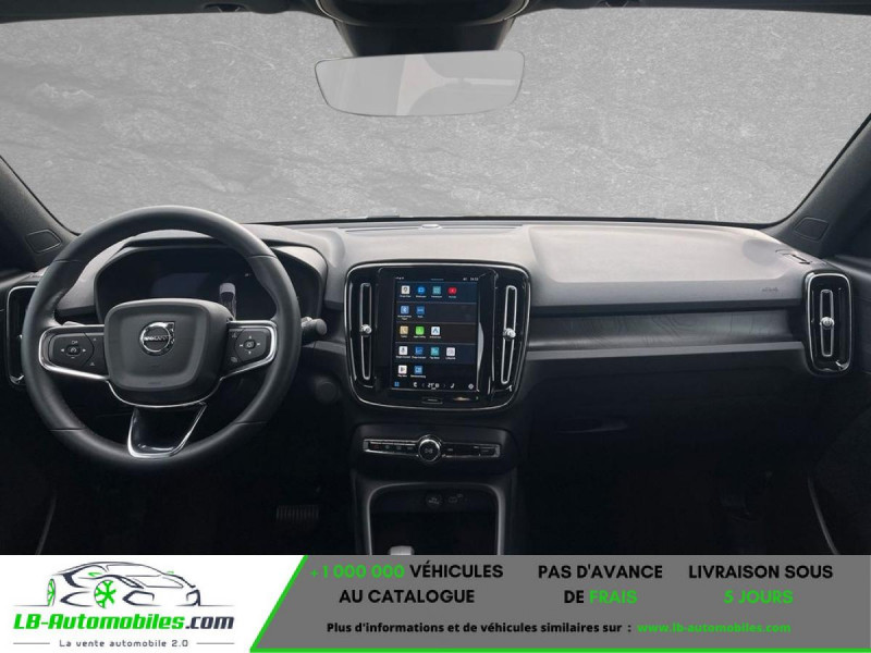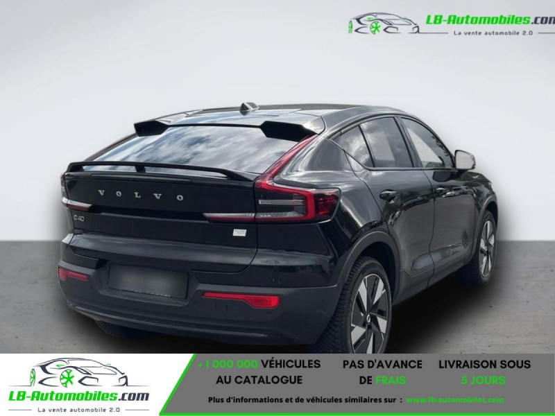 Référence : 1015593 Vos Avantages chez LB-AUTOMOBILES.com / Prix affiché TTC Livré hors carte grise / Livraison sous 10 jours dans toute la France hors 31 / Pas d?avance de frais paiement du véhicule 100% à la livraison par virement. Volvo C40 Neuf remisée, Volvo C40 Occasion Toulouse Beaupuy 31850, Volvo C40 Véhicule sorti de réseau collaborateur, Volvo C40 import, Volvo C40 importateur, Volvo C40 Livraison possible dans toute la France sous 5 jours, Volvo C40, Volvo C40 Location Option Achat, Volvo C40 LLD, Volvo C40 Longue Durée, Volvo C40 TVA récupérable. Possibilité d'extension de garantie 12, 24,36 mois, Pour tout autres voitures import neufs ou occasions collaborateur fortement remisée, Mandataire Audi, Mandataire BMW, Mandataire Volkswagen, Mandataire Mercedes, Mandataire Peugeot Espagne, Mandataire Renault Espagne, Porsche import, Mandataire Citroën Espagne, Mandataire Seat Espagne, n'hésitez pas à nous contacter. « Sous réserve de vente préalable et erreur de saisie » Principaux équipements : - 4x4 - ABS - Accoudoir - Airbags frontaux et latéraux et autres - Antidémarrage - Assistance au freinage d'urgence - Assistance de démarrage en côte - Assistant d'angle mort - Assistant feux de route - Avertisseur de franchissement de ligne - Bluetooth - Capteur de lumière - Capteur de pluie - Chargement par induction pour smartphones - Chauffage auxiliaire - Climatisation automatique bizone - Cockpit numérique - Commande vocale - Contrôle de la pression des pneus - Direction assistée - Éclairage d'ambiance - Écran tactile - ESP - Fermeture centralisée - Feux de jour LED - Garantie - GPS - Hayon électrique - Isofix - Jantes alliage - Kit mains libres - Ordinateur de bord - Phares LED - Pompe à chaleur - Port USB - Radio DAB - Régulateur de vitesse adaptatif - Rétroviseur extérieur électrique - Rétroviseur intérieur anti-éblouissement automatique - Rétroviseurs extérieurs rabattables électriquement - Sièges chauffants - Streaming musical intégré - Support lombaire - Système antipatinage - Système d'alarme - Système d'appel d'urgence - Système de détection de la fatigue - Système de limitation de la vitesse - Système de reconnaissance des panneaux de signalisation - Système de sonorisation - Toit panoramique - Tuner/radio - Verrouillage centralisé sans clé - Vitres électriques - Vitres teintées - Volant chauffant - Volant multifonction - WLAN / point d'accès Wi-Fi - Radar de recul : Avant, Arrière, Appareil photo - Première main : Oui