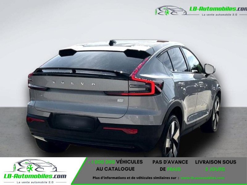 Référence : 1015590 Vos Avantages chez LB-AUTOMOBILES.com / Prix affiché TTC Livré hors carte grise / Livraison sous 10 jours dans toute la France hors 31 / Pas d?avance de frais paiement du véhicule 100% à la livraison par virement. Volvo C40 Neuf remisée, Volvo C40 Occasion Toulouse Beaupuy 31850, Volvo C40 Véhicule sorti de réseau collaborateur, Volvo C40 import, Volvo C40 importateur, Volvo C40 Livraison possible dans toute la France sous 5 jours, Volvo C40, Volvo C40 Location Option Achat, Volvo C40 LLD, Volvo C40 Longue Durée, Volvo C40 TVA récupérable. Possibilité d'extension de garantie 12, 24,36 mois, Pour tout autres voitures import neufs ou occasions collaborateur fortement remisée, Mandataire Audi, Mandataire BMW, Mandataire Volkswagen, Mandataire Mercedes, Mandataire Peugeot Espagne, Mandataire Renault Espagne, Porsche import, Mandataire Citroën Espagne, Mandataire Seat Espagne, n'hésitez pas à nous contacter. « Sous réserve de vente préalable et erreur de saisie » Principaux équipements : - 4x4 - ABS - Accoudoir - Airbags frontaux et latéraux et autres - Android Auto - Antidémarrage - Apple CarPlay - Assistance au freinage d'urgence - Assistance de démarrage en côte - Assistant d'angle mort - Assistant de sortie de stationnement - Assistant feux de route - Avertisseur de franchissement de ligne - Bluetooth - Capteur de lumière - Capteur de pluie - Carnet d'entretien - Chargement par induction pour smartphones - Chauffage auxiliaire - Climatisation automatique bizone - Cockpit numérique - Commande vocale - Contrôle de la pression des pneus - Direction assistée - Éclairage adaptatif - Éclairage d'ambiance - Éclairage route non éblouissant - Écran tactile - ESP - Fermeture centralisée - Feux de jour LED - Garantie - GPS - Grille de protection pour coffre - Hayon électrique - Isofix - Jantes alliage - Kit de réparation d'urgence des pneus - Kit mains libres - Ordinateur de bord - Package hiver - Phare antibrouillard - Phares LED - Pneus toutes saisons - Point Isofix siège passager - Port USB - Radio DAB - Réglage électrique des sièges - Réglage électrique des sièges avec fonction mémoire - Régulateur de vitesse adaptatif - Rétroviseur extérieur électrique - Rétroviseur intérieur anti-éblouissement automatique - Rétroviseurs extérieurs rabattables électriquement - Sièges chauffants - Streaming musical intégré - Support lombaire - Système antipatinage - Système d'alarme - Système d'appel d'urgence - Système d'avertissement de la distance - Système de détection de la fatigue - Système de limitation de la vitesse - Système de nettoyage des phares - Système de reconnaissance des panneaux de signalisation - Toit panoramique - Tuner/radio - Véhicule non-fumeur - Verrouillage centralisé sans clé - Vitres électriques - Vitres teintées - Volant chauffant - Volant en cuir - Volant multifonction - Radar de recul : Arrière, Caméra 360, Avant - Première main : Oui