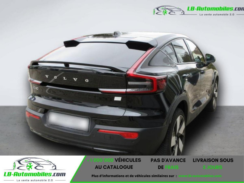 Référence : 1034585 Vos Avantages chez LB-AUTOMOBILES.com / Prix affiché TTC Livré hors carte grise / Livraison sous 10 jours dans toute la France hors 31 / Pas d?avance de frais paiement du véhicule 100% à la livraison par virement. Volvo C40 Neuf remisée, Volvo C40 Occasion Toulouse Beaupuy 31850, Volvo C40 Véhicule sorti de réseau collaborateur, Volvo C40 import, Volvo C40 importateur, Volvo C40 Livraison possible dans toute la France sous 5 jours, Volvo C40, Volvo C40 Location Option Achat, Volvo C40 LLD, Volvo C40 Longue Durée, Volvo C40 TVA récupérable. Possibilité d'extension de garantie 12, 24,36 mois, Pour tout autres voitures import neufs ou occasions collaborateur fortement remisée, Mandataire Audi, Mandataire BMW, Mandataire Volkswagen, Mandataire Mercedes, Mandataire Peugeot Espagne, Mandataire Renault Espagne, Porsche import, Mandataire Citroën Espagne, Mandataire Seat Espagne, n'hésitez pas à nous contacter. « Sous réserve de vente préalable et erreur de saisie » Principaux équipements : - 4x4 - ABS - Accoudoir - Affichage tête haute - Airbags frontaux - Android Auto - Antidémarrage - Apple CarPlay - Assistance au freinage d'urgence - Assistance de démarrage en côte - Assistant d'angle mort - Assistant feux de route - Avertisseur de franchissement de ligne - Bluetooth - Capteur de lumière - Capteur de pluie - Carnet d'entretien - Chargement par induction pour smartphones - Chauffage auxiliaire - Climatisation automatique bizone - Cockpit numérique - Commande vocale - Contrôle de la pression des pneus - Direction assistée - Éclairage d'ambiance - Éclairage route non éblouissant - Écran tactile - ESP - Fermeture centralisée - Feux de jour LED - Galerie de toit - Garantie - GPS - Grille de protection pour coffre - Hayon électrique - Isofix - Jantes alliage - Kit de réparation d'urgence des pneus - Kit mains libres - Ordinateur de bord - Package hiver - Phare antibrouillard - Phares LED - Pneus toutes saisons - Pompe à chaleur - Port USB - Radio DAB - Réglage électrique des sièges - Réglage électrique des sièges avec fonction mémoire - Régulateur de vitesse adaptatif - Rétroviseur extérieur électrique - Rétroviseur intérieur anti-éblouissement automatique - Rétroviseurs extérieurs rabattables électriquement - Révision complète - Sièges chauffants - Streaming musical intégré - Support lombaire - Système antipatinage - Système d'alarme - Système d'appel d'urgence - Système d'avertissement de la distance - Système de détection de la fatigue - Système de limitation de la vitesse - Système de nettoyage des phares - Système de reconnaissance des panneaux de signalisation - Système de sonorisation - Système Stop & Start - Toit panoramique - Tuner/radio - Véhicule non-fumeur - Verrouillage centralisé sans clé - Vitres électriques - Vitres teintées - Volant chauffant - Volant en cuir - Volant multifonction - WLAN / point d'accès Wi-Fi - Radar de recul : Arrière, Avant, Caméra 360 - Première main : Oui