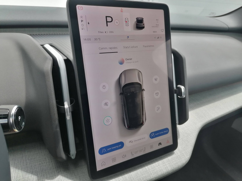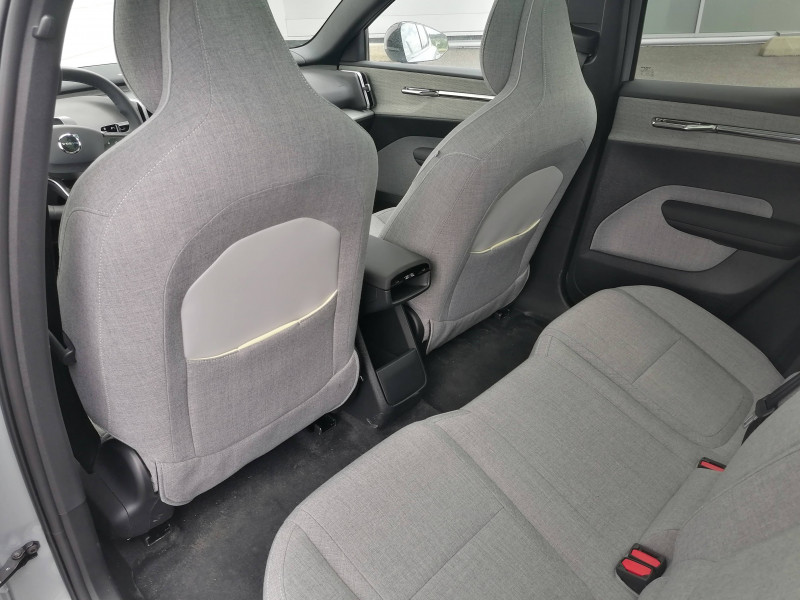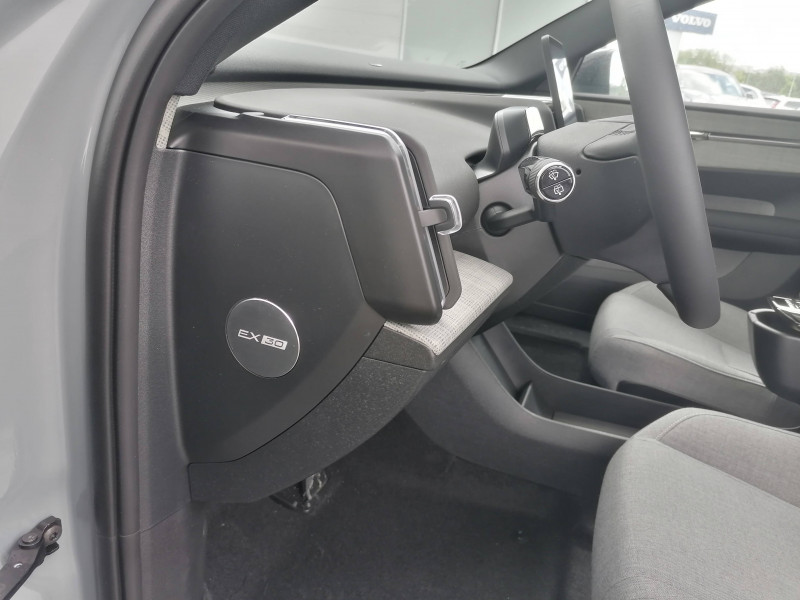 Aide au stationnement automatique nouvelle génération (Park Pilot Assist) Détection des places de parking libres adaptées au véhicule - Affichage du stationnement proposé sur l'écran central - En cas d'acceptation du stationnement proposé le véhicule se garera de lui même - Prise en charge de la direction, des freins et des changements de vitesse Peut être activé jusqu'à 22 km/h / Airbag passager désactivable avec témoin d'indication (on/off) / Airbags latéraux droit et gauche pour le conducteur et droit pour le passager AV / Application Volvo EX30 sur smartphone (iOS et Android) / Caméras Surround View (vision panoramique à 360°) incluant caméra AV et caméra de recul / Ceintures de sécuritéà inertie à 3 points d'ancrage (sur les 5 sièges) / Compartiment de rangement entre les sièges AV / Déclenchement automatique des feux de detresse lors d'un freinage d'urgence / En cas de collision, envoi automatique d'une alerte au service d'urgence Volvo Si un coussin gonflable ou un prétensionneur de ceinture de sécurité est déclenché lors d'une collision, une alerte est automatiquement envoyée au service d'urgence Volvo. Valable pendant 10 ans. / Espace de rangement sous l'écran central / Espaces de rangement entre les deux sièges AV / Fonction climatisation de l'habitacle moteur coupé / Fonctions d'intervention sur la direction aide au maintien dans la voie de 65 à 140 km/h, détection du risque de collision frontale en cas de chevauchement de voie du véhicule venant en sens inverse, Aide à diriger la voiture dans une trajectoire qui réduira le risque de sortie de route et si cela ne suffit pas, le système peut également intervenir en freinant pour réduire la vitesse / Frein de parking électronique automatique avec fonction Auto Hold (désactivable) / Freins à disques 17" ventilés à l'AV et à l'AR / Grand écran central flottant 12,3 / Jantes alliage 19'' 5 branches Noir / Diamant avec inserts aérodynamiques et pneus été 245/45 R19 / Phares LED avec feux de jour design marteau de Thor et feux de route adaptatifs / Pré-câblage électrique pour le crochet d'attelage / Préparation pour fixations Isofix (places latérales de la deuxième rangée de sièges) / Siège conducteur à réglages électriques avec réglages lombaires et fonction mémoire / Siège passager AV à réglages électriques / Sièges conducteur et passager avec réglage manuel de l'inclinaison du dossier et de l'assise / Sièges conducteur et passager avec supports lombaires fixes / Système audio Premium signé Harman Kardon Les 9 haut-parleurs, dont une iconique barre de son en haut de la console centrale regroupant 5 haut-parleurs et un subwoofer, complétée par 2 haut-parleurs dans les portes AR et un subwoofer dans le coffre, s'intègrent harmonieusement à l'habitacle pour vous envelopper d'un son 5.1 cristallin, riche et réaliste, qui restitue exactement l'intention de l'artiste. Puissance totale 1040 watts. / Système d'aide à la vigilance (ou Driver Awareness) Surveillance anti-angle mort BLIS, - Assistance au changement de file, - Alerte trafic en marche arrière, - Alerte collision arrière avec action corrective, - Alerte sortie sécurisée à l'ouverture d'une portière, - Freins actifs à l'arrêt, - Ceintures de sécurité avant avec système de prévention à la collision (serrage automatique) / Système d'infodivertissement Android avec services Google Volvo met le meilleur de la technologie au service de ses utilisateurs pour leur offrir une expérience intuitive, sophistiquée et performante. Ce système comprend Google Maps, Google Assistant, Google Play Store et un volume de données nécessaires pour les 4 premières années. Inclus également le volume de données nécessaire à l'accès et l'utilisation des fonctionnalités à distance de l'application Volvo EX30. / Système de contrôle de la qualité de l'air avec fonction CleanAir Filtre à charbon de climatisation multi-actif (limite l'entrée de pollen, de particules de pollution et des mauvaises odeurs en fermant automatiquement les arrivées d'air). La fonction CleanAir recycle l'air de l'habitacle. / Système de protection en cas de sortie de route Ceintures de sécurité actives à prétensionneurs, assise des sièges AV à absorption d'énergie, sur l'accoudoir central AV en cas de collision frontale / Système de protection WHIPS contre les blessures dues au coup du lapin grâce aux sièges AV équipés de dossiers, assises et appuie-tête qui absorbent l'énergie en cas de choc / Toit contrasté Noir Onyx / 2 cartes de verrouillage et déverrouillage du véhicule / 2 prises USB type-C aux places AR / 2 prises USB type-C AV / Accès au service d'assistance Volvo via bouton dédié dans le plafonnier / Accès au service d'urgence Volvo via bouton SOS dans le plafonnier / Alerte vigilance conducteur (Driver Alert Control) Informe le conducteur lorsque le système remarque qu'il est nécessaire de porter plus d'attention sur le trafic ou que la conduite semble anormale. Si le conducteur ne réagit pas, alors le véhicule pourra effectuer un arrêt de sécurité / Assistance à l'anticipation et à l'atténuation des collisions avec le freinage et la direction véhicule circulant avec écart de vitesse jusqu'à 60 km/h. Détection des piétons, cyclistes, scooters. Freinage en cas d'inattention et arrêt en toute sécurité en fonction de la compréhension de l'état du conducteur / Avertisseur sonore d'approche Le véhicule émettra un son subtil mais audible lorsqu'il est conduit à basse vitesse dans le but d'avertir notamment les piétons et les cyclistes. / Bouton de verrouillage centralisé sur l'accoudoir central AV / Calandre AV pleine couleur carrosserie / Chargeur embarqué 22 kW / Coffre sous le capot AV d'une capacité de 7 litres / Conduite à une pédale ou One Pedal Drive Une seule pédale vous permet de profiter d'une expérience de conduite encore plus intuitive (fonction dés