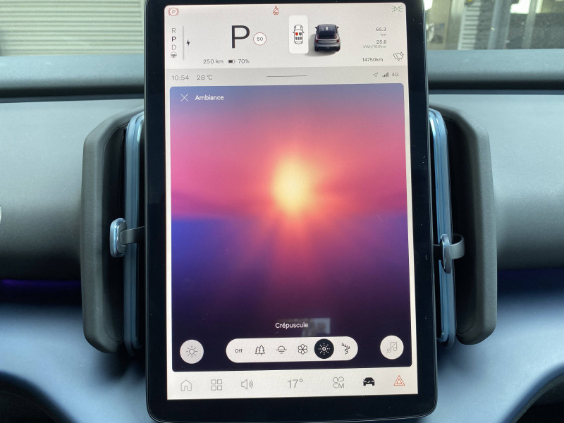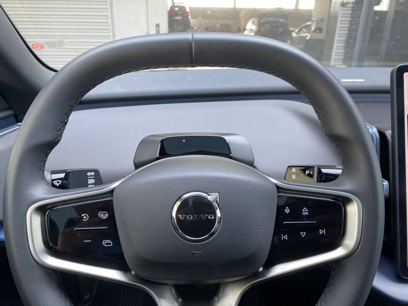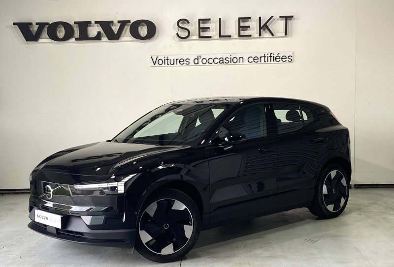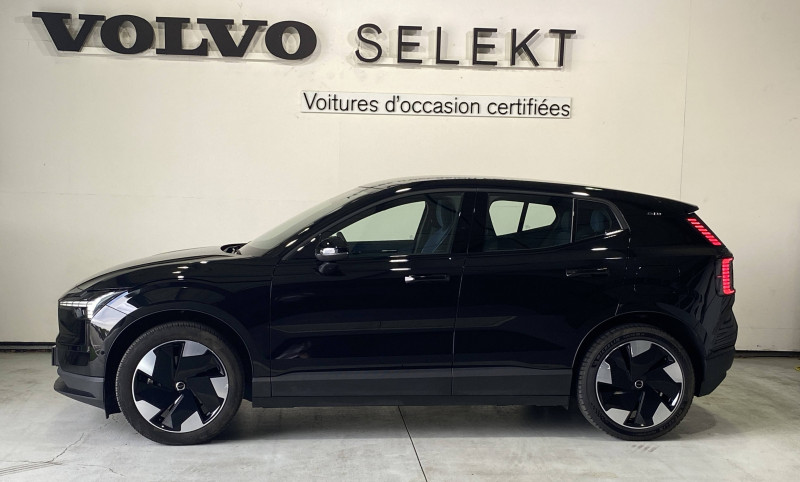 2 cartes de verrouillage et déverrouillage du véhicule / 2 prises USB type-C aux places AR / 2 prises USB type-C AV / Accès au service d'assistance Volvo via bouton dédié dans le plafonnier / Accès au service d'urgence Volvo via bouton SOS dans le plafonnier / Aide au stationnement automatique nouvelle génération (Park Pilot Assist) Détection des places de parking libres adaptées au véhicule - Affichage du stationnement proposé sur l'écran central - En cas d'acceptation du stationnement proposé le véhicule se garera de lui même - Prise en charge de la direction, des freins et des changements de vitesse Peut être activé jusqu'à 22 km/h / Airbag passager désactivable avec témoin d'indication (on/off) / Airbags latéraux droit et gauche pour le conducteur et droit pour le passager AV / Alerte vigilance conducteur (Driver Alert Control) Informe le conducteur lorsque le système remarque qu'il est nécessaire de porter plus d'attention sur le trafic ou que la conduite semble anormale. Si le conducteur ne réagit pas, alors le véhicule pourra effectuer un arrêt de sécurité / Application Volvo EX30 sur smartphone (iOS et Android) / Assistance à l'anticipation et à l'atténuation des collisions avec le freinage et la direction véhicule circulant avec écart de vitesse jusqu'à 60 km/h. Détection des piétons, cyclistes, scooters. Freinage en cas d'inattention et arrêt en toute sécurité en fonction de la compréhension de l'état du conducteur / Avertisseur sonore d'approche Le véhicule émettra un son subtil mais audible lorsqu'il est conduit à basse vitesse dans le but d'avertir notamment les piétons et les cyclistes. / Bouton de verrouillage centralisé sur l'accoudoir central AV / Câble de recharge Type 2, 32 A triphasé (fonctionne également en monophasé) Pour borne de recharge / Calandre AV pleine couleur carrosserie / Caméras Surround View (vision panoramique à 360°) incluant caméra AV et caméra de recul / Ceintures de sécuritéà inertie à 3 points d'ancrage (sur les 5 sièges) / Chargeur embarqué 22 kW / Chargeur embarqué Puissance de charge maximale de 11 kW (courant alternatif).Puissance de charge maximale de 155 kW (courant continu) / Coffre sous le capot AV d'une capacité de 7 litres / Compartiment de rangement entre les sièges AV / Conduite à une pédale ou One Pedal Drive Une seule pédale vous permet de profiter d'une expérience de conduite encore plus intuitive (fonction désactivable). / Contrôle de la transmission en descente HDC / Coques de rétroviseurs Noir Laqué / Déclenchement automatique des feux de detresse lors d'un freinage d'urgence / Direction assistée électrique asservie à la vitesse / Eclairage d'ambiance personnalisable selon 5 ambiances - Forêt, Crépuscule, Aurores Boréales, Archipel, Été / Eclairage d'approche et d'accompagnement / En cas de collision, envoi automatique d'une alerte au service d'urgence Volvo Si un coussin gonflable ou un prétensionneur de ceinture de sécurité est déclenché lors d'une collision, une alerte est automatiquement envoyée au service d'urgence Volvo. Valable pendant 10 ans. / Espace de rangement sous l'écran central / Espaces de rangement dans les contre-portes / Espaces de rangement entre les deux sièges AV / Fonction climatisation de l'habitacle moteur coupé / Fonctions d'intervention sur la direction aide au maintien dans la voie de 65 à 140 km/h, détection du risque de collision frontale en cas de chevauchement de voie du véhicule venant en sens inverse, Aide à diriger la voiture dans une trajectoire qui réduira le risque de sortie de route et si cela ne suffit pas, le système peut également intervenir en freinant pour réduire la vitesse / Frein de parking électronique automatique avec fonction Auto Hold (désactivable) / Freins à disques 17" ventilés à l'AV et à l'AR / Grand écran central flottant 12,3 / Incrustations Denim recyclé / Indicateur de perte de pression des pneus / Jantes alliage 19'' 5 branches Noir / Diamant avec inserts aérodynamiques et pneus été 245/45 R19 / Kit anticrevaison / Miroirs de courtoisie éclairés, spots de lecture à l'AV et éclairage dans le coffre / Mise à jour du système à distance (Over The Air ou OTA) / Ouverture des portes sans clé Keyless Entry / Pare-brise en verre feuilleté et colonne de direction rétractable en cas de choc / Parties inférieures des vitres Noir brillant / Phares LED avec feux de jour design marteau de Thor et feux de route adaptatifs / Pilot Assist Lecture des marquages au sol, Observation de la circulation et des autres véhicules, Assistance avec adaptation de la vitesse, Action sur la direction afin de maintenir le véhicule centré dans sa voie avec un maintien de la distance de sécurité avec le véhicule qui précède, Assistance lorsqu'un changement de voie est nécessaire, peut être activé jusqu'à 130 km/h / Plancher de coffre amovible / Pompe à chaleur permet principalement d'économiser la puissance de la batterie. / Port de recharge sur l'aile AR gauche et connecteur charge rapide / Porte-gobelets AV / Pré-câblage électrique pour le crochet d'attelage / Préparation pour fixations Isofix (places latérales de la deuxième rangée de sièges) / Prise 12 V dans le coffre / Rappel d'oubli de bouclage de ceinture de sécurité AV et AR / Réglage en hauteur manuel des ceintures AV / Régulateur adaptatif de vitesse et de distance ACC / Rétroviseur extérieur conducteur et rétroviseur intérieur électrochromes / Rétroviseur intérieur jour/nuit manuel / Rétroviseurs extérieurs sans contours couleur carrosserie avec partie inférieure noir / Sellerie Marine / Séquence lumineuse d'approche / Siège conducteur à réglages électriques avec réglages lombaires et fonction mémoire / Siège passager AV à réglages électriques / Sièges conducteur et passager avec réglage manuel de l'inclinaison du dossier et de l'assise / Sièges conducteur et passager avec s
