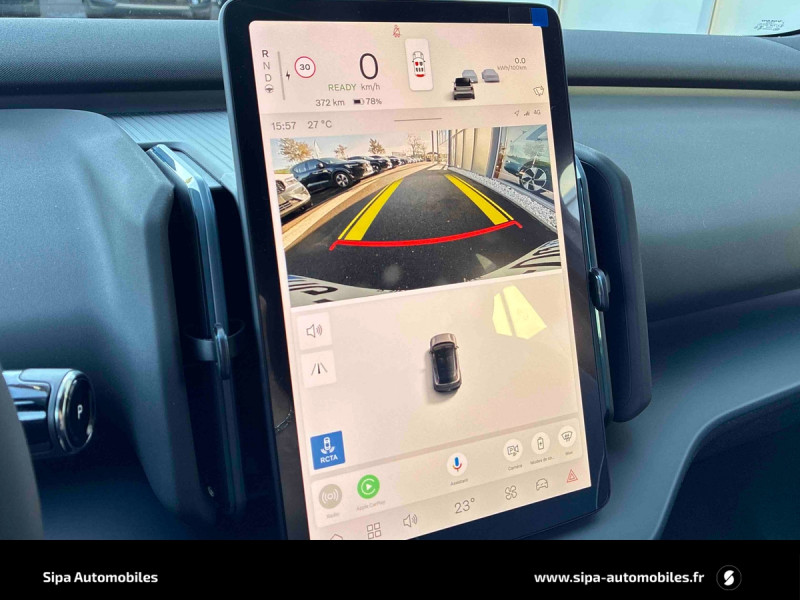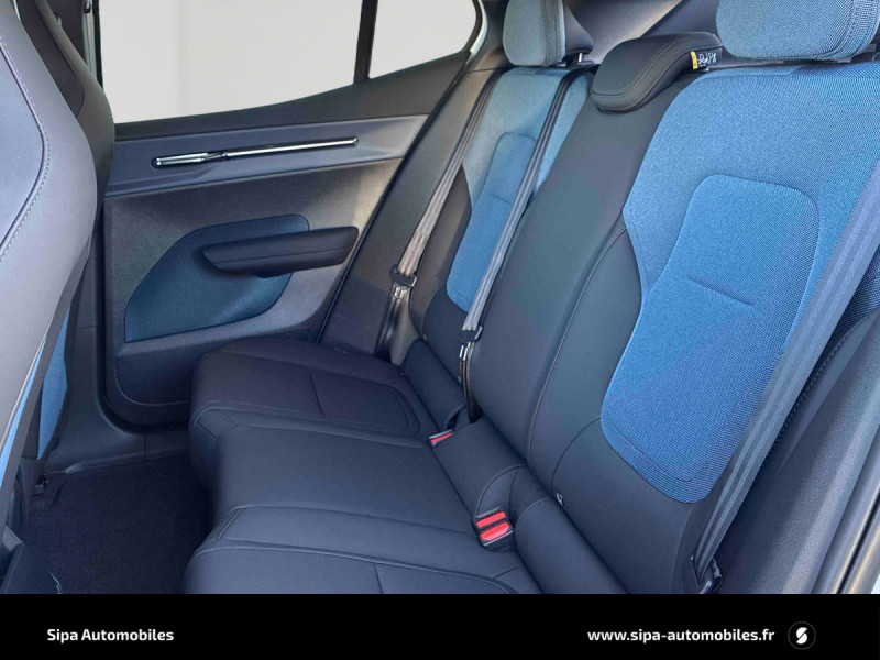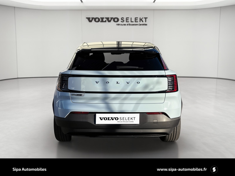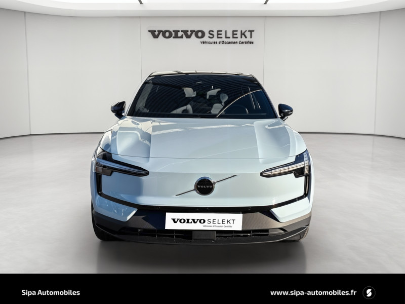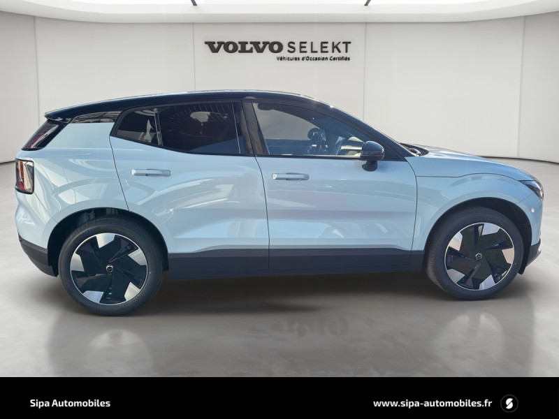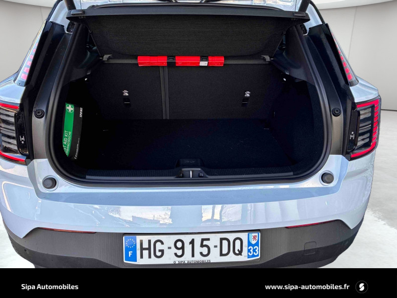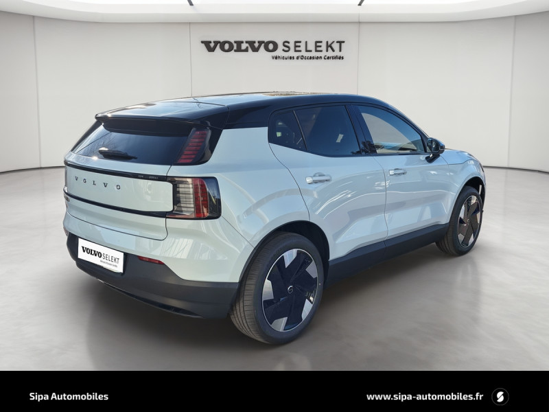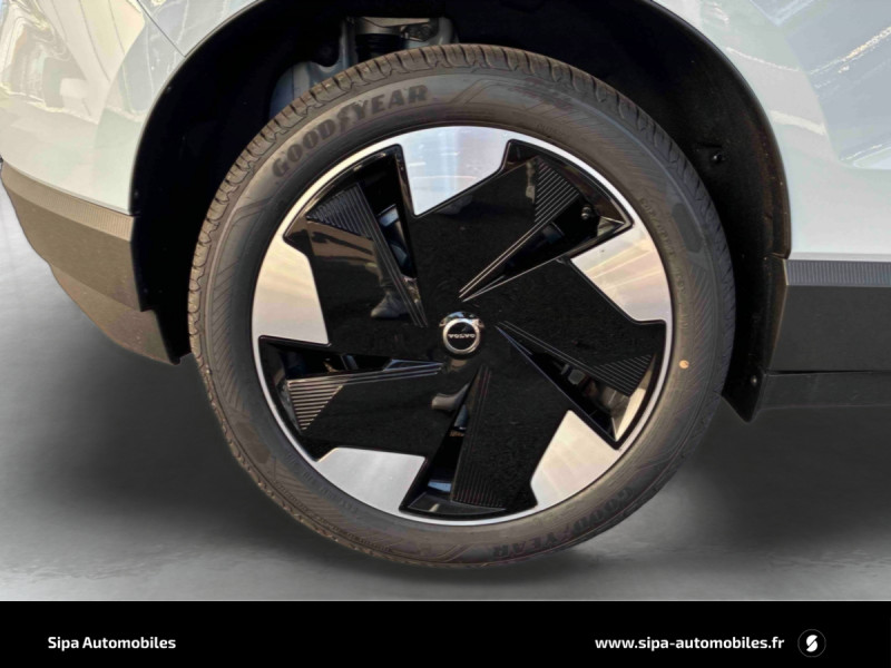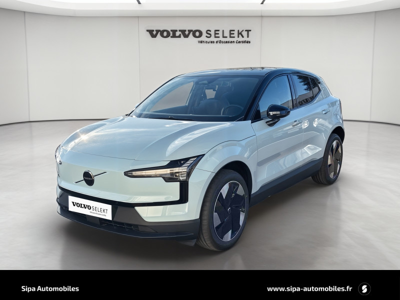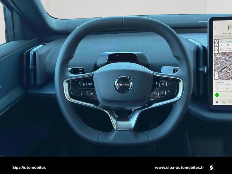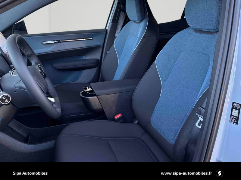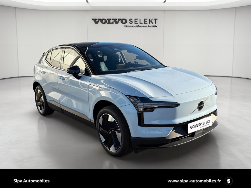 Déclenchement automatique des feux de detresse lors d'un freinage d'urgence / En cas de collision, envoi automatique d'une alerte au service d'urgence Volvo Si un coussin gonflable ou un prétensionneur de ceinture de sécurité est déclenché lors d'une collision, une alerte est automatiquement envoyée au service d'urgence Volvo. Valable pendant 10 ans. / Fonction climatisation de l'habitacle moteur coupé / Fonctions d'intervention sur la direction aide au maintien dans la voie de 65 à 140 km/h, détection du risque de collision frontale en cas de chevauchement de voie du véhicule venant en sens inverse, Aide à diriger la voiture dans une trajectoire qui réduira le risque de sortie de route et si cela ne suffit pas, le système peut également intervenir en freinant pour réduire la vitesse / Frein de parking électronique automatique avec fonction Auto Hold (désactivable) / Jantes alliage 19" 5 branches Noir / Diamant avec inserts aérodynamiques 245/45 R19 / Phares LED avec feux de jour design marteau de Thor et feux de route adaptatifs / Pré-câblage électrique pour le crochet d'attelage / Système de contrôle de la qualité de l?air avec fonction CleanAir Filtre à charbon de climatisation multi-actif (limite l?entrée de pollen, de particules de pollution et des mauvaises odeurs en fermant automatiquement les arrivées d?air). La fonction CleanAir recycle l?air de l?habitacle. / Système d?aide à la vigilance (ou Driver Awareness) Surveillance anti-angle mort BLIS, Assistance au changement de file, Alerte trafic en marche AR, Alerte collision AR avec action corrective, Alerte sortie sécurisée à l?ouverture d?une portière, Freins actifs à l?arrêt, / 2 cartes de verrouillage et déverrouillage du véhicule / 2 prises USB type-C aux places AR / 2 prises USB type-C AV / Accès au service d?assistance Volvo via bouton dédié dans le plafonnier / Accès au service d?urgence Volvo via bouton SOS dans le plafonnier / Airbag passager désactivable avec témoin d'indication (on/off) / Airbags latéraux droit et gauche pour le conducteur et droit pour le passager AV / Alerte vigilance conducteur (Driver Alert Control) Informe le conducteur lorsque le système remarque qu'il est nécessaire de porter plus d'attention sur le trafic ou que la conduite semble anormale. Si le conducteur ne réagit pas, alors le véhicule pourra effectuer un arrêt de sécurité / Application Volvo EX30 sur smartphone (iOS et Android) / Assistance à l'anticipation et à l'atténuation des collisions avec le freinage et la direction véhicule circulant avec écart de vitesse jusqu'à 60 km/h. Détection des piétons, cyclistes, scooters. Freinage en cas d?inattention et arrêt en toute sécurité en fonction de la compréhension de l'état du conducteur / Avertisseur sonore d?approche Le véhicule émettra un son subtil mais audible lorsqu?il est conduit à basse vitesse dans le but d?avertir notamment les piétons et les cyclistes. / Bouton de verrouillage centralisé sur l?accoudoir central AV / Calandre AV pleine couleur carrosserie / Ceintures de sécuritéà inertie à 3 points d'ancrage (sur les 5 sièges) / Chargeur embarqué Puissance de charge maximale de 11 kW (courant alternatif).Puissance de charge maximale de 155 kW (courant continu) / Coffre sous le capot AV d'une capacité de 7 litres / Compartiment de rangement entre les sièges AV / Conduite à une pédale ou One Pedal Drive Une seule pédale vous permet de profiter d?une expérience de conduite encore plus intuitive (fonction désactivable). / Contrôle de la transmission en descente HDC / Coques de rétroviseurs Noir / Câble de recharge Type 2, 32 A triphasé (fonctionne également en monophasé) Pour borne de recharge / Direction assistée électrique asservie à la vitesse / Eclairage d'ambiance personnalisable selon 5 ambiances - Forêt, Crépuscule, Aurores Boréales, Archipel, Été / Eclairage d'approche et d'accompagnement / Espace de rangement sous l?écran central / Espaces de rangement dans les contre-portes / Espaces de rangement entre les deux sièges AV / Freins à disques 17" à l'AV et à l'AR / Grand écran central flottant 12,3 / Incrustations (planche de bord et portières) Denim recyclé / Indicateur de perte de pression des pneus / Kit anticrevaison / Miroirs de courtoisie, spots de lecture à l'AV et éclairage dans le coffre / Ouverture des portes sans clé Keyless Entry / Pare-brise en verre feuilleté et colonne de direction rétractable en cas de choc / Parties inférieures des vitres Noir brillant / Pilot Assist Lecture des marquages au sol, Observation de la circulation et des autres véhicules, Assistance avec adaptation de la vitesse, Action sur la direction afin de maintenir le véhicule centré dans sa voie avec un maintien de la distance de sécurité avec le véhicule qui précède, Assistance lorsqu?un changement de voie est nécessaire, peut être activé jusqu?à 130 km/h / Plancher de coffre amovible / Pompe à chaleur permet principalement d?économiser la puissance de la batterie. / Port de recharge sur l'aile AR gauche et connecteur charge rapide / Porte-gobelets AV / Prise 12 V dans le coffre / Préparation pour fixations Isofix (places latérales de la deuxième rangée de sièges) / Rappel d'oubli de bouclage de ceinture de sécurité AV et AR / Réglage en hauteur manuel des ceintures AV / Régulateur adaptatif de vitesse et de distance ACC / Rétroviseur extérieur conducteur et rétroviseur intérieur électrochromes / Rétroviseur intérieur jour/nuit manuel / Sièges conducteur et passager avec réglage manuel de la hauteur / Sièges conducteur et passager avec réglage manuel de l?inclinaison du dossier et de l?assise / Sièges conducteur et passager avec supports lombaires fixes / Sonde de température extérieure et horloge / Système audio Premium signé Harman Kardon Les 9 haut-parleurs, dont une iconique barre de son en haut de la console centrale regroupant 5 haut-parleur