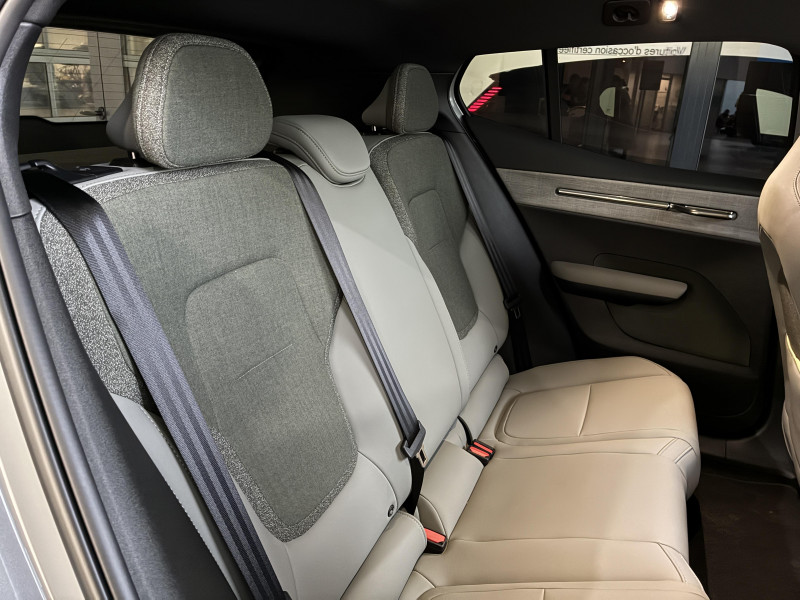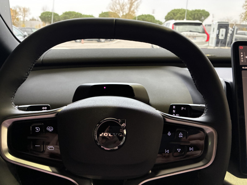 Aide au stationnement automatique nouvelle génération (Park Pilot Assist) Détection des places de parking libres adaptées au véhicule - Affichage du stationnement proposé sur l?écran central - En cas d?acceptation du stationnement proposé le véhicule se garera de lui même - Prise en charge de la direction, des freins et des changements de vitesse Peut être activé jusqu?à 22 km/h / Caméras Surround View (vision panoramique à 360°) incluant caméra AV et caméra de recul / Déclenchement automatique des feux de detresse lors d'un freinage d'urgence / En cas de collision, envoi automatique d'une alerte au service d'urgence Volvo Si un coussin gonflable ou un prétensionneur de ceinture de sécurité est déclenché lors d'une collision, une alerte est automatiquement envoyée au service d'urgence Volvo. Valable pendant 10 ans. / Fonction climatisation de l'habitacle moteur coupé / Fonctions d'intervention sur la direction aide au maintien dans la voie de 65 à 140 km/h, détection du risque de collision frontale en cas de chevauchement de voie du véhicule venant en sens inverse, Aide à diriger la voiture dans une trajectoire qui réduira le risque de sortie de route et si cela ne suffit pas, le système peut également intervenir en freinant pour réduire la vitesse / Frein de parking électronique automatique avec fonction Auto Hold (désactivable) / Jantes 19" gris mat /noir avec pneus 235/50 R19 / Phares LED avec feux de jour design marteau de Thor et feux de route adaptatifs / Pré-câblage électrique pour le crochet d'attelage / Système de contrôle de la qualité de l?air avec fonction CleanAir Filtre à charbon de climatisation multi-actif (limite l?entrée de pollen, de particules de pollution et des mauvaises odeurs en fermant automatiquement les arrivées d?air). La fonction CleanAir recycle l?air de l?habitacle. / Système d?aide à la vigilance (ou Driver Awareness) Surveillance anti-angle mort BLIS, Assistance au changement de file, Alerte trafic en marche AR, Alerte collision AR avec action corrective, Alerte sortie sécurisée à l?ouverture d?une portière, Freins actifs à l?arrêt, / 2 cartes de verrouillage et déverrouillage du véhicule / 2 prises USB type-C aux places AR / 2 prises USB type-C AV / Accès au service d?assistance Volvo via bouton dédié dans le plafonnier / Accès au service d?urgence Volvo via bouton SOS dans le plafonnier / Airbag passager désactivable avec témoin d'indication (on/off) / Airbags latéraux droit et gauche pour le conducteur et droit pour le passager AV / Alerte vigilance conducteur (Driver Alert Control) Informe le conducteur lorsque le système remarque qu'il est nécessaire de porter plus d'attention sur le trafic ou que la conduite semble anormale. Si le conducteur ne réagit pas, alors le véhicule pourra effectuer un arrêt de sécurité / Application Volvo EX30 sur smartphone (iOS et Android) / Assistance à l'anticipation et à l'atténuation des collisions avec le freinage et la direction véhicule circulant avec écart de vitesse jusqu'à 60 km/h. Détection des piétons, cyclistes, scooters. Freinage en cas d?inattention et arrêt en toute sécurité en fonction de la compréhension de l'état du conducteur / Avertisseur sonore d?approche Le véhicule émettra un son subtil mais audible lorsqu?il est conduit à basse vitesse dans le but d?avertir notamment les piétons et les cyclistes. / Bouton de verrouillage centralisé sur l?accoudoir central AV / Calandre AV pleine couleur carrosserie / Ceintures de sécuritéà inertie à 3 points d'ancrage (sur les 5 sièges) / Chargeur embarqué 22 kW / Coffre sous le capot AV d'une capacité de 7 litres / Compartiment de rangement entre les sièges AV / Conduite à une pédale ou One Pedal Drive Une seule pédale vous permet de profiter d?une expérience de conduite encore plus intuitive (fonction désactivable). / Contrôle de la transmission en descente HDC / Coques de rétroviseurs Noir / Câble de recharge Type 2, 32 A triphasé (fonctionne également en monophasé) Pour borne de recharge / Direction assistée électrique asservie à la vitesse / Eclairage d'ambiance personnalisable selon 5 ambiances - Forêt, Crépuscule, Aurores Boréales, Archipel, Été / Eclairage d'approche et d'accompagnement / Elargisseurs d?ailes noir mat / Espace de rangement sous l?écran central / Espaces de rangement dans les contre-portes / Espaces de rangement entre les deux sièges AV / Extracteur AR spécifique avec insert gris brume et inscription Cross Country / Face AV noire spécifique avec insert Topography / Freins à disques 17" ventilés à l'AV et à l'AR / Grand écran central flottant 12,3 / Hayon avec bandeau noir spécifique / Incrustations Denim recyclé / Indicateur de perte de pression des pneus / Inscription Cross Country sur le montant C / Jupe AV spécifique avec insert teinte gris brume / Kit anticrevaison / Miroirs de courtoisie, spots de lecture à l'AV et éclairage dans le coffre / Mise à jour du système à distance (Over The Air ou OTA) / Ouverture des portes sans clé Keyless Entry / Pare-brise en verre feuilleté et colonne de direction rétractable en cas de choc / Parties inférieures des vitres Noir brillant / Pilot Assist Lecture des marquages au sol, Observation de la circulation et des autres véhicules, Assistance avec adaptation de la vitesse, Action sur la direction afin de maintenir le véhicule centré dans sa voie avec un maintien de la distance de sécurité avec le véhicule qui précède, Assistance lorsqu?un changement de voie est nécessaire, peut être activé jusqu?à 130 km/h / Plancher de coffre amovible / Pompe à chaleur Puissance de charge maximale de 155 kW / Port de recharge sur l'aile AR gauche et connecteur charge rapide / Porte-gobelets AV / Prise 12 V dans le coffre / Préparation pour fixations Isofix (places latérales de la deuxième rangée de sièges) / Rappel d'oubli de bouclage de ceinture de sécurité AV et