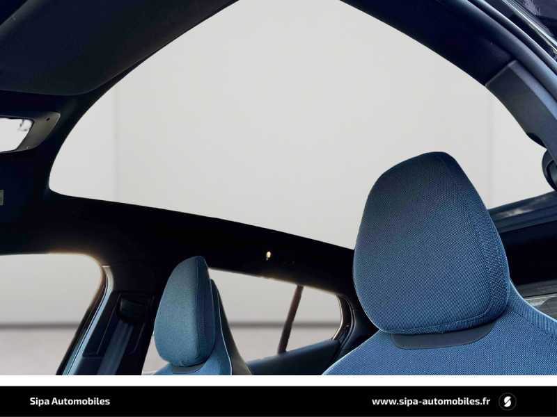 Aide au stationnement automatique nouvelle génération (Park Pilot Assist) Détection des places de parking libres adaptées au véhicule - Affichage du stationnement proposé sur l'écran central - En cas d'acceptation du stationnement proposé le véhicule se garera de lui même - Prise en charge de la direction, des freins et des changements de vitesse Peut être activé jusqu'à 22 km/h / Caméras Surround View (vision panoramique à 360°) incluant caméra AV et caméra de recul / Déclenchement automatique des feux de detresse lors d'un freinage d'urgence / En cas de collision, envoi automatique d'une alerte au service d'urgence Volvo Si un coussin gonflable ou un prétensionneur de ceinture de sécurité est déclenché lors d'une collision, une alerte est automatiquement envoyée au service d'urgence Volvo. Valable pendant 10 ans. / Fonction climatisation de l'habitacle moteur coupé / Fonctions d'intervention sur la direction aide au maintien dans la voie de 65 à 140 km/h, détection du risque de collision frontale en cas de chevauchement de voie du véhicule venant en sens inverse, Aide à diriger la voiture dans une trajectoire qui réduira le risque de sortie de route et si cela ne suffit pas, le système peut également intervenir en freinant pour réduire la vitesse / Frein de parking électronique automatique avec fonction Auto Hold (désactivable) / Jantes alliage 19'' 5 branches Noir / Diamant avec inserts aérodynamiques et pneus été 245/45 R19 / Phares LED avec feux de jour design marteau de Thor et feux de route adaptatifs / Pré-câblage électrique pour le crochet d'attelage / Système d'aide à la vigilance (ou Driver Awareness) Surveillance anti-angle mort BLIS, - Assistance au changement de file, - Alerte trafic en marche arrière, - Alerte collision arrière avec action corrective, - Alerte sortie sécurisée à l'ouverture d'une portière, - Freins actifs à l'arrêt, - Ceintures de sécurité avant avec système de prévention à la collision (serrage automatique) / Système de contrôle de la qualité de l'air avec fonction CleanAir Filtre à charbon de climatisation multi-actif (limite l'entrée de pollen, de particules de pollution et des mauvaises odeurs en fermant automatiquement les arrivées d'air). La fonction CleanAir recycle l'air de l'habitacle. / 2 cartes de verrouillage et déverrouillage du véhicule / 2 prises USB type-C aux places AR / 2 prises USB type-C AV / Accès au service d'assistance Volvo via bouton dédié dans le plafonnier / Accès au service d'urgence Volvo via bouton SOS dans le plafonnier / Airbag passager désactivable avec témoin d'indication (on/off) / Airbags latéraux droit et gauche pour le conducteur et droit pour le passager AV / Alerte vigilance conducteur (Driver Alert Control) Informe le conducteur lorsque le système remarque qu'il est nécessaire de porter plus d'attention sur le trafic ou que la conduite semble anormale. Si le conducteur ne réagit pas, alors le véhicule pourra effectuer un arrêt de sécurité / Application Volvo EX30 sur smartphone (iOS et Android) / Assistance à l'anticipation et à l'atténuation des collisions avec le freinage et la direction véhicule circulant avec écart de vitesse jusqu'à 60 km/h. Détection des piétons, cyclistes, scooters. Freinage en cas d'inattention et arrêt en toute sécurité en fonction de la compréhension de l'état du conducteur / Avertisseur sonore d'approche Le véhicule émettra un son subtil mais audible lorsqu'il est conduit à basse vitesse dans le but d'avertir notamment les piétons et les cyclistes. / Bouton de verrouillage centralisé sur l'accoudoir central AV / Calandre AV pleine couleur carrosserie / Ceintures de sécuritéà inertie à 3 points d'ancrage (sur les 5 sièges) / Chargeur embarqué 22 kW / Chargeur embarqué Puissance de charge maximale de 11 kW (courant alternatif).Puissance de charge maximale de 155 kW (courant continu) / Coffre sous le capot AV d'une capacité de 7 litres / Compartiment de rangement entre les sièges AV / Conduite à une pédale ou One Pedal Drive Une seule pédale vous permet de profiter d'une expérience de conduite encore plus intuitive (fonction désactivable). / Contrôle de la transmission en descente HDC / Coques de rétroviseurs Noir Laqué / Câble de recharge Type 2, 32 A triphasé (fonctionne également en monophasé) Pour borne de recharge / Direction assistée électrique asservie à la vitesse / Eclairage d'ambiance personnalisable selon 5 ambiances - Forêt, Crépuscule, Aurores Boréales, Archipel, Été / Eclairage d'approche et d'accompagnement / Espace de rangement sous l'écran central / Espaces de rangement dans les contre-portes / Espaces de rangement entre les deux sièges AV / Freins à disques 17" ventilés à l'AV et à l'AR / Grand écran central flottant 12,3 / Incrustations Denim recyclé / Indicateur de perte de pression des pneus / Kit anticrevaison / Miroirs de courtoisie éclairés, spots de lecture à l'AV et éclairage dans le coffre / Mise à jour du système à distance (Over The Air ou OTA) / Ouverture des portes sans clé Keyless Entry / Pare-brise en verre feuilleté et colonne de direction rétractable en cas de choc / Parties inférieures des vitres Noir brillant / Pilot Assist Lecture des marquages au sol, Observation de la circulation et des autres véhicules, Assistance avec adaptation de la vitesse, Action sur la direction afin de maintenir le véhicule centré dans sa voie avec un maintien de la distance de sécurité avec le véhicule qui précède, Assistance lorsqu'un changement de voie est nécessaire, peut être activé jusqu'à 130 km/h / Plancher de coffre amovible / Pompe à chaleur permet principalement d'économiser la puissance de la batterie. / Port de recharge sur l'aile AR gauche et connecteur charge rapide / Porte-gobelets AV / Prise 12 V dans le coffre / Préparation pour fixations Isofix (places latérales de la deuxième rangée de sièges) / R