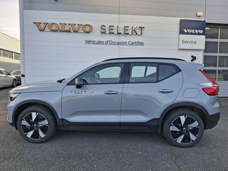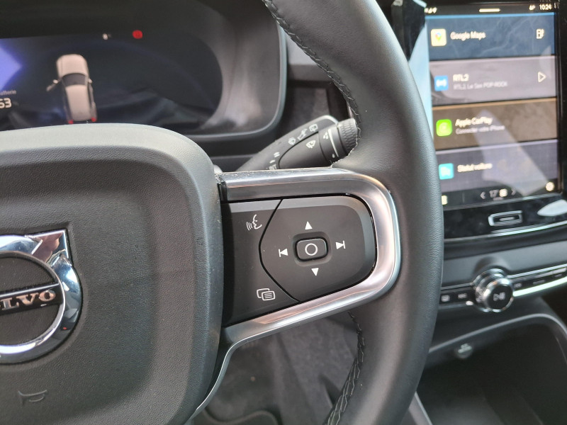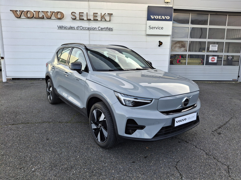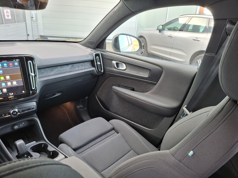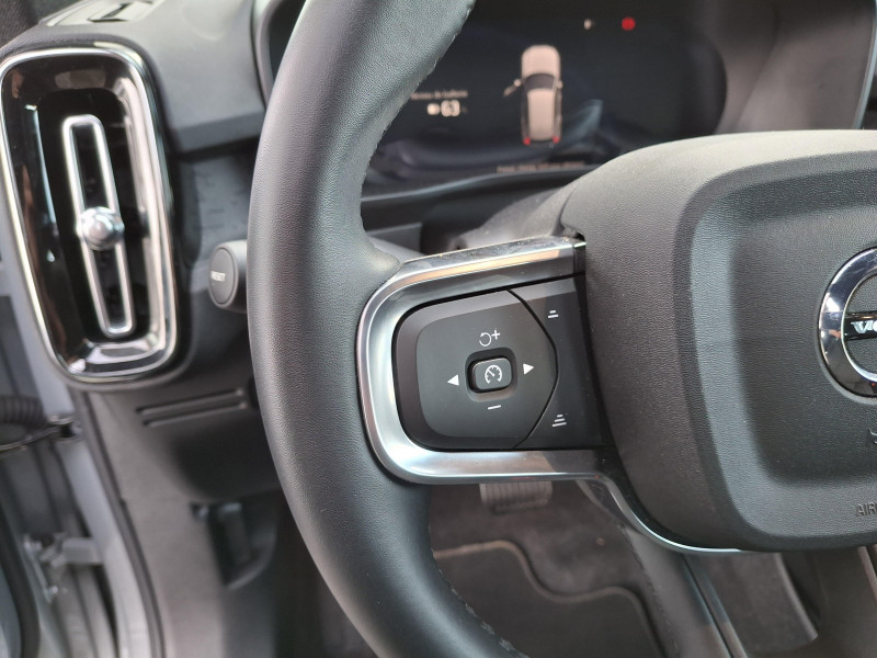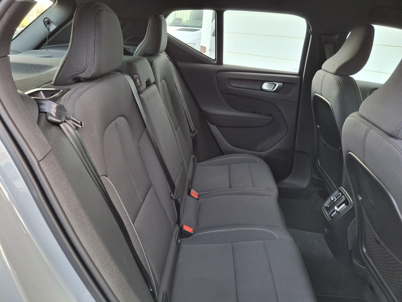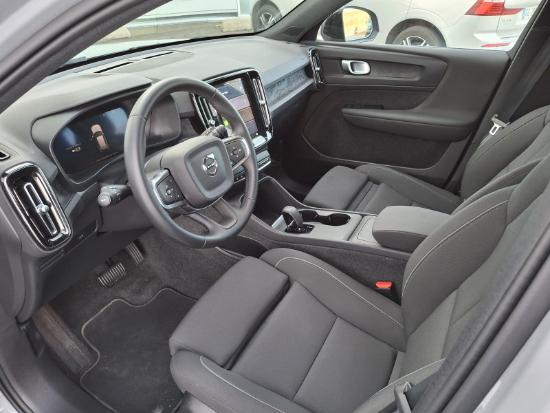 Airbag conducteur et passager à déclenchement différencié / Airbag passager désactivable avec témoin d'indication (on/off) / Application Volvo Cars sur smartphone (iOS et Android) Mise à jour du système à distance, Système audio Volvo High Performance avec technologie air woofer au niveau de la console centrale, 250 W, 8 HP, radio numérique terrestre, prise 12 V et 2 ports USB C AV, Connexion Bluetooth, Commandes audio au volant / Assise des sièges AV extensible manuellement / Ceintures de sécuritéà inertie à 3 points d'ancrage (sur les 5 sièges) / Ciel de toit noir / City Safety, système d'anticipation de collision intelligent Détection des véhicules, cyclistes, piétons et grands animaux avec freinage automatique à pleine puissance, Détection des véhicules aux intersections avec freinage automatique à pleine puissance, Avertissement lumineuse et sonore, Préparation des freins et ceintures de sécurité AV / CleanZone : Filtre à charbon de climatisation multi-actif et fonction pré-ventilation / Climatisation automatique bi-zone (incluant ouïes d'aération à l'AR) / Déclenchement automatique des feux de detresse lors d'un freinage d'urgence / Ecran tactile multimédia haute résolution 9", personnalisable / En cas de collision, envoi automatique d'une alerte au service d'urgence Volvo Si un coussin gonflable ou un prétensionneur de ceinture de sécurité est déclenché lors d'une collision, une alerte est automatiquement envoyée au service d'urgence Volvo. Valable pendant 10 ans. / Filet de sécurité derrière la rangée de sièges AV / Fonction climatisation de l'habitacle moteur coupé / Frein de parking électronique automatique avec fonction Auto Hold (désactivable) / Freinage automatique post-collision (réduction du risque de suraccident) / Infotainment Google Android Services Google (Google Maps, Google Assistant, Google Play Store et un volume de données illimité pour les 4 premières années), Kit mains libres Bluetooth et Streaming Audio, mode d'emploi numérique du véhicule, réception de la radio numérique (DAB+), mises à jour Over the Air (OTA) / Jantes alliage 19" 5 branches Noir Diamant (235/50 R19 AV et 255/45 R19 AR) / Pack Intellisafe Pro IntelliSafe Assist - Régulateur adaptatif de vitesse et de distance ACC, Assistance à la conduite intelligente, Alerte distance de sécurité, IntelliSafe Surround - Surveillance anti-angle mort avec action correctrice sur la direction, Assistance au changement de file, Alerte trafic en marche AR et Alerte collision AR avec freinage automatique / Phares LED avec feux de jour design marteau de Thor et feux de route adaptatifs / Pommeau de levier de vitesses Simili-Cuir / Pré-câblage électrique pour le crochet d'attelage / Préparation pour fixations Isofix (places latérales de la deuxième rangée de sièges) / Sièges conducteur et passager avec réglage manuel de la hauteur / Sièges conducteur et passager avec réglage manuel de la longueur, de l'inclinaison du dossier et de l´assise / Sièges conducteur et passager avec réglages électriques des supports lombaires / Système de protection contre le coup du lapin WHIPS (sièges AV) / Système de protection en cas de sortie de route : Ceintures de sécurité actives à prétensionneurs, Assise des sièges AV à absorption d'énergie, Pédale de frein rétractable en cas de collision frontale / Télécommande de verrouillage centralisé avec clé contact integrée, fermeture à distance des vitres et du toit ouvrant et fonction panique (déclenchement du klaxon et des feux de détresse) / Volant 3 branches sport avec insert Aluminium autour des boutons de commande / 2 porte-cintres / Accès au service d'assistance Volvo via bouton dédié dans le plafonnier / Accès au service d'urgence Volvo via bouton SOS dans le plafonnier / Alerte vigilance conducteur / Assistance à l'évitement des piétons et des cyclistes / Bas de caisse et passages de roues Anthracite / Calandre AV pleine couleur carrosserie / Coffre sous le capot AV d'une capacité de 31 litres / Combiné d'instruments digital 12,3" personnalisable, nouvelle génération / Contrôle de la transmission en descente HDC / Coques de rétroviseurs Noir Brillant / Corbeille intégrée et amovible au niveau du tunnel central AV / Crochet pour sacs intégréà la boîte à gants / Câble de recharge Type 2, 4, 5 mètres, 32 A triphasé (fonctionne également en monophasé) Pour borne de recharge / Diffuseur AR Noir Laqué / Direction assistée électrique asservie à la vitesse / Eclairage d'approche et d'accompagnement / Espace de rangement sous la console centrale / Freins à disques 18" à l'AR / Garantie 3 ans ou 100 000 km / Indicateur de perte de pression des pneus / Kit anticrevaison / Matériaux anti-allergènes dans l'habitacle / Miroirs de courtoisie éclairés, spots de lecture à l'AV et éclairage dans le coffre / Ouverture des portes sans clé Keyless Entry incluant éclairage du sol dans les poignées de porte AV + Hayon électrique avec fonction Confort (sans les mains) / Pare-brise en verre feuilleté et colonne de direction rétractable en cas de choc / Parties inférieures des vitres Noir brillant / Plancher du coffre rabattable avec crochets / Port de recharge sur l'aile AR gauche et connecteur charge rapide (jusqu'à 205 kW) / Porte-cartes bancaires et cartes de services intégré dans la planche de bord / Protections de pare-chocs AV et AR Noir brillant / Rappel d'oubli de bouclage de ceinture de sécurité AV et AR / Réglage en hauteur manuel des ceintures AV / Rétroviseur intérieur électrochrome sans contour / Rétroviseurs couleur carrosserie avec partie inférieure noir / Sabots de protection AV et AR Noir / Seuils de porte AV EX40 / Sonde de température extérieure et horloge / Système de contrôle de la stabilité et de la traction STC / Système de contrôle du freinage du véhicule VDC / Système de protection anti-sortie de route / Système de protec