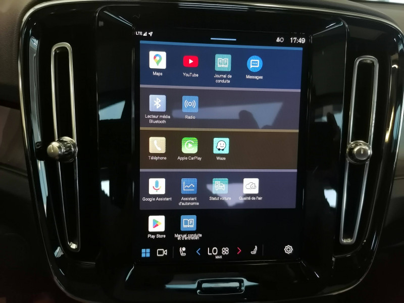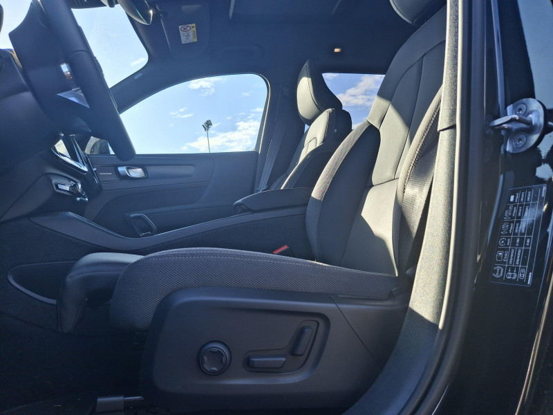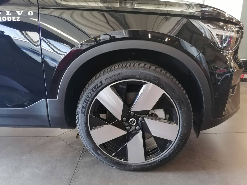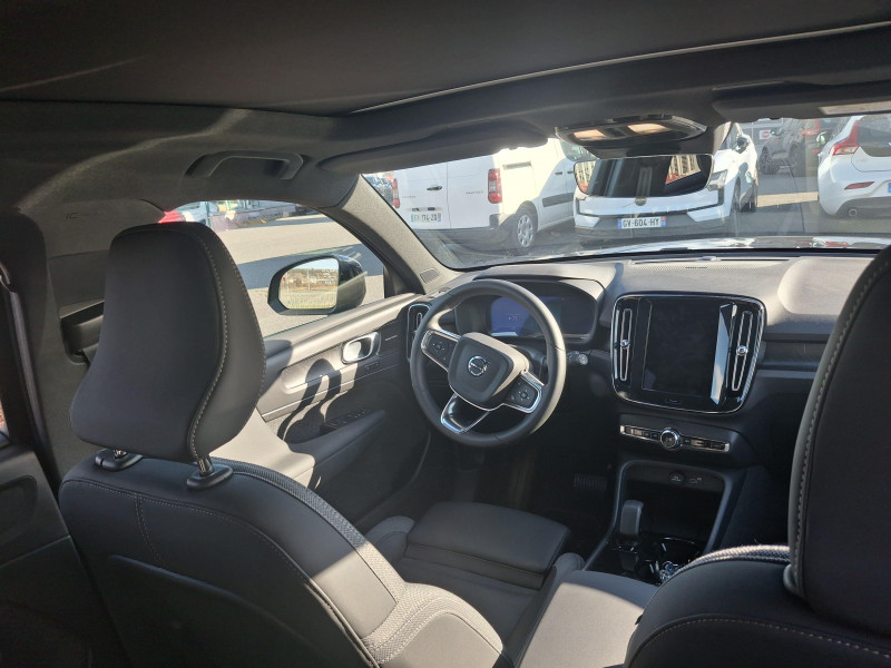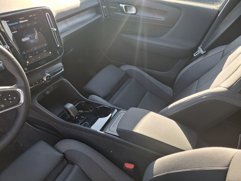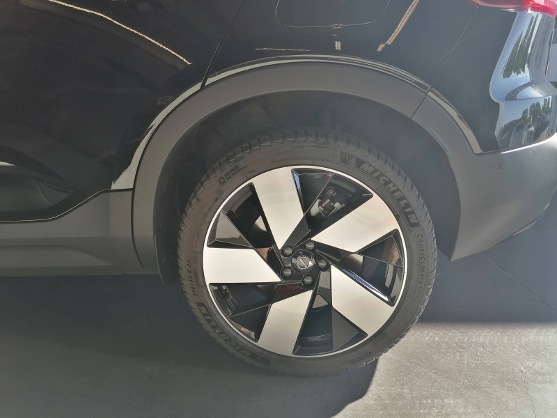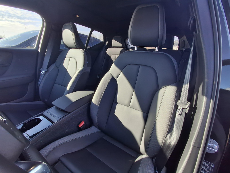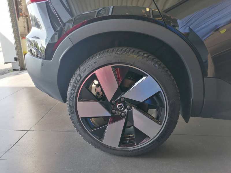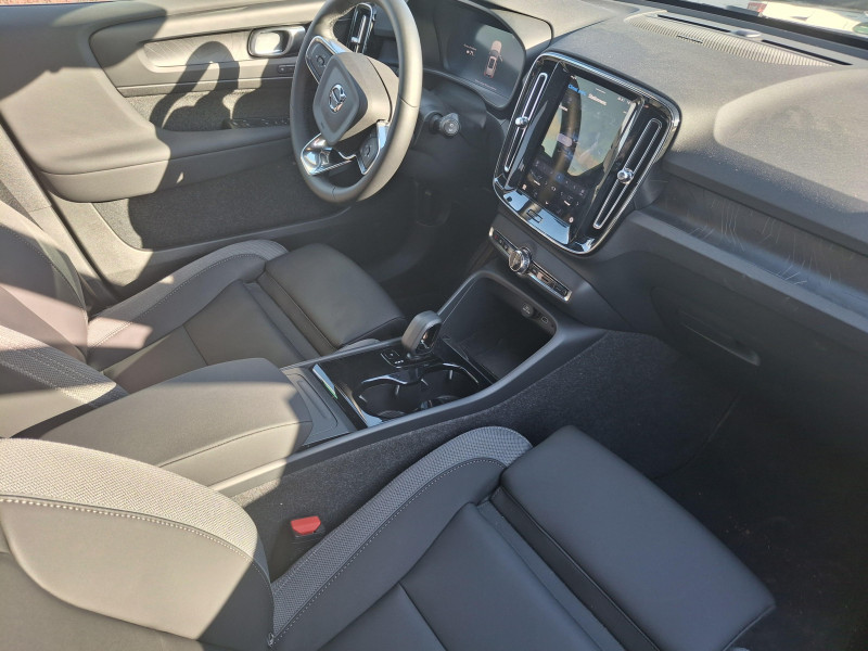 Airbag conducteur et passager à déclenchement différencié / Airbag passager désactivable avec témoin d'indication (on/off) / Application Volvo Cars sur smartphone (iOS et Android) / Assise des sièges AV extensible manuellement / Caméras Surround View (vision panoramique à 360°) incluant caméra AV et caméra de recul et assistance stationnement semi-automatique / Ceintures de sécuritéà inertie à 3 points d'ancrage (sur les 5 sièges) / Ciel de toit noir / City Safety, système d'anticipation de collision intelligent Détection des véhicules, cyclistes, piétons et grands animaux avec freinage automatique à pleine puissance, Détection des véhicules aux intersections avec freinage automatique à pleine puissance, Avertissement lumineuse et sonore, Préparation des freins et ceintures de sécurité AV / CleanZone : Filtre à charbon de climatisation multi-actif et fonction pré-ventilation / Climatisation automatique bi-zone (incluant ouïes d'aération à l'AR) / Déclenchement automatique des feux de detresse lors d'un freinage d'urgence / Ecran tactile multimédia haute résolution 9", personnalisable / En cas de collision, envoi automatique d'une alerte au service d'urgence Volvo Si un coussin gonflable ou un prétensionneur de ceinture de sécurité est déclenché lors d'une collision, une alerte est automatiquement envoyée au service d'urgence Volvo. Valable pendant 10 ans. / Fonction climatisation de l'habitacle moteur coupé / Frein de parking électronique automatique avec fonction Auto Hold (désactivable) / Freinage automatique post-collision (réduction du risque de suraccident) / Infotainment Volvo Car UX Services Google (comprend Google Maps, Google Assistant, Google Play Store, et un volume de données illimité pour les 4 premières années), kit mains libres Bluetooth et Streaming Audio, mode d'emploi numérique du véhicule, réception de la radio numérique (DAB+), mises à jour Over the Air (OTA) / Jantes alliage 19" 5 branches Noir Diamant (235/50 R19 AV et 255/45 R19 AR) / Pack Hiver Sièges AV chauffants, Volant chauffant, Pompe à chaleur / Pack Pilot Assist - Assistance à la conduite intelligente (le véhicule lit le marquage au sol et agit sur la direction afin de se maintenir au centre de sa voie, le conducteur doit garder les mains sur le volant, fonctionne jusqu'à 130 km/h) - Surveillances des angles morts : avec action correctrice sur la direction, assistance au changement de fil, alerte trafic en marche AR et Alerte collision AR avec freinage automatique / Pack Sièges électriques Siège conducteur à réglages électriques et à fonction mémoire, Siège passager AV à réglages électriques, Appuie-têtes AR rabattables électriquement depuis l'écran central / Phares LED avec feux de jour design marteau de Thor et feux de route adaptatifs / Pommeau de levier de vitesses Simili-Cuir / Pré-câblage électrique pour le crochet d'attelage / Préparation pour fixations Isofix (places latérales de la deuxième rangée de sièges) / Sièges conducteur et passager avec réglages électriques des supports lombaires / Système audio Volvo Premium Sound by Harman/Kardon 600 W avec 13 HP et technologie Subwoofer / Système de protection contre le coup du lapin WHIPS (sièges AV) / Système de protection en cas de sortie de route : Ceintures de sécurité actives à prétensionneurs, Assise des sièges AV à absorption d'énergie, Pédale de frein rétractable en cas de collision frontale / Toit noir contrasté / Télécommande de verrouillage centralisé avec clé contact integrée, fermeture à distance des vitres et du toit ouvrant et fonction panique (déclenchement du klaxon et des feux de détresse) / Verrouillage automatique des portes à partir de 7 km/h / Volant 3 branches sport avec insert Aluminium autour des boutons de commande / 2 porte-cintres / Accès au service d'assistance Volvo via bouton dédié dans le plafonnier / Accès au service d'urgence Volvo via bouton SOS dans le plafonnier / Alerte vigilance conducteur / Assistance à l'évitement des piétons et des cyclistes / Bas de caisse et passages de roues Anthracite / Calandre AV pleine couleur carrosserie / Coffre sous le capot AV d'une capacité de 31 litres / Combiné d'instruments digital 12,3", nouvelle génération / Contrôle de la transmission en descente HDC / Coques de rétroviseurs Noir Brillant / Crochet pour sacs intégréà la boîte à gants / Câble de recharge Type 2, 4, 5 mètres, 32 A triphasé (fonctionne également en monophasé) Pour borne de recharge / Diffuseur AR Noir Laqué / Direction assistée électrique asservie à la vitesse / Eclairage d'approche et d'accompagnement / Espace de rangement sous la console centrale / Filet de rangement pour le coffre / Freins à disques 18" à l'AR / Garantie 3 ans ou 100 000 km / Indicateur de perte de pression des pneus / Kit anticrevaison / Matériaux anti-allergènes dans l'habitacle / Miroirs de courtoisie éclairés, spots de lecture à l'AV et éclairage dans le coffre / Mise à jour du système à distance / Ouverture des portes sans clé Keyless Entry incluant éclairage du sol dans les poignées de porte AV + Hayon électrique avec fonction Confort (sans les mains) / Pare-brise en verre feuilleté et colonne de direction rétractable en cas de choc / Parties inférieures des vitres Noir brillant / Plancher du coffre rabattable avec crochets / Port de recharge sur l'aile AR gauche et connecteur charge rapide (jusqu'à 205 kW) / Porte-cartes bancaires et cartes de services intégré dans la planche de bord / Protections de pare-chocs AV et AR Noir brillant / Rappel d'oubli de bouclage de ceinture de sécurité AV et AR / Réglage en hauteur manuel des ceintures AV / Régulateur adaptatif de vitesse et de distance ACC / Rétroviseur intérieur électrochrome sans contour / Rétroviseurs couleur carrosserie avec partie inférieure noir / Sabots de protection AV et AR Noir / Seuils de porte AV EX40 / Sonde de