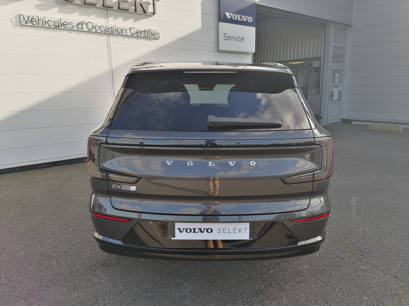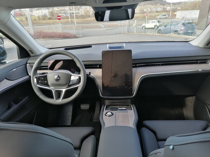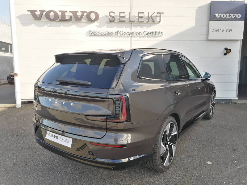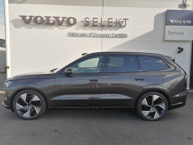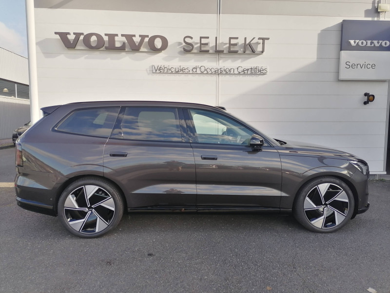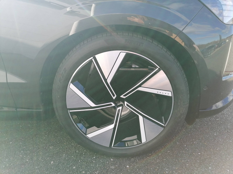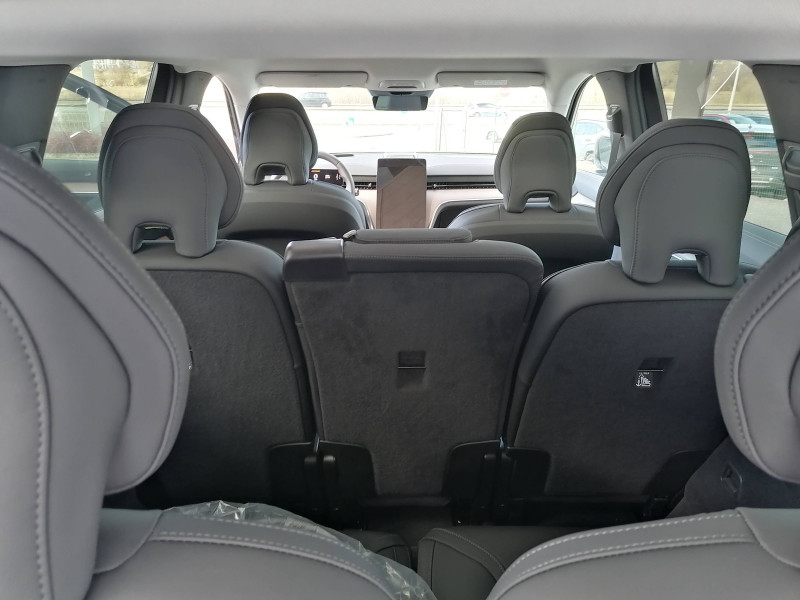 7 véritables sièges individuels Siège conducteur, siège passager à l'avant, seconde rangée de 3 places et troisième rangée de 2 places. Troisième rangée escamotable électriquement. / Airbag conducteur à déclenchement différencié / Application Volvo Cars sur smartphone (iOS et Android) / Assise des sièges AV extensible manuellement / Caméra avec vision panoramique 3D à 360° incluant caméra AV et caméra de recul / Châssis Touring Ajusté pour un confort et un agrément de conduite optimal. - amortissement piloté avec la technologie FSD (Frequency Selection Damper) offrant un parfait équilibre entre confort et tenue de route dynamique - essieu AV et AR en aluminium pour assurer un poids réduit / Climatisation indépendante pour la troisième rangée / Commutateur de désactivation de l'airbag du passager AV / Emblème de calandre chauffant / Fonctions d'intervention sur la direction aide au maintien dans la voie de 65 à 140 km/h, détection du risque de collision frontale en cas de chevauchement de voie du véhicule venant en sens inverse, Aide à diriger la voiture dans une trajectoire qui réduira le risque de sortie de route et si cela ne suffit pas, le système peut également intervenir en freinant pour réduire la vitesse / Grand écran central flottant 14,5" Ce grand écran haute-définition en format portrait permet de se passer de boutons physiques et d'entrer dans une nouvelle ère numérique. Haute qualité d'affichage avec revêtement antireflet LCF (Light Control Film) et technologie LCD (Liquid Crystal Display) avec technologie de détection de proximité. L'écran tactile vous obéira même si vous portez des gants. Permet d'accéder directement au manuel d'utilisation Volvo digital. / Jantes alliage 21" 8 branches Noir/Diamant avec insert ultra-léger aérodynamique AV : 265/45 R21 AR : 295/40 R21. Pneumatiques toutes-saisons spécifiques 100 % électrique / Lidar coloris Noir Laqué entre le pare-brise et le pavillon de toit / Pack Hiver - volant chauffant - sièges AR chauffants - lave-phares à haute pression / Projecteurs LED à technologie Pixel haute-définition Ces projecteurs rendent la conduite dans l'obscuritéà la fois plus sûre et plus sereine. Le module de 1,3 million de Pixels des projecteurs permet d'adapter la luminosité aux conditions ambiantes et d'identifier jusqu'à cinq voitures et trois autres objets (type panneau de signalisation) en même temps. Et lorsque vous approchez ou quittez le véhicule, les projecteurs et les feux arrière peuvent créer des séquences lumineuses animées avancées de bienvenue et d'aurevoir. / Protection sièges avant WHIPS Permet de réduire le risque de traumatisme du rachis cervical en cas de collision par l'arrière / Préparation pour attelage / Préparation pour le système Isofix (places latérales de la deuxième rangée de sièges et places de la troisième rangée). / Rails de toit intégrés coloris Noir / Rétroviseurs extérieur/intérieur avec fonction anti-éblouissement automatique. / Siège conducteur à réglages électriques et avec mémoire / Siège passager à réglages électriques / Sièges AV avec fonction massage & supports lombaires réglables électriquement / Système audio Bose Premium Sound Les 14 haut-parleurs haut de gamme s'intègrent parfaitement au design intérieur et à l'acoustique du véhicule. La méthodologie de réglage unique de Bose - Perceptual Sound Rendering - combinée au son surround de dernière génération Centerpoint 360 et à la technologie SurroundStage crée un son riche et équilibré autour de chaque siège pour offrir cette sensation spéciale de salle de concert. Puissance totale : 940 watts / Système d'adaptation intelligente de la vitesse (ou Intelligent Speed Assist ISA) Système automatiquement activéà partir de 20 km/h qui encourage le conducteur à ralentir lorsque la limite de vitesse est dépassée. Avertissement sonore et action sur la pédale. La fonction ne peut être désactivée que lors du cycle de conduite, mais sera proposée à chaque redémarrage du véhicule. / Système d'aide à la vigilance (ou Driver Awareness) Surveillance anti-angle mort BLIS, - Assistance au changement de file, - Alerte trafic en marche arrière, - Alerte collision arrière avec action corrective, - Alerte sortie sécurisée à l'ouverture d'une portière, - Freins actifs à l'arrêt, - Ceintures de sécurité avant avec système de prévention à la collision (serrage automatique) / Système d'infodivertissement Android avec services Google Ce système comprend Google Maps, Google Assistant, Google Play Store et un volume de données nécessaires pour les 4 premières années. Inclus également le volume de données nécessaire à l'accès et l'utilisation des fonctionnalités à distance de l'application Volvo Cars. / Système de compréhension du conducteur La technologie permet à l'EX90 d'évaluer si vous êtes fatigué, distrait ou inattentif. En cas de nécessité, le Volvo EX90 pourra freiner et s'arrêter en toute sécurité dans sa voie en envoyant un avertissement aux autres usagers avec ses feux de détresse. / Système de détection des occupants (SDO) Ce système vous aide à n'oublier personne derrière vous, enfant et animal de compagnie. / Système de sécurité connectée (ou Connected Safety) Ce système de sécurité connectée aide à prévoir et adapter votre conduite aux situations dangereuses sur la route. Connecté au cloud, votre véhicule est capable de vous alerter avec un symbole sur l'écran du conducteur si un danger vous précède. En effet, cette technologie permet aux véhicules connectés au "cloud" d'échanger et de s'avertir mutuellement des dangers, comme un véhicule immobilisé ou encore un sol glissant. Votre voiture contribue à améliorer la sécurité dans la route. / 6 ports USC type-C (2 à chaque rangée) / Affichage tête haute nouvelle génération Résolution de 800x480 pixels. / Alcoguard - Pr