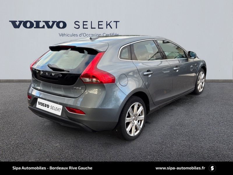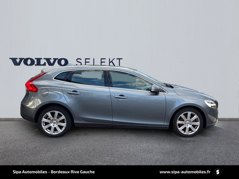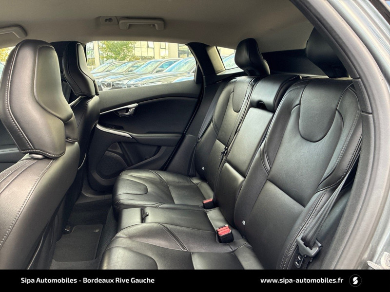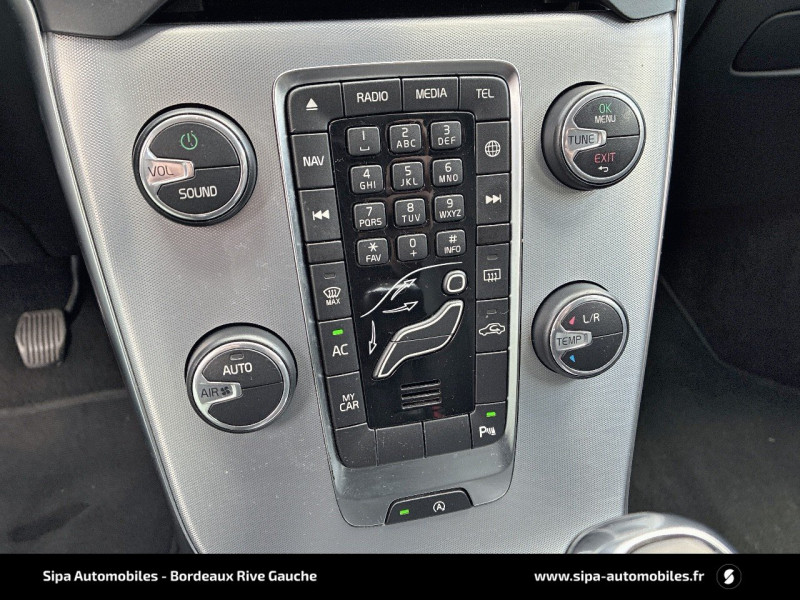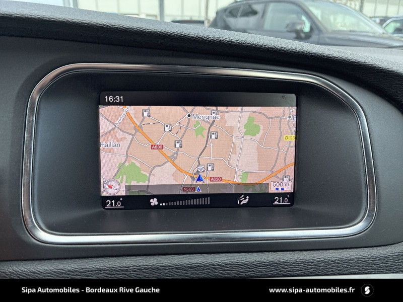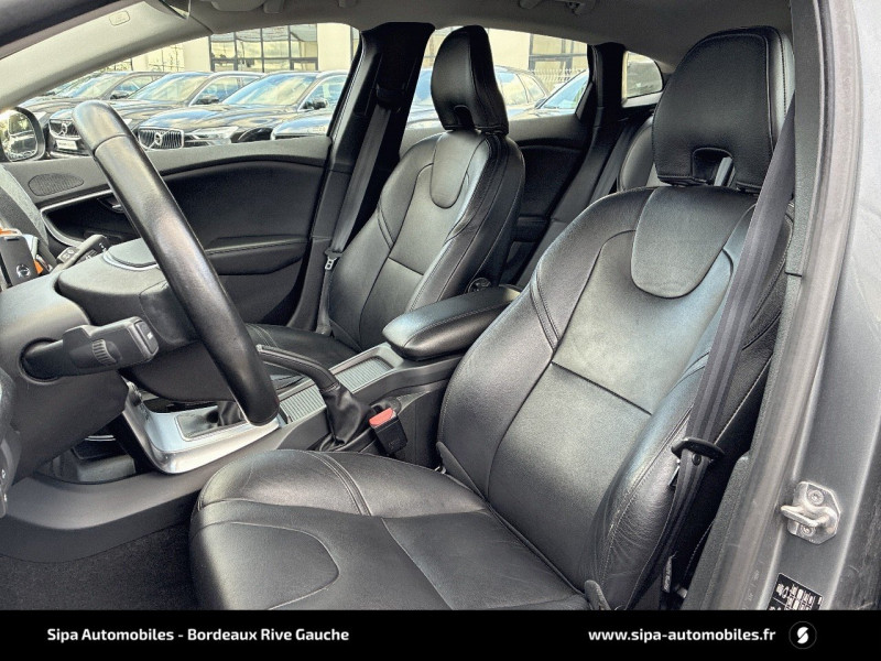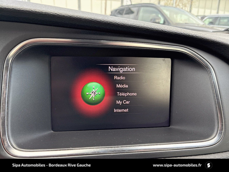 Assise et dossier des sièges en Cuir / City Safety : système d'anticipation de collision avec freinage automatique jusqu'à 50 km/h / CleanZone : Filtre à charbon de climatisation multi-actif (limite l'entrée de pollen, de particules de pollution et des mauvaises odeurs en fermant automatiquement les arrivées d'air si nécessaire) / Commandes de climatisation et du système audio cerclées de chrome / Déclenchement automatique des feux de detresse lors d'un freinage d'urgence / Eclairage d'ambiance à LED à l'AV, intensité réglable et couleur personnalisable / Incrustations Aluminium Maillé (incluant contour de la console centrale et incrustations des contre- portes chromés, insert chromé au dessus de la boîte à gants) / Jantes alliage SARPAS 17" Argent 225/45 R17 / Pack City Sensus / Phares LED avec correcteur dynamique de la portée et feux de jour / Pré-câblage électrique pour le crochet d'attelage / Radar de stationnement AR avec signal sonore et visuel / Réglage automatique des ceintures AV en hauteur / Rétroviseurs extérieurs rabattables électriquement avec éclairage du sol et rappels de clignotant àà LED / Sensus Navigation, Affichage 3D, cartographie Europe, information trafic en temps réel, Applications web dédiées, 8 ans de mises à jour cartographiques gratuites grâce au programme MapCare / Système audio Volvo High Performance avec Sensus Connect + Ecran couleur 7", 180W, 8 HP et commande vocale avancée, Connexion Bluetooth, radio RDS, CD/DVD (MP3 et WMA), prises auxiliaire et USB, disque dur 10 Go, Navigateur, applications web, affichage et lecture vocale des SMS (TTS), eManuel utilisateur et service révision connectée / Télécommande de verrouillage centralisé avec clé contact integrée, fermeture automatique des vitres, fonction panique (déclenchement du klaxon et des feux de détresse) et gestion à distance de l'éclairage d'approche et d'accompagnement / Verrouillage automatique des portes à partir de 7 km/h / Volant 3 branches gainé de Cuir avec insert en Aluminium / 2 porte-cintres aux places AR / 4 freins à disque 16" ventilés à l'AV / Accoudoir central AR rabattable avec 2 porte-gobelets / Airbag piéton : actif de 20 à 50 km/h. Un capteur dans le pare-choc AV détecte l'impact, le capot se soulève légèrement pour absorber l'énergie du choc et l'airbag se déploie sur une partie du pare-brise et sur les montants A / Airbags conducteur et passager à déclenchement différencié / Appuie-tête sur chaque siège, dont 3 réglables en hauteur (AV et central AR) / Banquette AR rabattable en deux parties 60/40 / Bouton de verrouillage centralisé avec diode de contrôle pour le conducteur / Boîte à gants avec espace de rangement pour stylo et carte bancaire / Buses de lave-glaces chauffantes / Cache-bagages rigide / Calandre avec inserts verticaux chromés / Ceintures de sécuritéà inertie à 3 points d'ancrage (sur les 5 sièges) / Châssis Confort abaissé de 10 mm / Combiné d'instruments digital, personnalisable / Contour de la console centrale et incrustations des contre-portes chromés / Contour des vitres latérales chromé / Correcteur électronique de trajectoire ESC avec système de vectorisation du couple moteur CTC / Direction assistée électrique asservie à la vitesse avec volant réglable en hauteur et en profondeur / Détection de non bouclage de ceinture de sécurité pour les sièges AR / Eclairage d'accompagnement et éclairage d'approche / Espace de rangement dans les portes AV / Espace de rangement situé derrière la console centrale / Espaces de rangement entre les sièges AV incluant 2 porte-gobelets / Fonction Stop&Start : coupe et redémarre auromatiquement le moteur lorsque la voiture est à l'arrêt / Indicateur de perte de pression des pneus avec localisation / Insert chromé au dessus de la boîte à gants / Insert chromé sur le bouclier AV / Kit anticrevaison / Matériaux anti-allergènes dans l'habitacle / Miroirs de courtoisie éclairés, spots de lecture à l'AV et à l'AR, éclairage aux pieds à l'AV, derrière la console centrale, dans la boîte à gants et dans le coffre, éclairage intérieur temporisé / Pare-brise en verre feuilleté et colonne de direction rétractable en cas de choc / Porte ticket de parking et d'autoroute / Prise 12 V dans le tunnel central AV / Préparation pour le système de fixation Isofix (sièges latéraux de la banquette AR) / Rappel d'oubli de bouclage de ceinture de sécurité AV / Rétroviseur intérieur électrochrome sans contour / Rétroviseurs extérieurs couleur carrosserie / Rétroviseurs extérieurs dégivrants à réglages électriques avec rappels de clignotant intégrés / Seuils de portes AV badgés Inscription / Simple sortie d'échappement non visible / Siège conducteur avec réglages manuels de la hauteur de l'assise, de l'inclinaison du dossier, de l'inclinaison de l'assise et des supports lombaires / Siège passager avec réglages manuels de la hauteur de l'assise et des supports lombaires / Sonde de température extérieure et horloge dans le combiné d'instruments / Spoiler AR standard / Système anti-sous-marinage sur chaque siège / Système de protection contre le coup du lapin WHIPS (sièges AV) / Système de protection contre les chocs latéraux SIPS / Système de protection en cas de retournement (ROPS), ensemble d'équipements sécuritaires comprenant Rideaux gonfables de sécurité IC, Ceintures AV et AR actives à prétensionneurs, Structure de l'habitacle renforcée à l'acier de Bore / Système de récupération d'énergie au freinage / Système de réglage en hauteur des phares / Système intelligent d'informations au conducteur IDIS / Tapis de sol textile AV et AR / Trappe à carburant intelligente sans bouchon / Trousse de premiers secours et triangle de présignalisation / Utilisation de matériaux recyclables à 85 % / Verrouillage manuel de sécurité enfants