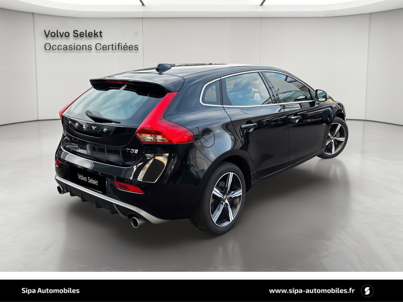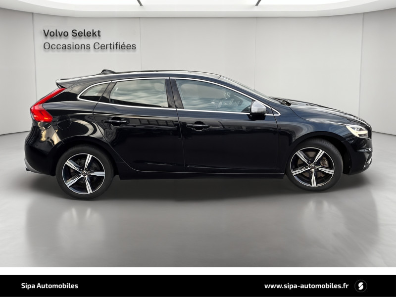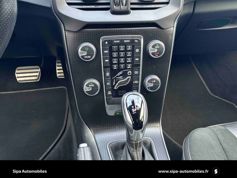 City Safety : système d'anticipation de collision avec freinage automatique jusqu'à 50 km/h / CleanZone : Filtre à charbon de climatisation multi-actif / Commandes de climatisation et du système audio cerclées de chrome / Déclenchement automatique des feux de detresse lors d'un freinage d'urgence / Eclairage d'ambiance à LED à l'AV, intensité réglable et couleur personnalisable / Incrustations Aluminium R-design Noir, contour de la console centrale et incrustations des contre- portes chromés, insert chromé au dessus de la boîte à gants / Jantes alliage IXION 17" Diamant/Noir Mat 225/45 R17 / Levier de frein à main en Cuir perforé avec surpiqûres Beige / Phares LED avec correcteur dynamique de la portée et feux de jour / Pommeau de levier de vitesses rétroéclairé en Cuir perforé avec surpiqûres Beige / Pré-câblage électrique pour le crochet d'attelage / Pédalier Sport en Aluminium et tapis de sol Sport / Radar de stationnement AR avec signal sonore et visuel / Réglage automatique des ceintures AV en hauteur / Rétroviseurs extérieurs rabattables électriquement avec éclairage du sol et rappels de clignotant àà LED / Sellerie Nubuck / Cuir / Cuir perforé Anthracite avec surpiqûres et passepoil Beige / Télécommande de verrouillage centralisé avec clé contact integrée, fermeture automatique des vitres, fonction panique (déclenchement du klaxon et des feux de détresse) et gestion à distance de l'éclairage d'approche et d'accompagnement / Verrouillage automatique des portes à partir de 7 km/h / Volant Sport 3 branches gainé de Cuir perforé avec insert Aluminium et surpiqûres Beige / 2 porte-cintres aux places AR / 4 freins à disque 16,5" ventilés à l'AV / Accoudoir central AR rabattable avec 2 porte-gobelets / Accoudoir central AV avec surpiqûres Beige / Airbag piéton : actif de 20 à 50 km/h. Un capteur dans le pare-choc AV détecte l'impact, le capot se soulève légèrement pour absorber l'énergie du choc et l'airbag se déploie sur une partie du pare-brise et sur les montants A / Airbags conducteur et passager à déclenchement différencié / Appuie-tête sur chaque siège, dont 3 réglables en hauteur (AV et central AR) / Banquette AR rabattable en deux parties 60/40 / Bouclier AV spécifique / Bouton de verrouillage centralisé avec diode de contrôle pour le conducteur / Boîte à gants avec espace de rangement pour stylo et carte bancaire / Buses de lave-glaces chauffantes / Cache-bagages rigide / Calandre et montants latéraux Noir Laqué / Ceintures de sécuritéà inertie à 3 points d'ancrage (sur les 5 sièges) / Châssis dynamique / Combiné d'instruments digital, personnalisable / Contour de la console centrale et incrustations des contre-portes chromés / Coques des rétroviseurs et contour des vitres latérales couleur Argent Brillant / Correcteur électronique de trajectoire ESC avec système de vectorisation du couple moteur CTC / Diffuseur AR spécifique avec double sortie d'échappement chromée / Direction assistée électrique asservie à la vitesse avec volant réglable en hauteur et en profondeur / Double sortie d'échappement chromée / Détection de non bouclage de ceinture de sécurité pour les sièges AR / Eclairage d'accompagnement et éclairage d'approche / Espace de rangement dans les portes AV / Espace de rangement situé derrière la console centrale / Espaces de rangement entre les sièges AV incluant 2 porte-gobelets / Fonction Eco+ : optimisation des paramètres véhicule pour une conduite économique et écologique (à la demande) / Fonction Stop&Start : coupe et redémarre auromatiquement le moteur lorsque la voiture est à l'arrêt / Indicateur de perte de pression des pneus avec localisation / Insert chromé au dessus de la boîte à gants / Kit anticrevaison / Launch Control : permet un départ rapide lors d'une accélération franche en optimisant l'adhérence / Matériaux anti-allergènes dans l'habitacle / Miroirs de courtoisie éclairés, spots de lecture à l'AV, éclairage aux pieds à l'AV, derrière la console centrale, dans la boîte à gants et dans le coffre, éclairage intérieur temporisé / Pare-brise en verre feuilleté et colonne de direction rétractable en cas de choc / Pavillon de toit Anthracite (pour ambiance Anthracite) / Pommeau de levier de vitesses rétroéclairé / Porte ticket de parking et d'autoroute / Prise 12 V dans le tunnel central AV / Préparation pour le système de fixation Isofix (sièges latéraux de la banquette AR) / Rappel d'oubli de bouclage de ceinture de sécurité AV / Rétroviseur intérieur électrochrome sans contour / Rétroviseurs extérieurs dégivrants à réglages électriques avec rappels de clignotant intégrés / Seuils de portes AV badgés R-Design / Siège conducteur avec réglages manuels de la hauteur de l'assise, de l'inclinaison du dossier, de l'inclinaison de l'assise et des supports lombaires / Siège passager avec réglages manuels de la hauteur de l'assise et des supports lombaires / Sonde de température extérieure et horloge dans le combiné d'instruments / Spoiler AR dynamique / Système anti-sous-marinage sur chaque siège / Système audio Volvo High Performance + Ecran couleur 5", 180 W, 8 HP + Connexion Bluetooth, radio RDS, CD (MP3 et WMA), prises auxiliaire et USB / Système de protection en cas de retournement (ROPS), ensemble d'équipements sécuritaires comprenant Rideaux gonfables de sécurité IC, Ceintures AV et AR actives à prétensionneurs, Structure de l'habitacle renforcée à l'acier de Bore / Système de récupération d'énergie au freinage / Système de réglage en hauteur des phares / Système intelligent d'informations au conducteur IDIS / Tapis de sol textile AV et AR / Trappe à carburant intelligente sans bouchon / Trousse de premiers secours et triangle de présignalisation / Utilisation de matériaux recyclables à 85 % / Verrouillage manuel de sécurité enfants / Vitres AV et AR électriques à impul