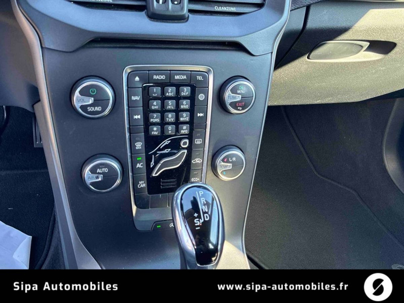 2 porte-cintres aux places AR / 4 freins à disque 16,5" ventilés à l'AV / Accoudoir central AR rabattable avec 2 porte-gobelets / Airbag piéton : actif de 20 à 50 km/h / Airbags conducteur et passager à déclenchement différencié / Appuie-tête sur chaque siège, dont 3 réglables en hauteur (AV et central AR) / Banquette AR rabattable en deux parties 60/40 / Boîte à gants avec espace de rangement pour stylo et carte bancaire / Bouton de verrouillage centralisé avec diode de contrôle pour le conducteur / Buses de lave-glaces chauffantes / Cache-bagages rigide / Calandre et montants latéraux Noir Laqué / Ceintures de sécuritéà inertie à 3 points d'ancrage (sur les 5 sièges) / Châssis Confort abaissé de 10 mm / Chauffage électrique additionnel pour habitacle / City Safety : système d'anticipation de collision avec freinage automatique jusqu'à 50 km/h / CleanZone : Filtre à charbon de climatisation multi-actif / Combiné d'instruments digital, personnalisable / Commandes de climatisation et du système audio cerclées de chrome / Correcteur électronique de trajectoire ESC avec système de vectorisation du couple moteur CTC / Déclenchement automatique des feux de detresse lors d'un freinage d'urgence / Détection de non bouclage de ceinture de sécurité pour les sièges AR / Direction assistée électrique asservie à la vitesse avec volant réglable en hauteur et en profondeur / Eclairage d'accompagnement et éclairage d'approche / Eclairage d'ambiance à LED à l'AV, intensité réglable et couleur personnalisable / Espace de rangement dans les portes AV / Espace de rangement situé derrière la console centrale / Espaces de rangement entre les sièges AV incluant 2 porte-gobelets / Fonction Eco+ : optimisation des paramètres véhicule pour une conduite économique et écologique (à la demande) / Fonction Stop&Start : coupe et redémarre automatiquement le moteur lorsque la voiture est à l'arrêt / Incrustations Gris Ardoise / Indicateur de perte de pression des pneus avec localisation / Jantes alliage MARKEB 16" Diamant / Noir Laqué 205/55 R16 / Kit anticrevaison / Launch Control : permet un départ rapide lors d'une accélération franche en optimisant l'adhérence / Matériaux anti-allergènes dans l'habitacle / Miroirs de courtoisie éclairés, spots de lecture à l'AV, éclairage aux pieds à l'AV, derrière la console centrale, dans la boîte à gants et dans le coffre, éclairage intérieur temporisé / Pack Eclairage / Pare-brise en verre feuilleté et colonne de direction rétractable en cas de choc / Peinture extérieure à base d'eau (réduction de solvants polluants) / Phares LED avec correcteur dynamique de la portée et feux de jour / Porte ticket de parking et d'autoroute / Pré-câblage électrique pour le crochet d'attelage / Préparation pour le système de fixation Isofix (sièges latéraux de la banquette AR) / Prise 12 V dans le tunnel central AV / Radar de stationnement AR avec signal sonore et visuel / Rappel d'oubli de bouclage de ceinture de sécurité AV / Réglage automatique des ceintures AV en hauteur / Rétroviseur intérieur électrochrome sans contour / Rétroviseurs extérieurs couleur carrosserie / Rétroviseurs extérieurs dégivrants à réglages électriques avec rappels de clignotant intégrés / Rétroviseurs extérieurs rabattables électriquement avec éclairage du sol et rappels de clignotant àà LED / Rideaux gonflables de sécurité IC / Sellerie Tissu / T-Tec / Sensus Navigation / Seuils de portes AV badgés "Volvo" / Siège conducteur avec réglages manuels de la hauteur de l'assise, de l'inclinaison du dossier, de l'inclinaison de l'assise et des supports lombaires / Siège passager avec réglage manuel de l'inclinaison du dossier, de la hauteur de l'assise et des supports lombaires / Simple sortie d'échappement non visible / Sonde de température extérieure et horloge dans le combiné d'instruments / Spoiler AR standard / Structure de l'habitacle renforcée à l'acier de Bore / Système anti-sous-marinage sur chaque siège / Système audio Volvo High Performance avec Sensus Connect / Système de protection en cas de retournement (ROPS), ensemble d'équipements sécuritaires comprenant Rideaux gonfables de sécurité IC, Ceintures AV et AR actives à prétensionneurs, Structure de l'habitacle renforcée à l'acier de Bore / Système de récupération d'énergie au freinage / Système de réglage en hauteur des phares / Système intelligent d'informations au conducteur IDIS / Tapis de sol textile AV et AR / Télécommande de verrouillage centralisé avec clé contact integrée, fermeture automatique des vitres, fonction panique (déclenchement du klaxon et des feux de détresse) et gestion à distance de l'éclairage d'approche et d'accompagnement / Trappe à carburant intelligente sans bouchon / Trousse de premiers secours et triangle de présignalisation / Utilisation de matériaux recyclables à 85 % / Verrouillage automatique des portes à partir de 7 km/h / Verrouillage manuel de sécurité enfants / Vitres AV et AR électriques à impulsion (montée et descente) avec système anti-pincement / Volant 3 branches gainé de Cuir avec insert en Aluminium / Volant 3 branches, pommeau de levier de vitesses et levier de frein à main gainés de Cuir