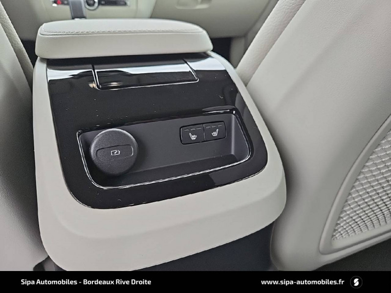 2 prises USB type-C / 4 points d'ancrage dans les panneaux latéraux du compartiment à bagages / Accès au service d'assistance Volvo via bouton dédié dans le plafonnier / Accès au service d'urgence Volvo via bouton SOS dans le plafonnier / Accoudoir central AV avec espace de rangement et accoudoir AR avec porte-gobelets / Airbag conducteur et passager à déclenchement différencié / Airbag passager désactivable avec témoin d'indication (on/off) / Alerte automatique au service d´urgence Volvo, en cas de collision / Alerte Distraction Trafic (Ready To Drive Notification (ADAS)) / Alerte vigilance conducteur (Driver Alert Control) Informe le conducteur lorsque le système remarque qu'il est nécessaire de porter plus d'attention sur le trafic ou que la conduite semble anormale. Si le conducteur ne réagit pas, alors le véhicule pourra effectuer un arrêt de sécurité / Application Volvo Cars / Assise des sièges AV extensible (électriquement si le siège dispose des réglages électriques) / Assise et dossier des sièges en Cuir / Bouclier AV et diffuseur AR spécifique style Dark / Câble de recharge de 4,5 mètres avec LED d'indication de charge / Calandre avec incrustations peintes en Noir haute brillance avec maillage horizontal. Tour de calandre Noir Laqué / Ceintures de sécuritéà inertie à 3 points d'ancrage (sur les 5 sièges) / Châssis dynamique / City Safety (ou Safety Assistance), système d'anticipation de collision intelligent / Climatisation automatique bi-zones, inclus un système de recirculation de l'air et un filtre à pollen / Combiné d'instruments digital 12,3" personnalisable / Commande vocale avancée (climatisation, médias, téléphone, eManuel utilisateur et navigation) / Contour des vitres latérales Noir Laqué / Contrôle de la transmission en descente HDC / Coques de rétroviseurs Noir Laqué / Déclenchement automatique des feux de detresse lors d'un freinage d'urgence / Direction assistée électrique réglable / Double sortie d'échappement dissimulée / Eclairage d'approche et d'accompagnement / Eclairage et spots de lecture à l'AV, éclairage dans la boîte à gants et le coffre / Ecran central tactile multimédia haute résolution 9", personnalisable / Emblème Volvo chauffant sur calandre AV / Filet de protection coffre/habitacle / Fonction Stop&Start : coupe et redémarre automatiquement le moteur lorsque la voiture est à l'arrêt / Freinage automatique post-collision (réduction du risque de suraccident) / Freins à disques 17" ventilés à l'AR / Freins à disques 18" ventilés à l'AV / Incrustations Aluminium Maillé / Indicateur de perte de pression des pneus / Infotainment Google Android (avec un volume de données illimité pour le première année) / Inserts Noir Laqué sur le bouclier AV et AR / Jantes alliage 18" 5 branches double Noir/Diamant / Kit anticrevaison / Miroirs de courtoisie éclairés, spots de lecture à l'AV et à l'AR, éclairage aux pieds à l'AV, dans la boîte à gants, le tunnel central et le coffre, éclairage intérieur temporisé / Mise à jour du système à distance / Mode de conduite personnalisable / One Pedal Drive ou Conduite à une pédale Fonction permettant au conducteur de contrôler à la fois l'accélération et la décélération avec la seule pédale d'accélérateur / Ouverture des portes sans clé Keyless Entry incluant éclairage du sol dans les poignées de porte AV et ouverture Confort du hayon électrique (sans les mains) / Pack éclairage / Pare-brise en verre feuilleté et colonne de direction rétractable en cas de choc / Pavillon de toit Beige / Pédalier Standard / Phares LED avec correcteur dynamique de la portée et feux de jour design marteau de Thor / Plancher du coffre rabattable avec crochets pour sacs / Pommeau de levier de vitesses gainé Simili-Cuir / Port de recharge sur l'aile AV gauche / Porte-ticket de parking et d'autoroute / Pré-câblage électrique pour le crochet d'attelage / Préparation pour fixations Isofix (places latérales de la deuxième rangée de sièges) / Préparation pour l'installation d'un éthylomètre antidémarrage / Prise 12 V dans le coffre / Purificater d'air (CleanZone Advanced) / Radars de stationnement AV et AR avec signal sonore et visuel / Rails de toit Noir laqué / Rappel d'oubli de bouclage de ceinture de sécurité AV et AR / Rétroviseurs intérieur sans contour et extérieurs électrochromes / Sécurité connectée: Alerte Feux de détresse et Chaussée glissante (nécessite une connexion Internet) / Sellerie Cuir avec Sièges confort / Seuil de coffre en Aluminium / Seuils de portes en Aluminium à l'AV badgés Volvo / Siège conducteur à réglages électriques avec mémoire / Siège passager à réglages électriques / Siège passager avec fonction mémoire / Sonde de température extérieure et horloge / Structure de l'habitacle renforcée à l'acier / Subwoofer / Supports lombaires des sièges AV réglables électriquement (4 positions) / Système audio Volvo High Performance / Système d'adaptation intelligente de la vitesse (ou Intelligent Speed Assist ISA) / Système de contrôle de la stabilité et de la traction STC / Système de contrôle du freinage du véhicule VDC / Système de préconditionnement de l'habitacle (chauffage et climatisation) / Système de protection anti-sortie de route / Système de protection en cas de sortie de route : Ceintures de sécurité actives à prétensionneurs, Assise des sièges AV à absorption d'énergie, Pédale de frein rétractable en cas de collision frontale / Système de récupération d'énergie au freinage / Système de réglage en hauteur des phares / Système intelligent d'informations au conducteur IDIS / Tapis de sol textile AV et AR / Télécommande de verrouillage centralisé avec clé de contact intégrée, fermeture à distance des vitres et du toit ouvrant et fonction panique (déclenchement du klaxon et des feux de détresse) / Transmission intégrale AWD à 4 roues