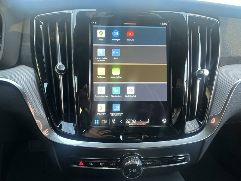 2 prises USB type-C / 4 points d'ancrage dans les panneaux latéraux du compartiment à bagages / Accès au service d'assistance Volvo via bouton dédié dans le plafonnier / Accès au service d'urgence Volvo via bouton SOS dans le plafonnier / Accoudoir central AV avec espace de rangement et accoudoir AR avec porte-gobelets / Airbag conducteur et passager à déclenchement différencié / Airbag passager désactivable avec témoin d'indication (on/off) / Alerte automatique au service d´urgence Volvo, en cas de collision / Alerte Distraction Trafic (Ready To Drive Notification (ADAS)) / Alerte vigilance conducteur (Driver Alert Control) Informe le conducteur lorsque le système remarque qu'il est nécessaire de porter plus d'attention sur le trafic ou que la conduite semble anormale. Si le conducteur ne réagit pas, alors le véhicule pourra effectuer un arrêt de sécurité / Application Volvo Cars / Assise des sièges AV extensible (électriquement si le siège dispose des réglages électriques) / Assise et dossier des sièges en Cuir / Bouclier AV et diffuseur AR spécifique style Dark / Câble de recharge de 4,5 mètres avec LED d'indication de charge / Calandre avec incrustations peintes en Noir haute brillance avec maillage horizontal. Tour de calandre Noir Laqué / Ceintures de sécuritéà inertie à 3 points d'ancrage (sur les 5 sièges) / Châssis dynamique / City Safety (ou Safety Assistance), système d'anticipation de collision intelligent / Climatisation automatique bi-zones, inclus un système de recirculation de l'air et un filtre à pollen / Combiné d'instruments digital 12,3" personnalisable / Commande vocale avancée (climatisation, médias, téléphone, eManuel utilisateur et navigation) / Contour des vitres latérales Noir Laqué / Contrôle de la transmission en descente HDC / Coques de rétroviseurs Noir Laqué / Déclenchement automatique des feux de detresse lors d'un freinage d'urgence / Direction assistée électrique réglable / Double sortie d'échappement dissimulée / Eclairage d'approche et d'accompagnement / Eclairage et spots de lecture à l'AV, éclairage dans la boîte à gants et le coffre / Ecran central tactile multimédia haute résolution 9", personnalisable / Emblème Volvo chauffant sur calandre AV / Filet de protection coffre/habitacle / Fonction Stop&Start : coupe et redémarre automatiquement le moteur lorsque la voiture est à l'arrêt / Freinage automatique post-collision (réduction du risque de suraccident) / Freins à disques 17" ventilés à l'AR / Freins à disques 18" ventilés à l'AV / Incrustations Aluminium Maillé / Indicateur de perte de pression des pneus / Infotainment Google Android (avec un volume de données illimité pour le première année) / Inserts Noir Laqué sur le bouclier AV et AR / Jantes alliage 18" 5 branches double Noir/Diamant / Kit anticrevaison / Miroirs de courtoisie éclairés, spots de lecture à l'AV et à l'AR, éclairage aux pieds à l'AV, dans la boîte à gants, le tunnel central et le coffre, éclairage intérieur temporisé / Mise à jour du système à distance / Mode de conduite personnalisable / One Pedal Drive ou Conduite à une pédale Fonction permettant au conducteur de contrôler à la fois l'accélération et la décélération avec la seule pédale d'accélérateur / Ouverture des portes sans clé Keyless Entry incluant éclairage du sol dans les poignées de porte AV et ouverture Confort du hayon électrique (sans les mains) / Pack éclairage / Pare-brise en verre feuilleté et colonne de direction rétractable en cas de choc / Pavillon de toit Beige / Pédalier Standard / Phares LED avec correcteur dynamique de la portée et feux de jour design marteau de Thor / Plancher du coffre rabattable avec crochets pour sacs / Pommeau de levier de vitesses gainé Simili-Cuir / Port de recharge sur l'aile AV gauche / Porte-ticket de parking et d'autoroute / Pré-câblage électrique pour le crochet d'attelage / Préparation pour fixations Isofix (places latérales de la deuxième rangée de sièges) / Préparation pour l'installation d'un éthylomètre antidémarrage / Prise 12 V dans le coffre / Purificater d'air (CleanZone Advanced) / Radars de stationnement AV et AR avec signal sonore et visuel / Rails de toit Noir laqué / Rappel d'oubli de bouclage de ceinture de sécurité AV et AR / Rétroviseurs intérieur sans contour et extérieurs électrochromes / Sécurité connectée: Alerte Feux de détresse et Chaussée glissante (nécessite une connexion Internet) / Sellerie Cuir avec Sièges confort / Seuil de coffre en Aluminium / Seuils de portes en Aluminium à l'AV badgés Volvo / Siège conducteur à réglages électriques avec mémoire / Siège passager à réglages électriques / Siège passager avec fonction mémoire / Sonde de température extérieure et horloge / Structure de l'habitacle renforcée à l'acier / Subwoofer / Supports lombaires des sièges AV réglables électriquement (4 positions) / Système audio Volvo High Performance / Système d'adaptation intelligente de la vitesse (ou Intelligent Speed Assist ISA) / Système de contrôle de la stabilité et de la traction STC / Système de contrôle du freinage du véhicule VDC / Système de préconditionnement de l'habitacle (chauffage et climatisation) / Système de protection anti-sortie de route / Système de protection en cas de sortie de route : Ceintures de sécurité actives à prétensionneurs, Assise des sièges AV à absorption d'énergie, Pédale de frein rétractable en cas de collision frontale / Système de récupération d'énergie au freinage / Système de réglage en hauteur des phares / Système intelligent d'informations au conducteur IDIS / Tapis de sol textile AV et AR / Télécommande de verrouillage centralisé avec clé de contact intégrée, fermeture à distance des vitres et du toit ouvrant et fonction panique (déclenchement du klaxon et des feux de détresse) / Transmission intégrale AWD à 4 roues