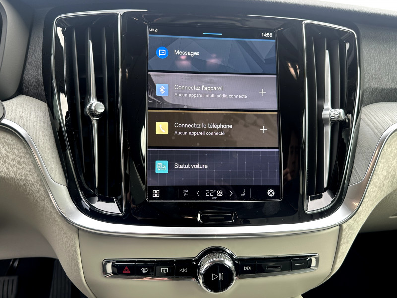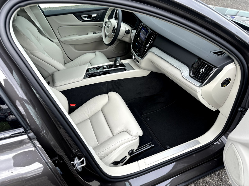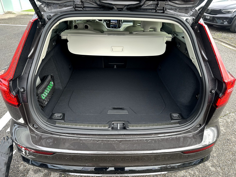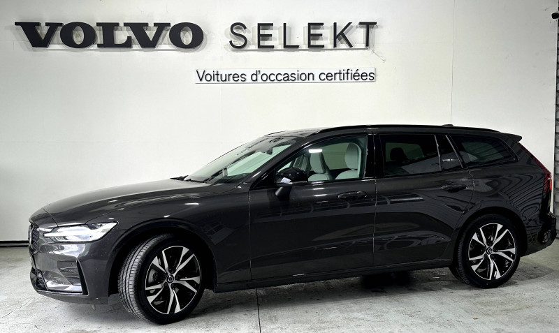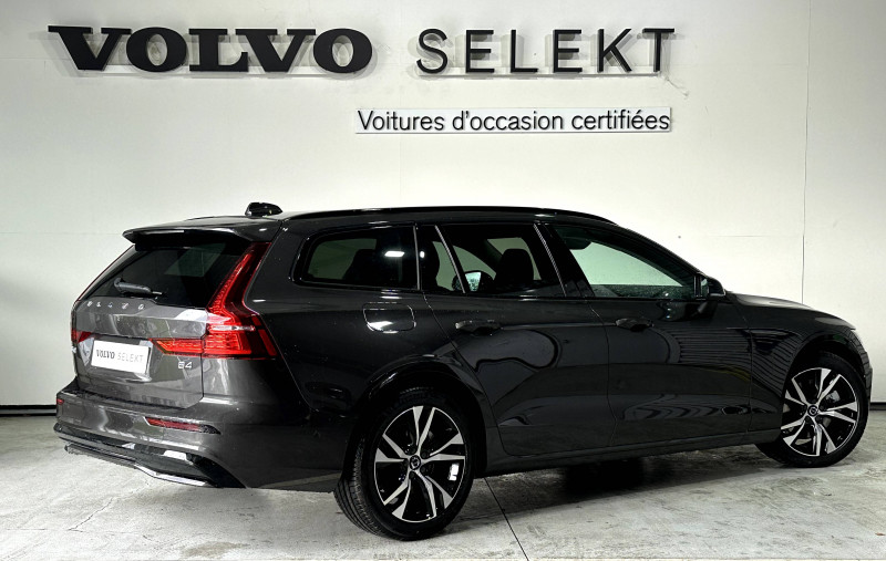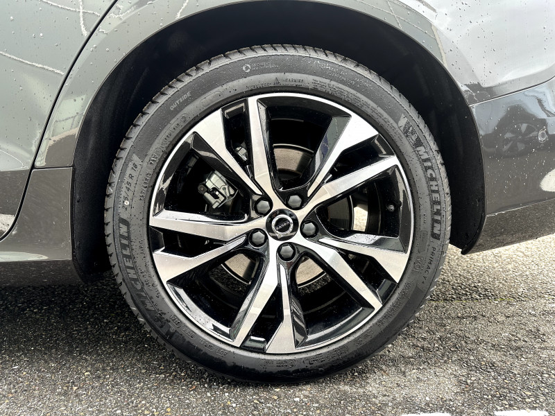 Alerte automatique au service d´urgence Volvo, en cas de collision / Assise et dossier des sièges en Cuir / Climatisation automatique bi-zones, inclus un système de recirculation de l'air et un filtre à pollen / Commande vocale avancée (climatisation, médias, téléphone, eManuel utilisateur et navigation) / Déclenchement automatique des feux de detresse lors d'un freinage d'urgence / Fonction Stop&Start : coupe et redémarre automatiquement le moteur lorsque la voiture est à l'arrêt / Freinage automatique post-collision (réduction du risque de suraccident) / Incrustations Aluminium Maillé / Jantes alliage 18'' 5 branches Noir / Diamant, 235/45 R18 / Pack éclairage / Phares LED avec correcteur dynamique de la portée et feux de jour design marteau de Thor / Pommeau de levier de vitesses gainé Simili-Cuir / Pré-câblage électrique pour le crochet d'attelage / Radars de stationnement AV et AR avec signal sonore et visuel / Seuil de coffre en Aluminium / Seuils de portes en Aluminium à l'AV badgés Volvo / Télécommande de verrouillage centralisé avec clé de contact intégrée, fermeture à distance des vitres et du toit ouvrant et fonction panique (déclenchement du klaxon et des feux de détresse) / Verrouillage automatique des portes à partir de 7 km/h / Verrouillage de sécurité enfant automatique commandé depuis le siège conducteur (condamne aussi les fenêtres AR) / Volant 3 branches gainé de Simili-Cuir / 2 prises USB type-C / 4 points d'ancrage dans les panneaux latéraux du compartiment à bagages / Accoudoir central AV avec espace de rangement et accoudoir AR avec porte-gobelets / Accès au service d'assistance Volvo via bouton dédié dans le plafonnier / Accès au service d'urgence Volvo via bouton SOS dans le plafonnier / Airbag conducteur et passager à déclenchement différencié / Airbag passager désactivable avec témoin d'indication (on/off) / Alerte Distraction Trafic (Ready To Drive Notification (ADAS)) / Alerte vigilance conducteur (Driver Alert Control) Informe le conducteur lorsque le système remarque qu'il est nécessaire de porter plus d'attention sur le trafic ou que la conduite semble anormale. Si le conducteur ne réagit pas, alors le véhicule pourra effectuer un arrêt de sécurité / Application Volvo Cars / Assise des sièges AV extensible (électriquement si le siège dispose des réglages électriques) / Bouclier AV et diffuseur AR spécifique style Dark / Calandre avec incrustations peintes en Noir haute brillance avec maillage horizontal. Tour de calandre Noir Laqué / Ceintures de sécuritéà inertie à 3 points d'ancrage (sur les 5 sièges) / Châssis dynamique / City Safety (ou Safety Assistance), système d'anticipation de collision intelligent / Combiné d'instruments digital 12,3" personnalisable / Contour des vitres latérales Noir Laqué / Contrôle de la transmission en descente HDC / Coques de rétroviseurs Noir Laqué / Direction assistée électrique réglable / Double sortie d'échappement dissimulée / Eclairage d'approche et d'accompagnement / Eclairage et spots de lecture à l'AV, éclairage dans la boîte à gants et le coffre / Ecran central tactile multimédia haute résolution 9", personnalisable / Emblème Volvo chauffant sur calandre AV / Filet de protection coffre/habitacle / Freins à disques 16" ventilés à l'AR / Freins à disques 17" ventilés à l'AV / Indicateur de perte de pression des pneus / Infotainment Google Android (avec un volume de données illimité pour le première année) / Inserts Noir Laqué sur le bouclier AV et AR / Kit anticrevaison / Miroirs de courtoisie éclairés, spots de lecture à l'AV et à l'AR, éclairage aux pieds à l'AV, dans la boîte à gants, le tunnel central et le coffre, éclairage intérieur temporisé / Mise à jour du système à distance / Mode de conduite personnalisable / Ouverture des portes sans clé Keyless Entry incluant éclairage du sol dans les poignées de porte AV et ouverture Confort du hayon électrique (sans les mains) / Pare-brise en verre feuilleté et colonne de direction rétractable en cas de choc / Pavillon de toit Beige / Plancher du coffre rabattable avec crochets pour sacs / Porte-ticket de parking et d'autoroute / Prise 12 V dans le coffre / Préparation pour fixations Isofix (places latérales de la deuxième rangée de sièges) / Préparation pour l'installation d'un éthylomètre antidémarrage / Purificater d'air (CleanZone Advanced) / Pédalier Standard / Rails de toit Noir laqué / Rappel d'oubli de bouclage de ceinture de sécurité AV et AR / Rétroviseurs intérieur sans contour et extérieurs électrochromes / Siège conducteur à réglages électriques avec mémoire / Siège passager avec fonction mémoire / Siège passager à réglages électriques / Sonde de température extérieure et horloge / Structure de l'habitacle renforcée à l'acier / Supports lombaires des sièges AV réglables électriquement (4 positions) / Système audio Volvo High Performance / Système d'adaptation intelligente de la vitesse (ou Intelligent Speed Assist ISA) / Système de contrôle de la stabilité et de la traction STC / Système de contrôle du freinage du véhicule VDC / Système de protection anti-sortie de route / Système de protection en cas de sortie de route : Ceintures de sécurité actives à prétensionneurs, Assise des sièges AV à absorption d'énergie, Pédale de frein rétractable en cas de collision frontale / Système de récupération d'énergie au freinage / Système de réglage en hauteur des phares / Système intelligent d'informations au conducteur IDIS / Sécurité connectée: Alerte Feux de détresse et Chaussée glissante (nécessite une connexion Internet) / Tapis de sol textile AV et AR / Trappe à carburant intelligente sans bouchon / Trappe à skis / Trousse de premiers secours et triangle de présignalisation / Vitres AV et AR électriques à impulsion (montée et descente) avec système anti-pincement