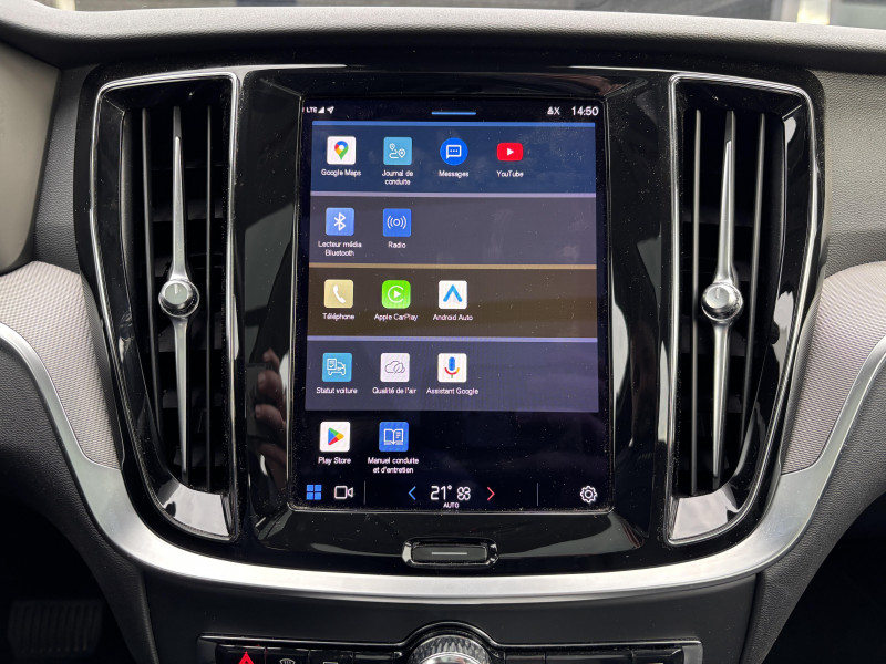 Alerte automatique au service d´urgence Volvo, en cas de collision / Assise et dossier des sièges en Cuir / Climatisation automatique bi-zones, inclus un système de recirculation de l'air et un filtre à pollen / Commande vocale avancée (climatisation, médias, téléphone, eManuel utilisateur et navigation) / Déclenchement automatique des feux de detresse lors d'un freinage d'urgence / Fonction Stop&Start : coupe et redémarre automatiquement le moteur lorsque la voiture est à l'arrêt / Freinage automatique post-collision (réduction du risque de suraccident) / Incrustations Aluminium Maillé / Jantes alliage 18?? 5 branches Noir / Diamant, 235/45 R18 / Phares LED avec correcteur dynamique de la portée et feux de jour design marteau de Thor / Pommeau de levier de vitesses gainé Simili-Cuir / Pré-câblage électrique pour le crochet d'attelage / Radars de stationnement AV et AR avec signal sonore et visuel / Sellerie Cuir avec Sièges confort / Seuil de coffre en Aluminium / Seuils de portes en Aluminium à l'AV badgés Volvo / Télécommande de verrouillage centralisé avec clé de contact intégrée, fermeture à distance des vitres et du toit ouvrant et fonction panique (déclenchement du klaxon et des feux de détresse) / Verrouillage automatique des portes à partir de 7 km/h / Verrouillage de sécurité enfant automatique commandé depuis le siège conducteur (condamne aussi les fenêtres AR) / Volant 3 branches gainé de Simili-Cuir / 2 prises USB type-C / 4 points d'ancrage dans les panneaux latéraux du compartiment à bagages / Accoudoir central AV avec espace de rangement et accoudoir AR avec porte-gobelets / Accès au service d'assistance Volvo via bouton dédié dans le plafonnier / Accès au service d'urgence Volvo via bouton SOS dans le plafonnier / Airbag conducteur et passager à déclenchement différencié / Airbag passager désactivable avec témoin d'indication (on/off) / Alerte Distraction Trafic (Ready To Drive Notification (ADAS)) / Alerte vigilance conducteur (Driver Alert Control) Informe le conducteur lorsque le système remarque qu'il est nécessaire de porter plus d'attention sur le trafic ou que la conduite semble anormale. Si le conducteur ne réagit pas, alors le véhicule pourra effectuer un arrêt de sécurité / Application Volvo Cars / Assise des sièges AV extensible (électriquement si le siège dispose des réglages électriques) / Calandre avec incrustations peintes en Noir haute brillance avec maillage horizontal. Tour de calandre Noir Laqué / Ceintures de sécuritéà inertie à 3 points d'ancrage (sur les 5 sièges) / Châssis dynamique / City Safety (ou Safety Assistance), système d'anticipation de collision intelligent / Combiné d'instruments digital 12,3" personnalisable / Contour des vitres latérales Noir Laqué / Contrôle de la transmission en descente HDC / Coques de rétroviseurs Noir Laqué / Direction assistée électrique réglable / Double sortie d?échappement dissimulée / Eclairage d'approche et d'accompagnement / Eclairage et spots de lecture à l?AV, éclairage dans la boîte à gants et le coffre / Ecran central tactile multimédia haute résolution 9", personnalisable / Emblème Volvo chauffant sur calandre AV / Filet de protection coffre/habitacle / Freins à disques 16" ventilés à l'AR / Freins à disques 17" ventilés à l'AV / Indicateur de perte de pression des pneus / Infotainment Google Android (avec un volume de données illimité pour le première année) / Inserts Noir Laqué sur le bouclier AV et AR / Kit anticrevaison / Miroirs de courtoisie éclairés, spots de lecture à l'AV et à l'AR, éclairage aux pieds à l'AV, dans la boîte à gants, le tunnel central et le coffre, éclairage intérieur temporisé / Mise à jour du système à distance / Mode de conduite personnalisable / Ouverture des portes sans clé Keyless Entry incluant éclairage du sol dans les poignées de porte AV et ouverture Confort du hayon électrique (sans les mains) / Pare-brise en verre feuilleté et colonne de direction rétractable en cas de choc / Pavillon de toit Beige / Plancher du coffre rabattable avec crochets pour sacs / Porte-ticket de parking et d'autoroute / Prise 12 V dans le coffre / Préparation pour fixations Isofix (places latérales de la deuxième rangée de sièges) / Purificater d'air (CleanZone Advanced) / Pédalier Standard / Rails de toit Noir laqué / Rappel d'oubli de bouclage de ceinture de sécurité AV et AR / Rétroviseurs intérieur sans contour et extérieurs électrochromes / Siège conducteur à réglages électriques avec mémoire / Siège passager avec fonction mémoire / Siège passager à réglages électriques / Sonde de température extérieure et horloge / Structure de l'habitacle renforcée à l'acier / Supports lombaires des sièges AV réglables électriquement (4 positions) / Système audio Volvo High Performance / Système de contrôle de la stabilité et de la traction STC / Système de contrôle du freinage du véhicule VDC / Système de protection anti-sortie de route / Système de protection en cas de sortie de route : Ceintures de sécurité actives à prétensionneurs, Assise des sièges AV à absorption d'énergie, Pédale de frein rétractable en cas de collision frontale / Système de récupération d'énergie au freinage / Système de réglage en hauteur des phares / Système intelligent d'informations au conducteur IDIS / Sécurité connectée: Alerte Feux de détresse et Chaussée glissante (nécessite une connexion Internet) / Tapis de sol textile AV et AR / Trappe à carburant intelligente sans bouchon / Trappe à skis / Trousse de premiers secours et triangle de présignalisation / Vitres AV et AR électriques à impulsion (montée et descente) avec système anti-pincement