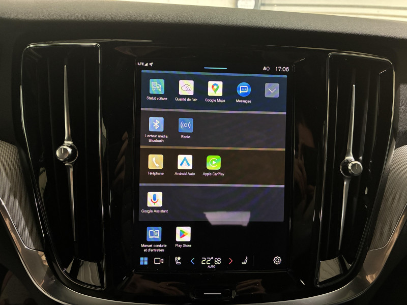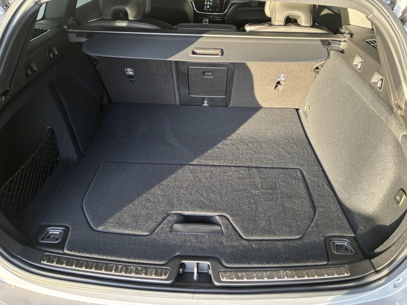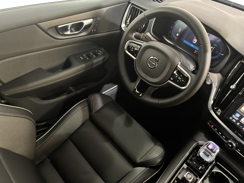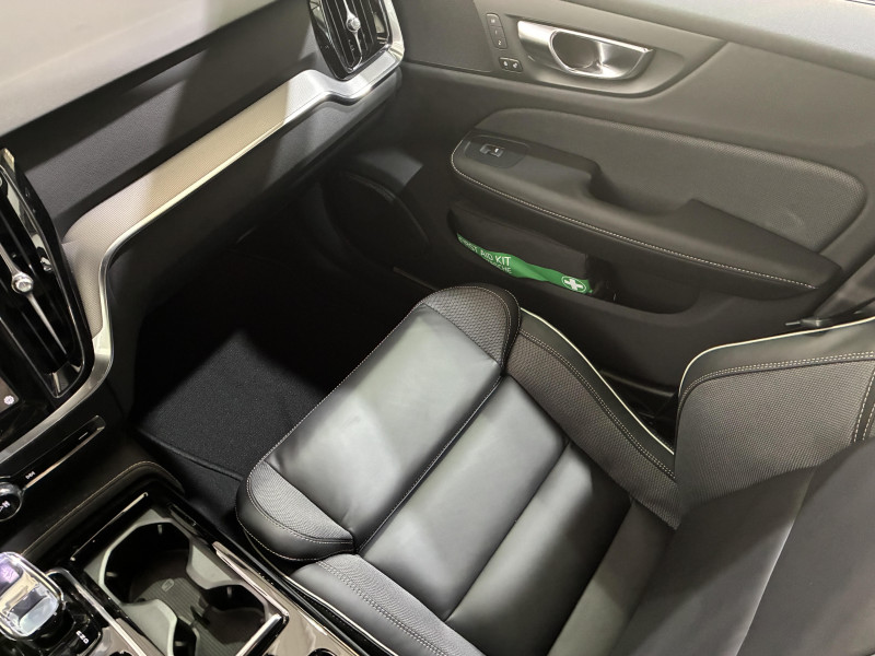 Alerte automatique au service d´urgence Volvo, en cas de collision / Assise et dossier des sièges en Cuir / Climatisation automatique bi-zones, inclus un système de recirculation de l'air et un filtre à pollen / Commande vocale avancée (climatisation, médias, téléphone, eManuel utilisateur et navigation) / Câble de recharge de 4,5 mètres avec LED d'indication de charge / Déclenchement automatique des feux de detresse lors d'un freinage d'urgence / Fonction Stop&Start : coupe et redémarre automatiquement le moteur lorsque la voiture est à l'arrêt / Freinage automatique post-collision (réduction du risque de suraccident) / Incrustations Aluminium Maillé / Jantes alliage 18" 5 branches double Noir/Diamant / Phares LED avec correcteur dynamique de la portée et feux de jour design marteau de Thor / Pommeau de levier de vitesses gainé Simili-Cuir / Pré-câblage électrique pour le crochet d'attelage / Radars de stationnement AV et AR avec signal sonore et visuel / Sellerie Cuir avec Sièges confort / Seuil de coffre en Aluminium / Seuils de portes en Aluminium à l'AV badgés Volvo / Système de préconditionnement de l?habitacle (chauffage et climatisation) / Télécommande de verrouillage centralisé avec clé de contact intégrée, fermeture à distance des vitres et du toit ouvrant et fonction panique (déclenchement du klaxon et des feux de détresse) / Verrouillage automatique des portes à partir de 7 km/h / Verrouillage de sécurité enfant automatique commandé depuis le siège conducteur (condamne aussi les fenêtres AR) / Volant 3 branches gainé de Simili-Cuir / 2 prises USB type-C / 4 points d'ancrage dans les panneaux latéraux du compartiment à bagages / Accoudoir central AV avec espace de rangement et accoudoir AR avec porte-gobelets / Accès au service d'assistance Volvo via bouton dédié dans le plafonnier / Accès au service d'urgence Volvo via bouton SOS dans le plafonnier / Airbag conducteur et passager à déclenchement différencié / Airbag passager désactivable avec témoin d'indication (on/off) / Alerte Distraction Trafic (Ready To Drive Notification (ADAS)) / Alerte vigilance conducteur (Driver Alert Control) Informe le conducteur lorsque le système remarque qu'il est nécessaire de porter plus d'attention sur le trafic ou que la conduite semble anormale. Si le conducteur ne réagit pas, alors le véhicule pourra effectuer un arrêt de sécurité / Application Volvo Cars / Assise des sièges AV extensible (électriquement si le siège dispose des réglages électriques) / Bouclier AV et diffuseur AR spécifique style Dark / Calandre avec incrustations peintes en Noir haute brillance avec maillage horizontal. Tour de calandre Noir Laqué / Ceintures de sécuritéà inertie à 3 points d'ancrage (sur les 5 sièges) / Châssis dynamique / City Safety (ou Safety Assistance), système d'anticipation de collision intelligent / Combiné d'instruments digital 12,3" personnalisable / Contour des vitres latérales Noir Laqué / Contrôle de la transmission en descente HDC / Coques de rétroviseurs Noir Laqué / Direction assistée électrique réglable / Double sortie d?échappement dissimulée / Eclairage d'approche et d'accompagnement / Eclairage et spots de lecture à l?AV, éclairage dans la boîte à gants et le coffre / Ecran central tactile multimédia haute résolution 9", personnalisable / Emblème Volvo chauffant sur calandre AV / Filet de protection coffre/habitacle / Freins à disques 17" ventilés à l'AR / Freins à disques 18" ventilés à l'AV / Indicateur de perte de pression des pneus / Infotainment Google Android (avec un volume de données illimité pour le première année) / Inserts Noir Laqué sur le bouclier AV et AR / Kit anticrevaison / Miroirs de courtoisie éclairés, spots de lecture à l'AV et à l'AR, éclairage aux pieds à l'AV, dans la boîte à gants, le tunnel central et le coffre, éclairage intérieur temporisé / Mise à jour du système à distance / Mode de conduite personnalisable / One Pedal Drive ou Conduite à une pédale Fonction permettant au conducteur de contrôler à la fois l?accélération et la décélération avec la seule pédale d?accélérateur / Ouverture des portes sans clé Keyless Entry incluant éclairage du sol dans les poignées de porte AV et ouverture Confort du hayon électrique (sans les mains) / Pare-brise en verre feuilleté et colonne de direction rétractable en cas de choc / Pavillon de toit Beige / Plancher du coffre rabattable avec crochets pour sacs / Port de recharge sur l'aile AV gauche / Porte-ticket de parking et d'autoroute / Prise 12 V dans le coffre / Préparation pour fixations Isofix (places latérales de la deuxième rangée de sièges) / Préparation pour l?installation d?un éthylomètre antidémarrage / Purificater d'air (CleanZone Advanced) / Pédalier Standard / Rails de toit Noir laqué / Rappel d'oubli de bouclage de ceinture de sécurité AV et AR / Rétroviseurs intérieur sans contour et extérieurs électrochromes / Siège conducteur à réglages électriques avec mémoire / Siège passager avec fonction mémoire / Siège passager à réglages électriques / Sonde de température extérieure et horloge / Structure de l'habitacle renforcée à l'acier / Subwoofer / Supports lombaires des sièges AV réglables électriquement (4 positions) / Système audio Volvo High Performance / Système de contrôle de la stabilité et de la traction STC / Système de contrôle du freinage du véhicule VDC / Système de protection anti-sortie de route / Système de protection en cas de sortie de route : Ceintures de sécurité actives à prétensionneurs, Assise des sièges AV à absorption d'énergie, Pédale de frein rétractable en cas de collision frontale / Système de récupération d'énergie au freinage / Système de réglage en hauteur des phares / Système d?adaptation intelligente de la vitesse (ou Intelligent Speed Assist ISA) / Système intelligent d'information