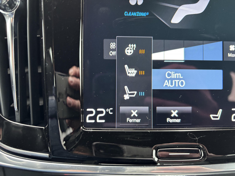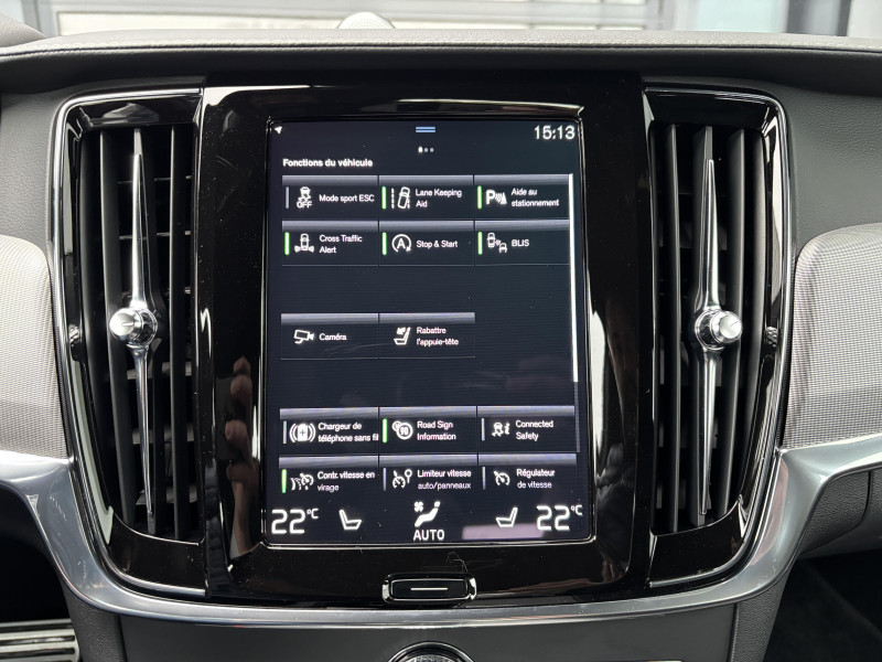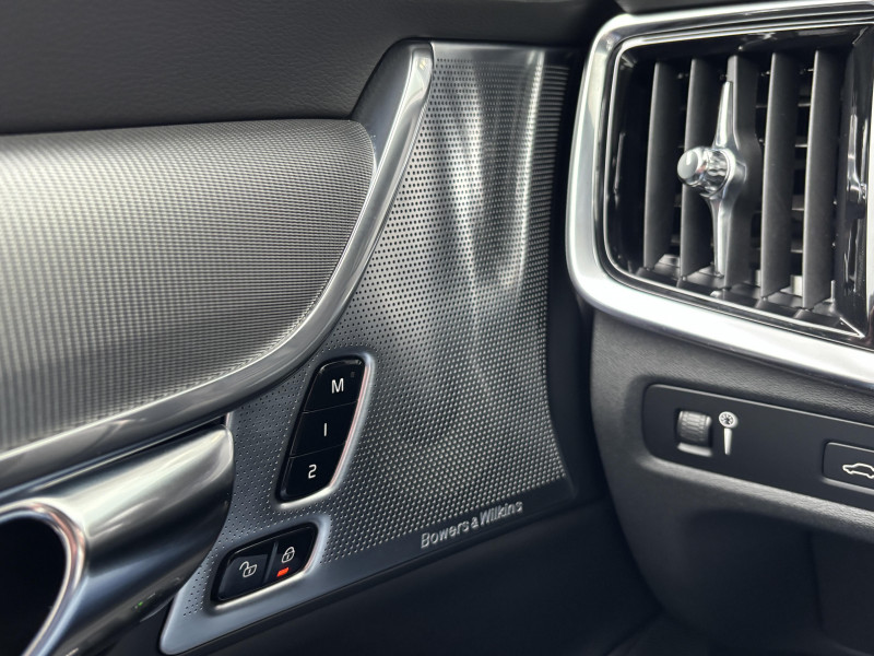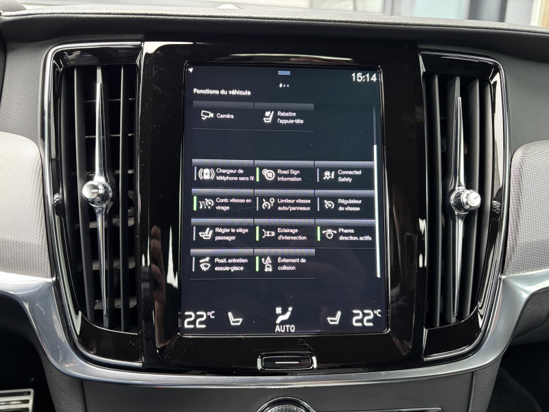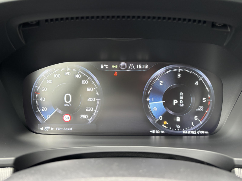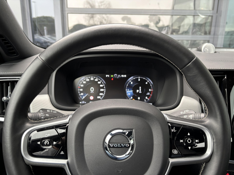 Bouton de démarrage, molette de la console centrale et commandes des ouïes d'aération en Aluminium cranté / Cache-bagages automatique / CleanZone : Filtre à charbon de climatisation multi-actif / Climatisation automatique bi-zone et aérations individuelles à l'AR / Clé gainée de Cuir / Commande vocale avancée (climatisation, médias, téléphone, eManuel utilisateur et navigation) / Déclenchement automatique des feux de detresse lors d'un freinage d'urgence / Fonction Stop&Start : coupe et redémarre automatiquement le moteur lorsque la voiture est à l'arrêt / Frein de parking électronique automatique avec fonction Auto Hold (désactivable) / Freinage automatique post-collision (réduction du risque de suraccident) / Incrustations Aluminium Maillé / Jantes alliage 18" 5 branches Noir/Diamant 245/45 R18 / Phares directionnels Full LED avec correcteur dynamique de la portée, lave-phares à haute pression escamotables, feux de route actifs et feux de jour / Phares LED avec correcteur dynamique de la portée, feux de route adaptatifs et feux de jour / Planche de bord et partie supérieure des contre-portes gainées de simili-cuir / Pommeau de levier de vitesses gainé de Cuir / Pré-câblage électrique pour le crochet d'attelage / Pédalier R-design en Aluminium / Sensus Navigation, Affichage 3D, cartographie Europe, information trafic en temps réel, Applications web dédiées, 8 ans de mises à jour cartographiques gratuites grâce au programme MapCare / Seuil de coffre en Aluminium / Seuils de portes AV et AR en Aluminium rétroéclairés et badgés Volvo à l'AV / Siège conducteur à réglages électriques avec mémoires + Rétroviseurs extérieurs avec inclinaison automatique pour marche AR / Télécommande de verrouillage centralisé avec clé de contact intégrée, fermeture à distance des vitres et du toit ouvrant et fonction panique (déclenchement du klaxon et des feux de détresse) / Verrouillage automatique des portes à partir de 7 km/h / Volant sport en Cuir avec insert Aluminium / 2 espaces de rangement avec volet coulissant entre les sièges AV, incluant 2 porte-gobelets / 4 crochets non rétractables dans les panneaux latéraux du compartiment à bagages / 4 points d'ancrage dans le compartiment à bagages / 4 porte-cintre / Accoudoir central AR rabattable comprenant 2 porte-gobelets et un espace de rangement / Airbag conducteur et passager à déclenchement différencié / Airbag passager désactivable avec témoin d'indication (on/off) / Alerte vigilance conducteur (Driver Alert Control) Informe le conducteur lorsque le système remarque qu'il est nécessaire de porter plus d'attention sur le trafic ou que la conduite semble anormale. Si le conducteur ne réagit pas, alors le véhicule pourra effectuer un arrêt de sécurité / Appuie-tête sur chaque siège, dont 1 réglable en hauteur (central AR) / Appuie-têtes deuxième rangée rabattables électriquement / Assise des sièges AV extensible (électriquement si le siège dispose des réglages électriques) / Aumônières au dos des sièges AV et sur le tunnel central côté passager / Bas de caisse, pare-chocs et rétroviseurs couleur carrosserie (pieds des rétroviseurs Noir Laqué) / Bouclier AV et diffuseur AR spécifiques avec inserts Noir Laqué / Bouton de verrouillage centralisé pour le conducteur et le passager avec diode de contrôle / Calandre concave R-design spécifique avec contour Noir Laqué / Ceintures de sécuritéà inertie à 3 points d'ancrage (sur les 5 sièges) / Châssis Sport abaissé (15 mm) / City Safety (ou Safety Assistance), système d'anticipation de collision intelligent / Combiné d'instruments digital 12,3" personnalisable / Contour des vitres latérales Noir Laqué / Coques de rétroviseurs Noir Laqué / Direction assistée électrique asservie à la vitesse / Dossier de la banquette AR rabattable 60/40 avec plancher plat / Double sortie d'échappement rectangulaire chromée intégrée / Eclairage d'approche et d'accompagnement / Ecran tactile multimédia haute résolution 9", personnalisable / Espace de rangement dans les 4 portes, pouvant accueillir une bouteille de 1L dans les portes AV / Espace de rangement verrouillable sous le plancher du compartiment à bagages lorsque le coffre est verrouillé / Filet de protection coffre/habitacle / Filet de rangement sur le tunnel de la console / Freins à disques 18" ventilés à l'AV, 17" à l'AR / Incrustations chromées autour des ouïes d'aération / Indicateur de perte de pression des pneus avec localisation / Inserts Noir Laqué sur le bouclier AV et AR / IntelliSafe Assist Régulateur adaptatif de vitesse et de distance ACC, Assistance à la conduite intelligente, Alerte distance de sécurité / Kit anticrevaison / Mode de conduite personnalisable via une molette sur la console centrale / Ouverture des portes sans clé Keyless Entry incluant éclairage du sol dans les poignées de porte AV et Keyless mini-télécommande / Pare-brise en verre feuilleté et colonne de direction rétractable en cas de choc / Pavillon de toit Anthracite / Prises de 12V AV, AR et dans le coffre / Préparation pour le système Isofix (places latérales AR) / Rails de toit Noir laqué / Rappel d'oubli de bouclage de ceinture de sécurité AV et AR / Rideaux pare-soleil pour vitres latérales AR / Réglage en hauteur manuel des ceintures AV / Réglage électrique des supports lombaires (4 positions) / Rétroviseur intérieur sans contour et extérieurs électrochromes / Sensus Connect : Applications web, affichage et lecture vocale des SMS (TTS), eManuel utilisateur et service révision connectée / Siège passager avec fonction mémoire / Siège passager à réglages électriques / Sièges conducteur et passager avec réglages électriques de la hauteur de l'assise, réglages manuels de l'inclinaison du dossier et de l'inclinaison de l'assise (conducteur) / Sonde de température extérieure et horloge / Structure de l'habitacle renforcée 