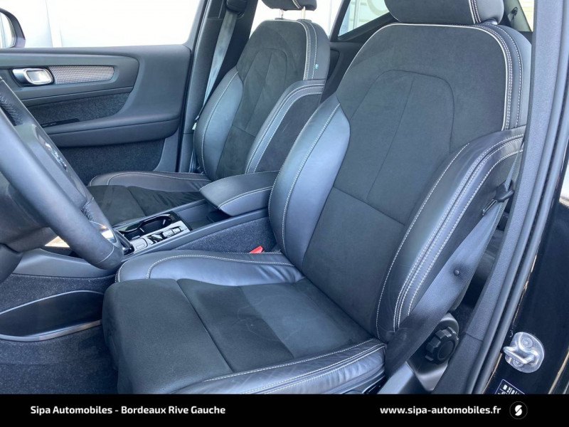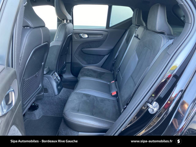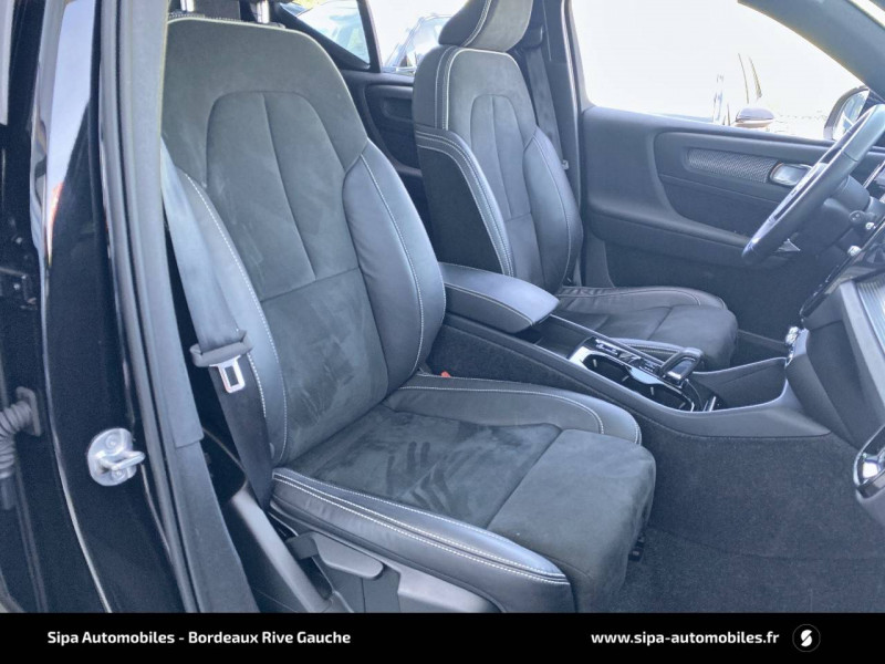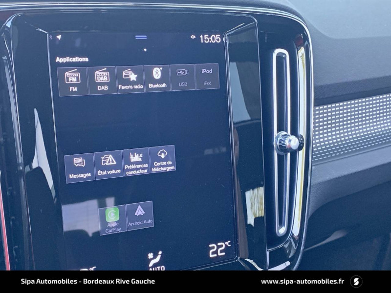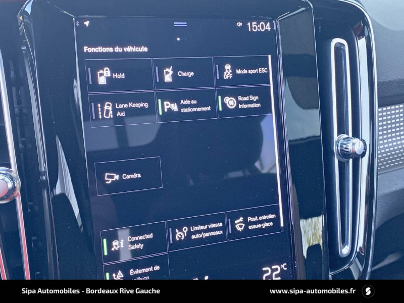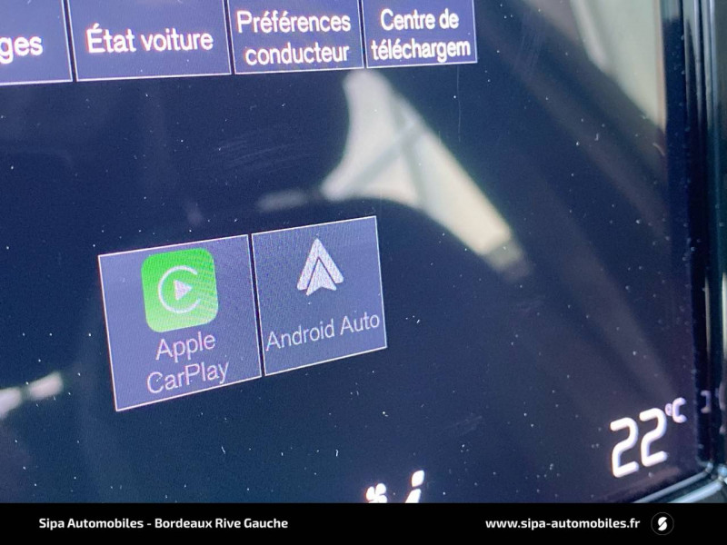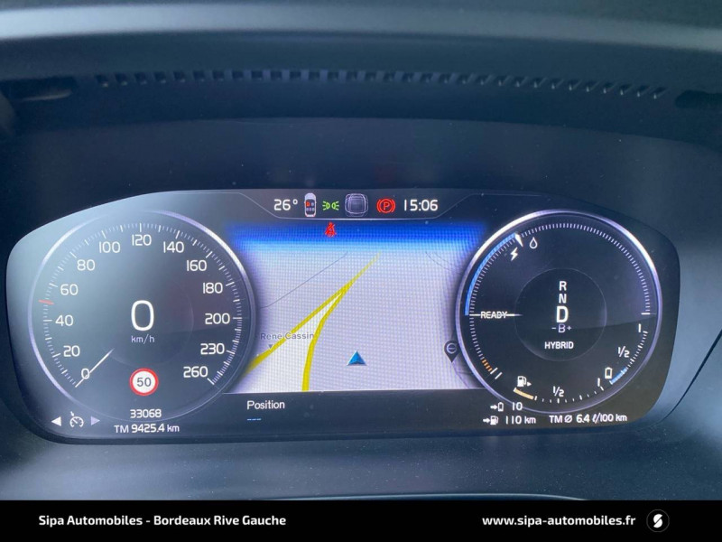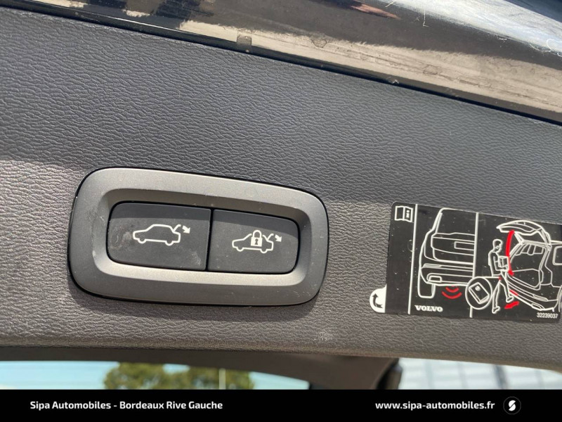 2 porte-cintres / Accès au service d'urgence Volvo via bouton SOS dans le plafonnier / Airbag passager désactivable avec témoin d'indication (on/off) / Airbags conducteur et passager à déclenchement différencié / Alerte vigilance conducteur / Application Volvo Cars avec fonction Car Sharing / Assise des sièges AV extensible manuellement / Badge T4/T5 Recharge sur le hayon / Bas de caisse et passages de roues Anthracite / Câble de recharge de 4,5 mètres / 10 A / Calandre spécifique R-design avec contour noir brillant / Ceintures de sécuritéà inertie à 3 points d'ancrage (sur les 5 sièges) / City Safety, système d'anticipation de collision intelligent / CleanZone : filtre à charbon de climatisation multi-actif et fonction pré-ventilation / Climatisation automatique bi-zone et aérations individuelles à l'AR / Combiné d'instruments digital 12,3" / Commande vocale avancée (climatisation, médias, téléphone, eManuel utilisateur et navigation) / Contrôle de la transmission en descente HDC / Coques de rétroviseurs Noir brillant / Crochet pour sacs intégréà la boîte à gants / Déclenchement automatique des feux de detresse lors d'un freinage d'urgence / Diffuseur AR R-Design Noir laqué / Direction assistée électrique asservie à la vitesse / Eclairage d'accompagnement et éclairage d'approche / Ecran tactile multimédia haute résolution 9" personnalisable / Espace de rangement sous la console centrale / Fonction climatisation de l'habitacle moteur coupé / Fonction Eco : optimisation des paramètres véhicule pour une conduite économique et écologique (à la demande) / Fonction Stop&Start : coupe et redémarre le moteur lorsque la voiture est à l'arrêt (déconnectable) / Freinage automatique post-collision (réduction du risque de suraccident) / Frein de parking électronique automatique en fonction Auto Hold (désactivable) / Gravure Recharge sur les montants AR / Incrustations Aluminium R-Design / Indicateur de perte de pression des pneus / Jantes alliage 19" 5 branches Noir / Diamant 235/50R19 / Kit anti-crevaison / Matériaux anti-allergènes dans l'habitacle (sellerie tissu, ceintures de sécurité, incrustations) / Miroirs de courtoisie éclairés, spots de lecture à l'AV et éclairage dans le coffre / Mode de conduite personnalisable / Ouverture des portes sans clé Keyless Entry Eclairage du sol dans les poignées de porte AV + Hayon électrique avec fonction Confort (sans les mains) / Pack Eclairage supérieur / Pack Navigation / Pare-brise en verre feuilleté et colonne de direction rétractable en cas de choc / Pédalier R-Design en Aluminium / Phares LED avec correcteur dynamique de la portée, feux de route adaptatifs et feux de jour design marteau de Thor / Pommeau de levier de vitesse Simili-cuir / Port de recharge sur l'aile AV gauche / Porte-cartes bancaires et cartes de services intégré dans la planche de bord / Porte-ticket de parking et d'autoroute / Pré-câblage électrique pour le crochet d'attelage / Préparation pour le système Isofix (places latérales de la 2ème rangée de sièges) / Protections de pare-chocs AV et AR Noir brillant / Radar de stationnement AR avec signal sonore et visuel / Rails de toit et parties inférieures des vitres noir brillant / Rappel d'oubli de bouclage de ceinture de sécurité AV et AR / Réglage en hauteur manuel des ceintures AV / Rétroviseurs intérieur (sans contour) et extérieurs électrochromes / Sabots de protection AV et AR Noir / Sellerie Nubuck / Cuir Nappa R-design avec surpiqûres et passepoil Beige / Sensus Connect : Applications web, affichage et lecture vocale des SMS (TTS), eManuel utilisateur et service révision connectée / Sensus Navigation, Affichage 3D, cartographie Europe, information trafic en temps réel Applications web dédiées, 8 ans de mises à jour cartographiques gratuites grâce au programme MapCare / Seuil de coffre en Aluminium / Seuils de portes AV Volvo en Aluminium / Sièges conducteur et passager avec réglage manuel de la hauteur / Sièges conducteur et passager avec réglages électriques des supports lombaires / Sièges conducteur et passager avec réglages manuels de la longueur, de l'inclinaison du dossier et de l'assise / Sonde de température extérieure et horloge / Sortie d'échappement non visible / Système audio Volvo High Performance avec technologie woofer au niveau de la console centrale : 250 W, 8 HP, radio RDS, prise 12 V et 3 ports USB / Système de contrôle de la stabilité et de la traction STC / Système de contrôle du freinage du véhicule VDC / Système de pré-conditionnement de l'habitacle (chauffage) / Système de protection anti-sortie de route / Système de protection collision frontale : Détection du risque de collision frontale (de 65 à 140 km/h) avec action corrective sur la direction / Système de protection contre le coup du lapin WHIPS (sièges AV) / Système de protection contre les chocs latéraux SIPS / Système de protection en cas de sortie de route / Système de réglage en hauteur des phares / Système intelligent d'information au conducteur IDIS / Tapis de sol textile AV/AR / Télécommande de verrouillage centralisé avec clé de contact integrée, fermeture automatique des vitres et du toit ouvrant, fonction panique (déclenchement du klaxon et des feux de détresse) / Toit contrasté noir / Trappe de carburant intelligente sans bouchon / Trousse de 1er secours et triangle de présignalisation / Tunnel de la console centrale Noir brillant / Verrouillage automatique des portes à partir de 7 km/h / Verrouillage de sécurité enfant manuel / Vitres AV et AR électriques à impulsion (montée et descente) avec système anti-pincement / Volant sport en Cuir perforé avec insert Aluminium