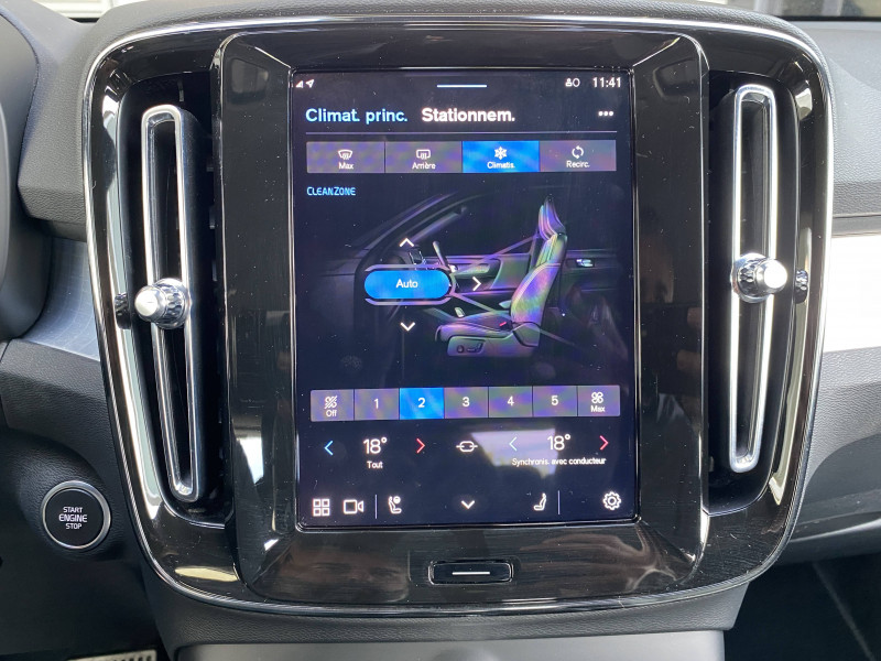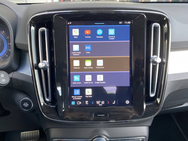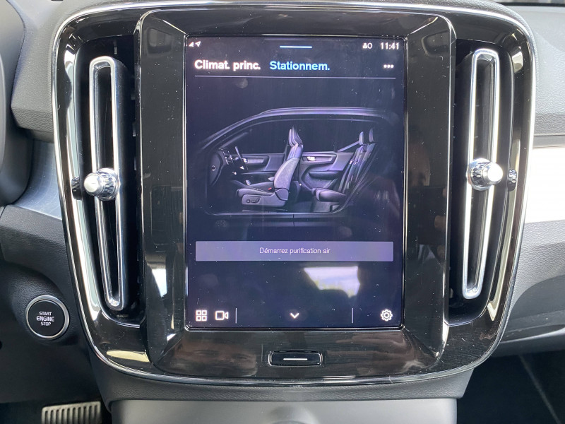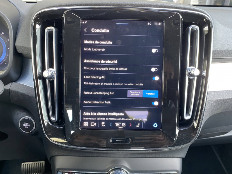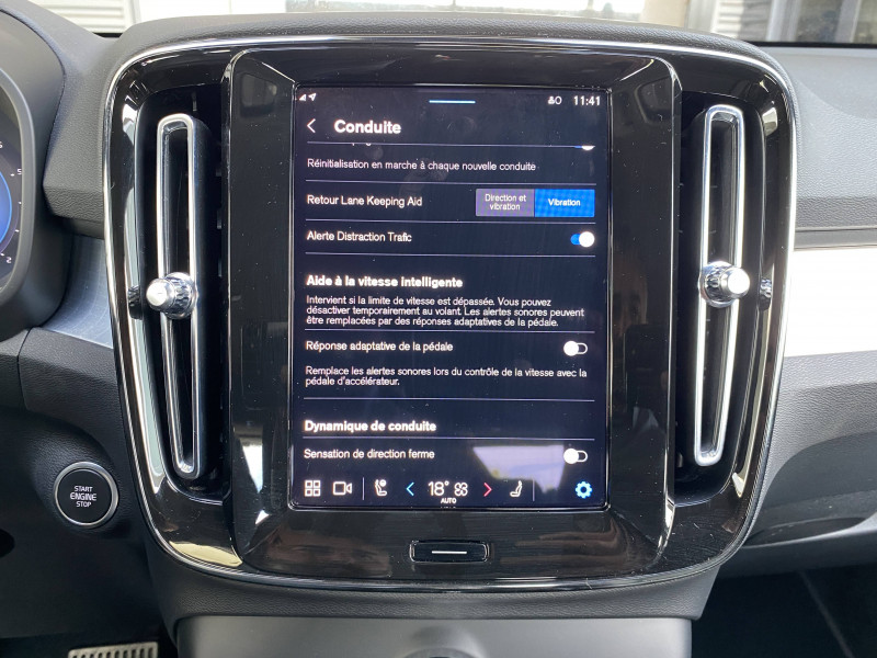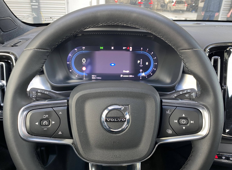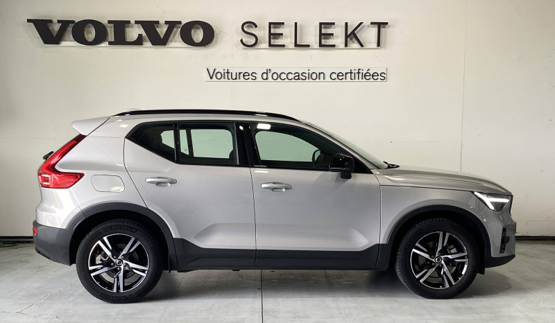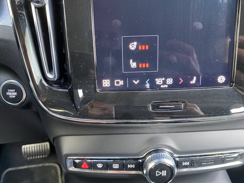 Accès au service d'assistance Volvo via bouton dédié dans le plafonnier / Accès au service d'urgence Volvo via bouton SOS dans le plafonnier / Airbag passager désactivable avec témoin d'indication (on/off) / Airbags conducteur et passager à déclenchement différencié / Alerte vigilance conducteur / Application Volvo Cars / Assise des sièges AV extensible manuellement / Assistant d'arrêt d'urgence, qui peut faire ralentir le véhicule jusqu'à l'arrêt en cas d'absence de réaction du conducteur aux signaux d'alerte / Bas de caisse et passages de roues Anthracite / Calandre avec contour et lamelles horizontales noir brillant / Ceintures de sécuritéà inertie à 3 points d'ancrage (sur les 5 sièges) / City Safety, système d'anticipation de collision intelligent : Détection des véhicules, cyclistes et piétons avec freinage automatique à pleine puissance. Détection des véhicules aux intersections avec freinage automatique à pleine puissance. Avertissement visuel et sonore paramétrable. Préparation des freins et ceintures de sécurité AV. / Climatisation automatique bi-zone (incluant ouïes d'aération à l'AR) / Combiné d'instruments digital 12,3" / Contour de la calandre chromé / Contrôle de la transmission en descente HDC / Coques de rétroviseurs noires / Déclenchement automatique des feux de detresse lors d'un freinage d'urgence / Direction assistée asservie à la vitesse / Eclairage d'accompagnement et éclairage d'approche / Eclairage d'intérieur : Spots de lecture à l'AV avec éclairage des passagers AV, éclairages dans le coffre (x2). Miroirs de courtoisie éclairés avec éclairage d'ambiance au niveau des pieds. Boîte à gants éclairée / Ecran tactile multimédia haute résolution 9" personnalisable / Envoi automatique d'une alerte au service d'urgence Volvo en cas de collision / Espace de rangement sous la console centrale / Filtre à particules sans entretien (réduction des émissions de particules) / Fonction climatisation de l'habitacle moteur coupé / Fonction Eco : optimisation des paramètres véhicule pour une conduite économique et écologique (à la demande) / Fonction Stop&Start : coupe et redémarre le moteur lorsque la voiture est à l'arrêt (déconnectable) / Freinage automatique post-collision (réduction du risque de suraccident) / Frein de parking électronique automatique en fonction Auto Hold (désactivable) / Garniture finition noir brillant de la partie inférieure des vitres latérales / Hayon électrique avec fonction Confort / Incrustations Urban Grid / Indicateur de perte de pression des pneus / Infotainment Google Android Services Google (comprend Google Maps, Google Assistant, Google Play Store et un volume de données illimité pour les 4 premières années) - Kit mains libres Bluetooth et Streaming Audio, mode d'emploi numérique du véhicule, réception de la radio numérique (DAB+), mises à jour à distance Over the Air (OTA) / Jantes alliage 18" 5 branches double Noir Mat/Diamant 235/55 R18 / Kit anti-crevaison / Matériaux anti-allergènes dans l'habitacle (sellerie tissu, ceintures de sécurité, incrustations) / Miroirs de courtoisie éclairés, spots de lecture à l'AV et éclairage dans le coffre / Ouverture des portes sans clé Keyless Entry incluant éclairage du sol dans les poignées de porte AV / Pare-brise en verre feuilleté et colonne de direction rétractable en cas de choc / Phares LED avec feux de jour design marteau de Thor et feux de route adaptatifs / Pistage du véhicule par le service en cas de vol du véhicule / Plaques décoratives AV/AR noir finition noir brillant / Porte-cartes bancaires et cartes de services intégré dans la planche de bord / Porte-ticket de parking et d'autoroute / Pré-câblage électrique pour le crochet d'attelage / Préparation pour le système Isofix (places latérales de la 2ème rangée de sièges) / Protection de pare-chocs AV et AR Noir / Radar de stationnement AR avec signal sonore et visuel / Rails de toit Noir brillant / Rappel d'oubli de bouclage de ceinture de sécurité AV et AR / Réglage en hauteur manuel des ceintures AV / Rétroviseur intérieur électrochrome sans contour / Sabots de protection AV et AR Noir / Sécurité enfant à commande électrique / Sellerie Tissu City Block/Gris / Seuils de portes AV Volvo en Aluminium / Sièges conducteur et passager avec réglage électriques des supports lombaires 4 positions / Sonde de température extérieure et horloge / Sortie d'échappement non visible / Système audio Volvo Premium Sound by Harman/Kardon 600 W avec 13 HP et technologie Subwoofer / Système de contrôle de la stabilité et de la traction STC / Système de contrôle du freinage du véhicule VDC / Système de filtration de l'air CleanZone Advanced avec indication de la qualité de l'air intérieur / Système de protection anti-sortie de route Détection du risque de sortie de route (avec ou sans marquage au sol, de 65 à 140 km/h) avec action corrective sur la direction et, si nécessaire, sur les freins / Système de protection collision frontale : Détection du risque de collision frontale (de 65 à 140 km/h) avec action corrective sur la direction / Système de protection contre le coup du lapin WHIPS (sièges AV) / Système de protection contre les chocs latéraux SIPS / Système de protection en cas de sortie de route Ceintures de sécurité actives à prétensionneurs, Assise des sièges AV à absorption d'énergie, Pédale de frein rétractable en cas de collision frontale / Système de recharge sans fil pour smartphone situé dans le compartiment de rangement AV (technologie d'induction éléctromagnétique) / Système de réglage en hauteur des phares / Système intelligent d'information au conducteur IDIS / Tapis de sol textile AV/AR / Télécommande de verrouillage centralisé avec clé de contact intégrée, fermeture à distance des vitres et du toit ouvrant et fonction panique (déclenchement du klaxon et des feux de détr