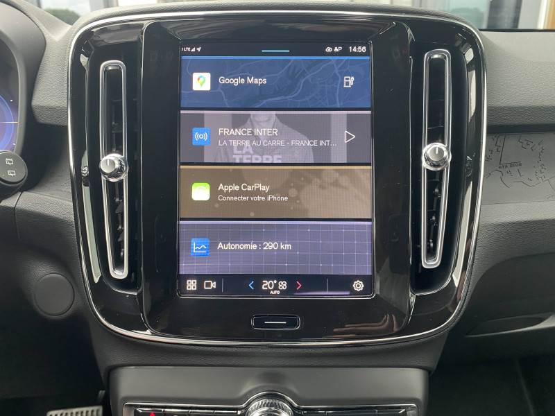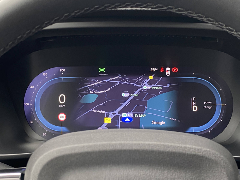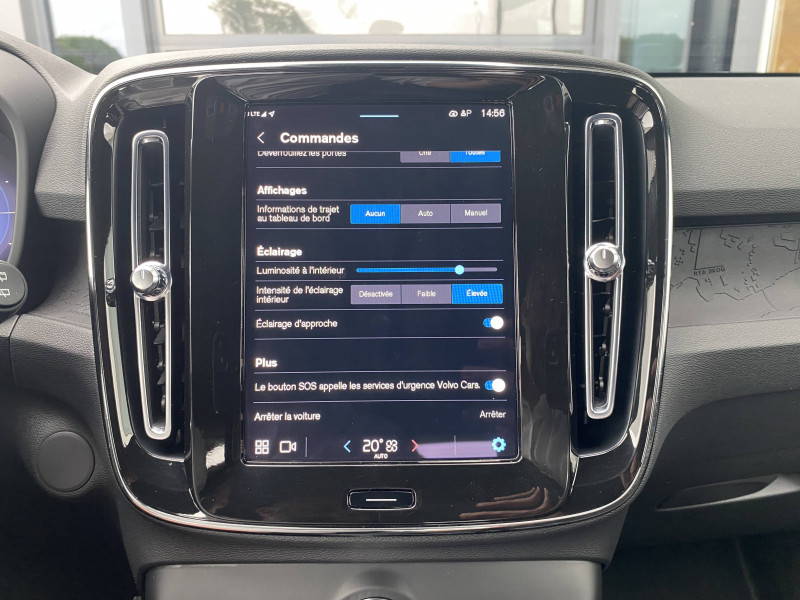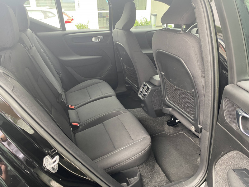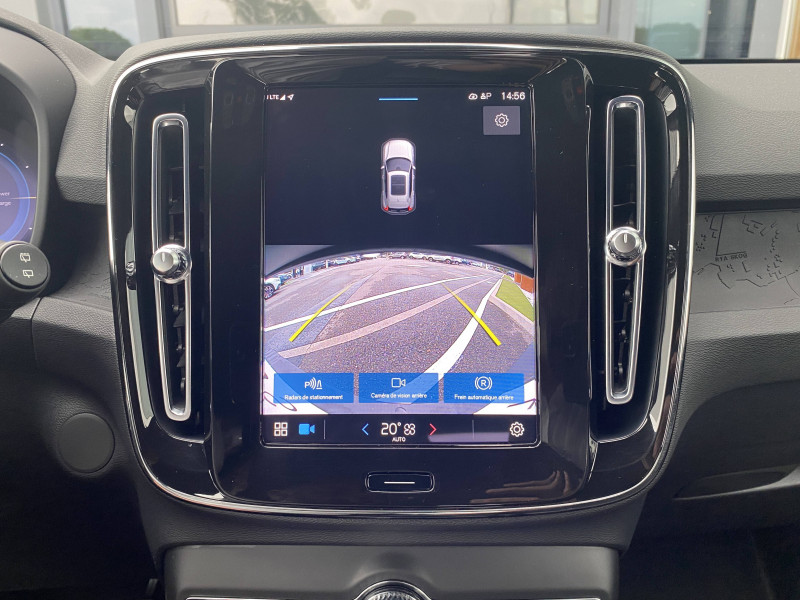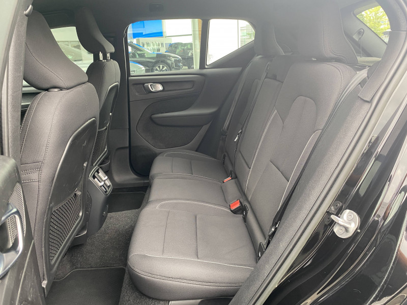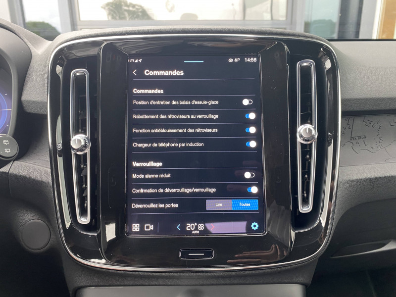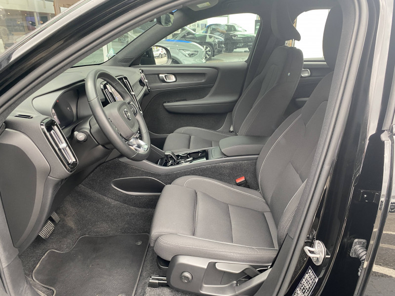 2 porte-cintres / Accès au service d'assistance Volvo via bouton dédié dans le plafonnier / Accès au service d'urgence Volvo via bouton SOS dans le plafonnier / Airbag passager désactivable avec témoin d'indication (on/off) / Airbags conducteur et passager à déclenchement différencié / Alerte vigilance conducteur / Application Volvo Cars sur smartphone iOS ou Android / Assise des sièges AV extensible manuellement / Assistance à l'évitement des piétons et des cyclistes / Badge Recharge sur le hayon / Bas de caisse et passages de roues Anthracite / Câble de recharge de 7 mètres / 10 A. Pour prise secteur / Calandre AV pleine couleur carrosserie / Ceintures de sécuritéà inertie à 3 points d'ancrage (sur les 5 sièges) / City Safety, système d'anticipation de collision intelligent / CleanZone : Filtre charbon de climatisation multi-actif (limite l'entrée de pollen, de particules de pollution et de mauvaises odeurs en fermant automatiquement les arrivées d'air si nécessaire) et fonction pré-ventillation / Climatisation automatique bi-zone (incluant ouïes d'aération à l'AR) / Coffre sous le capot AV d'une capacité de 31 litres / Combiné d'instruments digital 12,3" / Contrôle de la transmission en descente HDC / Coques de rétroviseurs Noir brillant / Corbeille intégrée et amovible au niveau du tunnel central AV / Crochet pour sacs intégréà la boîte à gants / Déclenchement automatique des feux de detresse lors d'un freinage d'urgence / Deuxième câble de recharge Type 2, 4.5 mètres, 32 A triphasé (fonctionne en monophasé) Pour borne de recharge / Diffuseur AR Noir laqué / Direction assistée asservie à la vitesse / Eclairage d'accompagnement et éclairage d'approche / Ecran tactile multimédia haute résolution 9" personnalisable / Envoi automatique d'une alerte au service d'urgence Volvo en cas de collision / Espace de rangement sous la console centrale / Fonction climatisation de l'habitacle moteur coupé / Fonction Eco : optimisation des paramètres véhicule pour une conduite économique et écologique (à la demande) / Freinage automatique post-collision (réduction du risque de suraccident) / Frein de parking électronique automatique en fonction Auto Hold (désactivable) / Gravure Recharge sur les montants AR / Incrustations Aluminium / Indicateur de perte de pression des pneus / Infotainment Google Android Services Google (comprend Google Maps, Google Assistant, Google Play Store, chargeur smartphone par induction et un volume de données illimité pour les 4 premières années) et Kit mains libres Bluetooth et Streaming Audio, mode d'emploi numérique du véhicule, réception de la radio numérique (DAB+), mises à jour Over the Air (OTA). / Jantes alliage 19" 5 branches Graphite Mat/Diamant AV 235/50 R19, AR 255/45 R19 / Kit anti-crevaison / Matériaux anti-allergènes dans l'habitacle (sellerie tissu, ceintures de sécurité, incrustations) / Miroirs de courtoisie éclairés, spots de lecture à l'AV et éclairage dans le coffre / Mise à jour du système à distance / Pare-brise en verre feuilleté et colonne de direction rétractable en cas de choc / Parties inférieures des vitres noir brillant / Phares LED avec feux de jour design marteau de Thor et feux de route adaptatifs / Pneus toutes saison / Pommeau de levier de vitesse gainé de Simili-Cuir / Port de recharge sur l'aile AR gauche et connecteur charge rapide (jusqu'à 150 kW) / Porte-cartes bancaires et cartes de services intégré dans la planche de bord / Pré-câblage électrique pour le crochet d'attelage / Préparation pour le système Isofix (places latérales de la 2ème rangée de sièges) / Protections de pare-chocs AV et AR Noir brillant / Rappel d'oubli de bouclage des ceintures de sécurité AV et AR / Réglage en hauteur manuel des ceintures AV / Rétroviseurs couleur carrosserie avec partie inférieure noir / Rétroviseurs intérieur (sans contour) et extérieur électrochrome / Sabots de protection AV et AR Noir / Sellerie Tissu City Canvas/Antracite / Seuil de coffre en Aluminium / Seuils de portes AV Volvo en Aluminium / Siège conducteur et passager avec réglage manuel de la hauteur / Sièges conducteur et passager avec réglage manuel de la longueur, de l'inclinaison du dossier et de l'assise / Sièges conducteur et passager avec réglages électriques des supports lombaires / Sonde de température extérieure et horloge / Système audio Volvo High Performance avec technologie air woofer au niveau de la console centrale 250 W, 8 HP, radio numérique terrestre, prise 12 V et 2 ports USB C à l'AV / Système de contrôle de la stabilité et de la traction STC / Système de contrôle du freinage du véhicule VDC / Système de pré-conditionnement de l'habitacle (chauffage) / Système de protection anti-sortie de route / Système de protection collision frontale : Détection du risque de collision frontale (de 65 à 140 km/h) avec action corrective sur la direction / Système de protection contre le coup du lapin WHIPS (sièges AV) / Système de protection contre les chocs latéraux SIPS / Système de protection en cas de sortie de route / Système de réglage en hauteur des phares / Système intelligent d'information au conducteur IDIS / Tapis de sol premium / Télécommande de verrouillage centralisé avec clé de contact intégrée, fermeture à distance des vitres et du toit ouvrant et fonction panique / Trousse de 1er secours et triangle de présignalisation / Tunnel de la console centrale Noir brillant / Verrouillage automatique des portes à partir de 7 km/h / Verrouillage de sécurité enfant manuel / Vitres AV et AR électriques à impulsion (montée et descente) avec système anti-pincement / Volant sport avec insert Aluminium