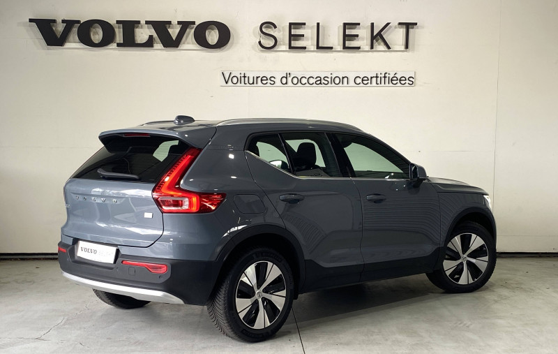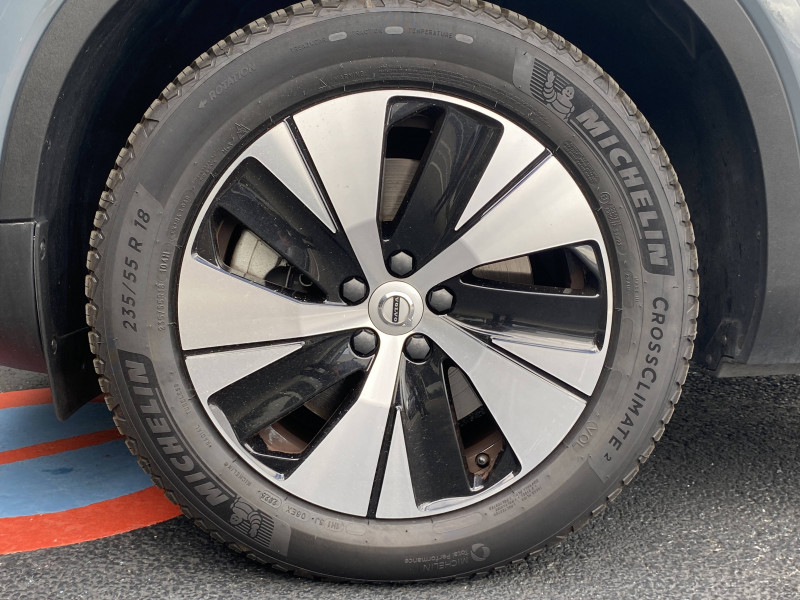 City Safety, système d'anticipation de collision intelligent : Détection des véhicules, cyclistes et piétons avec freinage automatique à pleine puissance. Détection des véhicules aux intersections avec freinage automatique à pleine puissance. Avertissement visuel et sonore paramétrable. Préparation des freins et ceintures de sécurité AV. / Climatisation automatique bi-zone (incluant ouïes d'aération à l'AR) / Commande vocale avancée (climatisation, médias, téléphone, eManuel utilisateur et navigation) / Déclenchement automatique des feux de detresse lors d'un freinage d'urgence / Envoi automatique d'une alerte au service d'urgence Volvo en cas de collision / Frein de parking électronique automatique en fonction Auto Hold (désactivable) / Freinage automatique post-collision (réduction du risque de suraccident) / Jantes alliage 18" 5 branches Noir/Diamant 235/55 R18 / Pack Navigation / Phares LED avec feux de jour design marteau de Thor et feux de route adaptatifs / Pré-câblage électrique pour le crochet d'attelage / Sensus Connect avec Pack Navigation / Seuils de portes AV Volvo en Aluminium / Télécommande de verrouillage centralisé avec clé de contact intégrée, fermeture à distance des vitres et du toit ouvrant et fonction panique / Verrouillage automatique des portes à partir de 7 km/h / Volant sport en Cuir avec insert Aluminium / Accès au service d'assistance Volvo via bouton dédié dans le plafonnier / Accès au service d'urgence Volvo via bouton SOS dans le plafonnier / Airbag conducteur à déclenchement différencié / Airbag passager désactivable avec témoin d'indication (on/off) / Alerte vigilance conducteur / Application Volvo Cars / Assise des sièges AV extensible manuellement / Badge T4/T5 Recharge sur le hayon / Bas de caisse et passages de roues Anthracite / Ceintures de sécuritéà inertie à 3 points d'ancrage (sur les 5 sièges) / Combiné d'instruments digital 12,3" / Contour de la calandre chromé / Contrôle de la transmission en descente HDC / Câble de recharge de 4,5 mètres / 10 A / Direction assistée asservie à la vitesse / Eclairage d'accompagnement et éclairage d'approche / Eclairage d'intérieur : Spots de lecture à l'AV avec éclairage des passagers AV, éclairages dans le coffre (x2). Miroirs de courtoisie éclairés avec éclairage d'ambiance au niveau des pieds. Boîte à gants éclairée / Ecran tactile multimédia haute résolution 9" personnalisable / Espace de rangement sous la console centrale / Fonction Eco : optimisation des paramètres véhicule pour une conduite économique et écologique (à la demande) / Fonction Stop&Start : coupe et redémarre le moteur lorsque la voiture est à l'arrêt (déconnectable) / Gravure Recharge sur les montants AR / Incrustations Urban Grid / Indicateur de perte de pression des pneus / Kit anti-crevaison / Miroirs de courtoisie éclairés, spots de lecture à l'AV et éclairage dans le coffre / Ouverture des portes sans clé Keyless Entry Eclairage du sol dans les poignées de porte AV + Hayon électrique avec fonction Confort (sans les mains) / Pare-brise en verre feuilleté et colonne de direction rétractable en cas de choc / Park Assist / Pistage du véhicule par le service en cas de vol du véhicule / Pneus toutes saisons / Port de recharge sur l'aile AV gauche / Porte-cartes bancaires et cartes de services intégré dans la planche de bord / Porte-ticket de parking et d'autoroute / Protection de pare-chocs AV et AR Noir / Rappel d'oubli de bouclage de ceinture de sécurité AV et AR / Réglage en hauteur manuel des ceintures AV / Rétroviseurs couleur carrosserie avec partie inférieure noir / Sabots de protection AV et AR Noir / Sièges conducteur et passager avec réglage électriques des supports lombaires 4 positions / Sonde de température extérieure et horloge / Sortie d'échappement non visible / Style extérieur dark / Système audio Volvo Premium Sound by Harman/Kardon 600 W avec 13 HP et technologie Subwoofer / Système de contrôle de la stabilité et de la traction STC / Système de contrôle du freinage du véhicule VDC / Système de filtration de l'air CleanZone Advanced avec indication de la qualité de l'air intérieur / Système de protection anti-sortie de route / Système de protection collision frontale : Détection du risque de collision frontale (de 65 à 140 km/h) avec action corrective sur la direction / Système de protection contre le coup du lapin WHIPS (sièges AV) / Système de protection contre les chocs latéraux SIPS / Système de protection en cas de sortie de route / Système de pré-conditionnement de l'habitacle (chauffage) / Système de recharge sans fil pour smartphone situé dans le compartiment de rangement AV / Système de réglage en hauteur des phares / Système intelligent d'information au conducteur IDIS / Sécurité enfant à commande électrique / Tapis de sol textile AV/AR / Trappe de carburant intelligente sans bouchon / Trousse de 1er secours et triangle de présignalisation / Tunnel de la console centrale Anthracite / Verrouillage de sécurité enfant manuel / Vitres AV et AR électriques à impulsion (montée et descente) avec système anti-pincement
