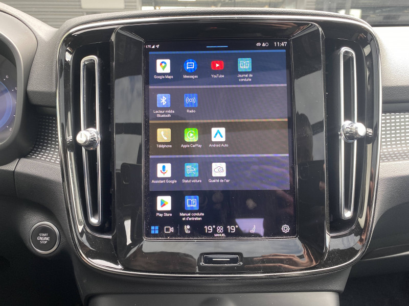 City Safety, système d'anticipation de collision intelligent : Détection des véhicules, cyclistes et piétons avec freinage automatique à pleine puissance. Détection des véhicules aux intersections avec freinage automatique à pleine puissance. Avertissement visuel et sonore paramétrable. Préparation des freins et ceintures de sécurité AV. / Climatisation automatique bi-zone (incluant ouïes d'aération à l'AR) / Déclenchement automatique des feux de detresse lors d'un freinage d'urgence / Envoi automatique d'une alerte au service d'urgence Volvo en cas de collision / Fonction climatisation de l'habitacle moteur coupé / Frein de parking électronique automatique en fonction Auto Hold (désactivable) / Freinage automatique post-collision (réduction du risque de suraccident) / Jantes alliage 19" 5 branches Y Noir Mat/Diamant 235/50 R19 / Pack Intellisafe Pro / Pack Visibilté / Phares LED avec feux de jour design marteau de Thor et feux de route adaptatifs / Pneus toutes saisons (sur jantes 18" et 19") / Pré-câblage électrique pour le crochet d'attelage / Radar de stationnement AR avec signal sonore et visuel / Seuils de portes AV Volvo en Aluminium / Toit ouvrant panoramique avec rideau pare soleil intégréà commande électrique / Télécommande de verrouillage centralisé avec clé de contact intégrée, fermeture à distance des vitres et du toit ouvrant et fonction panique / Verrouillage automatique des portes à partir de 7 km/h / Volant sport en Cuir avec insert Aluminium / Accès au service d'assistance Volvo via bouton dédié dans le plafonnier / Accès au service d'urgence Volvo via bouton SOS dans le plafonnier / Airbag conducteur à déclenchement différencié / Airbag passager désactivable avec témoin d'indication (on/off) / Alerte vigilance conducteur / Application Volvo Cars / Assise des sièges AV extensible manuellement / Assistant d'arrêt d'urgence, qui peut faire ralentir le véhicule jusqu'à l'arrêt en cas d'absence de réaction du conducteur aux signaux d'alerte / Bas de caisse et passages de roues Anthracite / Calandre avec contour et lamelles horizontales noir brillant / Ceintures de sécuritéà inertie à 3 points d'ancrage (sur les 5 sièges) / Combiné d'instruments digital 12,3" / Contour de la calandre chromé / Contrôle de la transmission en descente HDC / Coques de rétroviseurs noires / Direction assistée asservie à la vitesse / Eclairage d'accompagnement et éclairage d'approche / Eclairage d'intérieur : Spots de lecture à l'AV avec éclairage des passagers AV, éclairages dans le coffre (x2). Miroirs de courtoisie éclairés avec éclairage d'ambiance au niveau des pieds. Boîte à gants éclairée / Ecran tactile multimédia haute résolution 9" personnalisable / Espace de rangement sous la console centrale / Fonction Eco : optimisation des paramètres véhicule pour une conduite économique et écologique (à la demande) / Fonction Stop&Start : coupe et redémarre le moteur lorsque la voiture est à l'arrêt (déconnectable) / Garniture finition noir brillant de la partie inférieure des vitres latérales / Hayon électrique avec fonction Confort / Incrustations Urban Grid / Indicateur de perte de pression des pneus / Infotainment Google Android / Kit anti-crevaison / Miroirs de courtoisie éclairés, spots de lecture à l'AV et éclairage dans le coffre / Ouverture des portes sans clé Keyless Entry incluant éclairage du sol dans les poignées de porte AV / Pare-brise en verre feuilleté et colonne de direction rétractable en cas de choc / Pistage du véhicule par le service en cas de vol du véhicule / Plaques décoratives AV/AR noir finition noir brillant / Porte-cartes bancaires et cartes de services intégré dans la planche de bord / Porte-ticket de parking et d'autoroute / Protection de pare-chocs AV et AR Noir / Préparation pour le système Isofix (places latérales de la 2ème rangée de sièges) / Rails de toit Noir brillant / Rappel d'oubli de bouclage de ceinture de sécurité AV et AR / Réglage en hauteur manuel des ceintures AV / Rétroviseur intérieur électrochrome sans contour / Rétroviseurs couleur carrosserie avec partie inférieure noir / Sabots de protection AV et AR Noir / Sièges conducteur et passager avec réglage électriques des supports lombaires 4 positions / Sonde de température extérieure et horloge / Sortie d'échappement non visible / Système audio Volvo Premium Sound by Harman/Kardon 600 W avec 13 HP et technologie Subwoofer / Système de contrôle de la stabilité et de la traction STC / Système de contrôle du freinage du véhicule VDC / Système de filtration de l'air CleanZone Advanced avec indication de la qualité de l'air intérieur / Système de protection anti-sortie de route / Système de protection collision frontale : Détection du risque de collision frontale (de 65 à 140 km/h) avec action corrective sur la direction / Système de protection contre le coup du lapin WHIPS (sièges AV) / Système de protection contre les chocs latéraux SIPS / Système de protection en cas de sortie de route / Système de recharge sans fil pour smartphone situé dans le compartiment de rangement AV / Système de réglage en hauteur des phares / Système intelligent d'information au conducteur IDIS / Sécurité enfant à commande électrique / Tapis de sol textile AV/AR / Trappe de carburant intelligente sans bouchon / Trousse de 1er secours et triangle de présignalisation / Tunnel de la console centrale Anthracite / Verrouillage de sécurité enfant manuel / Vitres AV et AR électriques à impulsion (montée et descente) avec système anti-pincement