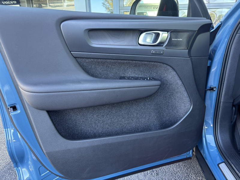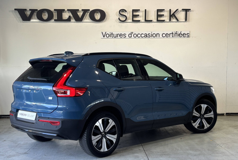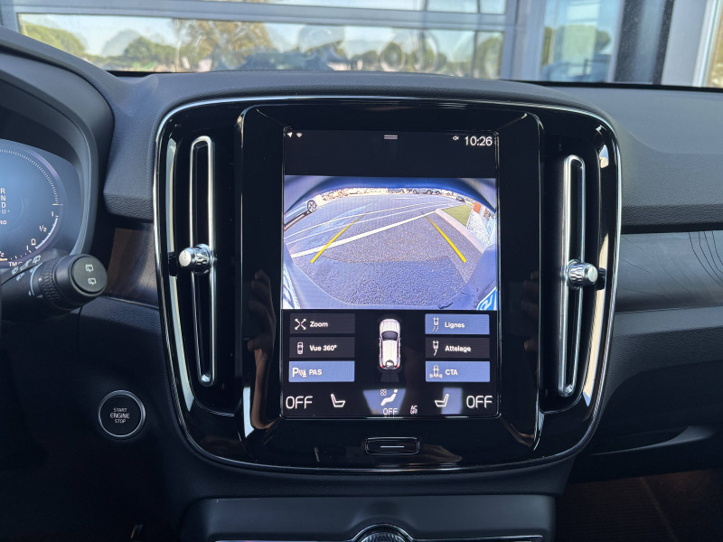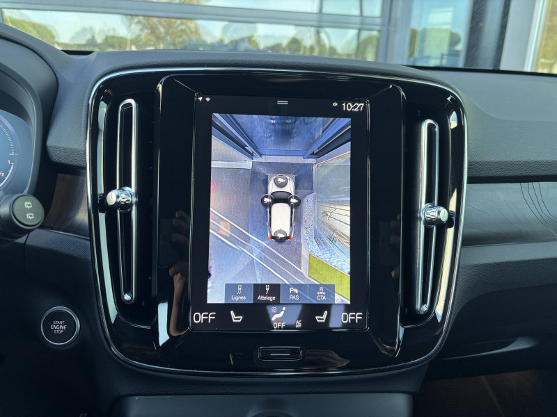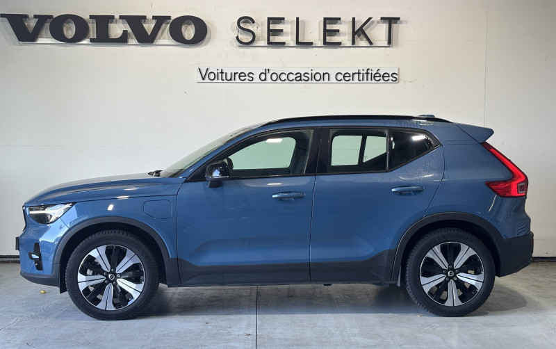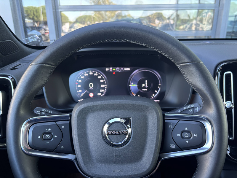 Accès au service d'assistance Volvo via bouton dédié dans le plafonnier / Accès au service d'urgence Volvo via bouton SOS dans le plafonnier / Airbag conducteur à déclenchement différencié / Airbag passager désactivable avec témoin d'indication (on/off) / Alerte vigilance conducteur / Application Volvo Cars / Assise des sièges AV extensible manuellement / Badge T4/T5 Recharge sur le hayon / Bas de caisse et passages de roues Anthracite / Câble de recharge de 4,5 mètres / 10 A / Ceintures de sécuritéà inertie à 3 points d'ancrage (sur les 5 sièges) / City Safety, système d'anticipation de collision intelligent : Détection des véhicules, cyclistes et piétons avec freinage automatique à pleine puissance. Détection des véhicules aux intersections avec freinage automatique à pleine puissance. Avertissement visuel et sonore paramétrable. Préparation des freins et ceintures de sécurité AV. / Climatisation automatique bi-zone (incluant ouïes d'aération à l'AR) / Combiné d'instruments digital 12,3" / Commande vocale avancée (climatisation, médias, téléphone, eManuel utilisateur et navigation) / Contour de la calandre chromé / Contrôle de la transmission en descente HDC / Déclenchement automatique des feux de detresse lors d'un freinage d'urgence / Direction assistée asservie à la vitesse / Eclairage d'accompagnement et éclairage d'approche / Eclairage d'intérieur : Spots de lecture à l'AV avec éclairage des passagers AV, éclairages dans le coffre (x2). Miroirs de courtoisie éclairés avec éclairage d'ambiance au niveau des pieds. Boîte à gants éclairée / Ecran tactile multimédia haute résolution 9" personnalisable / Envoi automatique d'une alerte au service d'urgence Volvo en cas de collision / Espace de rangement sous la console centrale / Fonction Eco : optimisation des paramètres véhicule pour une conduite économique et écologique (à la demande) / Fonction Stop&Start : coupe et redémarre le moteur lorsque la voiture est à l'arrêt (déconnectable) / Freinage automatique post-collision (réduction du risque de suraccident) / Frein de parking électronique automatique en fonction Auto Hold (désactivable) / Gravure Recharge sur les montants AR / Incrustations Urban Grid / Indicateur de perte de pression des pneus / Jantes alliage 19" 5 branches doubles Noir/Diamant 235/50 R19 / Kit anti-crevaison / Matériaux anti-allergènes dans l'habitacle (sellerie tissu, ceintures de sécurité, incrustations) / Miroirs de courtoisie éclairés, spots de lecture à l'AV et éclairage dans le coffre / Ouverture des portes sans clé Keyless Entry Eclairage du sol dans les poignées de porte AV + Hayon électrique avec fonction Confort (sans les mains) / Pack Intellisafe Pro / Pack Navigation / Pack Visibilté / Pare-brise en verre feuilleté et colonne de direction rétractable en cas de choc / Park Assist / Phares LED avec feux de jour design marteau de Thor et feux de route adaptatifs / Pistage du véhicule par le service en cas de vol du véhicule / Pneus toutes saisons / Port de recharge sur l'aile AV gauche / Porte-cartes bancaires et cartes de services intégré dans la planche de bord / Porte-ticket de parking et d'autoroute / Pré-câblage électrique pour le crochet d'attelage / Protection de pare-chocs AV et AR Noir / Rappel d'oubli de bouclage de ceinture de sécurité AV et AR / Réglage en hauteur manuel des ceintures AV / Rétroviseurs couleur carrosserie avec partie inférieure noir / Sabots de protection AV et AR Noir / Sécurité enfant à commande électrique / Sensus Connect avec Pack Navigation / Seuils de portes AV Volvo en Aluminium / Sièges conducteur et passager avec réglage électriques des supports lombaires 4 positions / Sonde de température extérieure et horloge / Sortie d'échappement non visible / Style extérieur dark / Système audio Volvo Premium Sound by Harman/Kardon 600 W avec 13 HP et technologie Subwoofer / Système de contrôle de la stabilité et de la traction STC / Système de contrôle du freinage du véhicule VDC / Système de filtration de l'air CleanZone Advanced avec indication de la qualité de l'air intérieur / Système de pré-conditionnement de l'habitacle (chauffage) / Système de protection anti-sortie de route / Système de protection collision frontale : Détection du risque de collision frontale (de 65 à 140 km/h) avec action corrective sur la direction / Système de protection contre le coup du lapin WHIPS (sièges AV) / Système de protection contre les chocs latéraux SIPS / Système de protection en cas de sortie de route / Système de recharge sans fil pour smartphone situé dans le compartiment de rangement AV / Système de réglage en hauteur des phares / Système intelligent d'information au conducteur IDIS / Tapis de sol textile AV/AR / Télécommande de verrouillage centralisé avec clé de contact intégrée, fermeture à distance des vitres et du toit ouvrant et fonction panique / Toit ouvrant panoramique en deux parties avec pare-soleil électrique / Trappe de carburant intelligente sans bouchon / Trousse de 1er secours et triangle de présignalisation / Tunnel de la console centrale Anthracite / Verrouillage automatique des portes à partir de 7 km/h / Verrouillage de sécurité enfant manuel / Vitres AV et AR électriques à impulsion (montée et descente) avec système anti-pincement / Volant sport en Cuir avec insert Aluminium