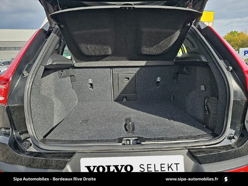 Antibrouillard AV à LED avec éclairage d'intersection / CleanZone : filtre à charbon de climatisation multi-actif et fonction pré-ventilation / Climatisation automatique bi-zone Inclut boîte à gants réfrigérée et ouïes d'aération à l'AR / Commande vocale avancée (climatisation, médias, téléphone, eManuel utilisateur et navigation) / Déclenchement automatique des feux de detresse lors d'un freinage d'urgence / Fonction climatisation de l'habitacle moteur coupé / Frein de parking électronique automatique en fonction Auto Hold (désactivable) / Freinage automatique post-collision (réduction du risque de suraccident) / Incrustations Aluminium / Jantes alliage 18" 5 branches Argent Brillant 235/55 R18 / Pack Navigation / Phares LED avec correcteur dynamique de la portée, feux de route adaptatifs et feux de jour design marteau de Thor / Pommeau de levier de vitesse Simili-cuir / Pré-câblage électrique pour le crochet d'attelage / Radar de stationnement AV et AR avec signal sonore et visuel / Sensus Navigation, Affichage 3D, cartographie Europe, information trafic en temps réel Applications web dédiées, 8 ans de mises à jour cartographiques gratuites grâce au programme MapCare / Télécommande de verrouillage centralisé avec clé de contact integrée, fermeture automatique des vitres et du toit ouvrant, fonction panique (déclenchement du klaxon et des feux de détresse) / Verrouillage automatique des portes à partir de 7 km/h / Volant 3 branches gainé de Cuir avec insert en Aluminium / 2 porte-cintres / Accès au service d'urgence Volvo via bouton SOS dans le plafonnier / Airbag passager désactivable avec témoin d'indication (on/off) / Airbags conducteur et passager à déclenchement différencié / Alerte vigilance conducteur / Bas de caisse et passages de roues Anthracite / Ceintures de sécuritéà inertie à 3 points d'ancrage (sur les 5 sièges) / City Safety, système d'anticipation de collision intelligent / Combiné d'instruments digital 12,3" / Contour de la calandre chromé / Contrôle de la transmission en descente HDC / Corbeille intégrée et amovible au niveau du tunnel central AV / Crochet pour sacs intégréà la boîte à gants / Direction assistée électrique asservie à la vitesse / Eclairage d'accompagnement et éclairage d'approche / Eclairage d'intérieur Spots de lecture à l'AV avec éclairage des passagers AV, éclairages dans le coffre (x2). Miroirs de courtoisie éclairés avec éclairage d'ambiance au niveau des pieds. Boîte à gants éclairée. / Ecran tactile multimédia haute résolution 9" personnalisable / Espace de rangement sous la console centrale / Fonction Eco : optimisation des paramètres véhicule pour une conduite économique et écologique (à la demande) / Fonction Stop&Start : coupe et redémarre le moteur lorsque la voiture est à l'arrêt (déconnectable) / Indicateur de perte de pression des pneus / Kit anti-crevaison / Mode de conduite personnalisable / Ouverture des portes sans clé Keyless Entry Eclairage du sol dans les poignées de porte AV + Hayon électrique avec fonction Confort (sans les mains) / Pare-brise en verre feuilleté et colonne de direction rétractable en cas de choc / Porte-cartes bancaires et cartes de services intégré dans la planche de bord / Porte-ticket de parking et d'autoroute / Protection de pare-chocs AV couleur argent / Préparation pour le système Isofix (places latérales de la 2ème rangée de sièges) / Rails de toit couleur Argent brillant / Rappel d'oubli de bouclage de ceinture de sécurité AV et AR / Réglage en hauteur manuel des ceintures AV / Réglage électrique des supports lombaires / Rétroviseurs couleur carrosserie avec partie inférieure noir / Rétroviseurs intérieur (sans contour) et extérieurs électrochromes / Sensus Connect : Applications web, affichage et lecture vocale des SMS (TTS), eManuel utilisateur et service révision connectée / Seuils de portes AV / Sièges conducteur et passager avec réglage manuel de la hauteur / Sièges conducteur et passager avec réglages manuels de la longueur, de l'inclinaison du dossier et de l'assise / Sièges conducteur et passager avec réglages électriques des supports lombaires / Sonde de température extérieure et horloge / Sortie d'échappement non visible / Système audio Volvo High Performance avec technologie woofer au niveau de la console centrale : 250 W, 8 HP, radio RDS, prise 12 V et 3 ports USB / Système de contrôle de la stabilité et de la traction STC / Système de contrôle du freinage du véhicule VDC / Système de protection anti-sortie de route / Système de protection collision frontale : Détection du risque de collision frontale (de 65 à 140 km/h) avec action corrective sur la direction / Système de protection contre le coup du lapin WHIPS (sièges AV) / Système de protection contre les chocs latéraux SIPS / Système de protection en cas de sortie de route / Système de réglage en hauteur des phares / Système intelligent d'information au conducteur IDIS / Tapis de sol textile AV/AR / Trappe de carburant intelligente sans bouchon / Trousse de 1er secours et triangle de présignalisation / Verrouillage de sécurité enfant manuel / Vitres AV et AR électriques à impulsion (montée et descente) avec système anti-pincement / Volvo On Call avec fonction Car Sharing