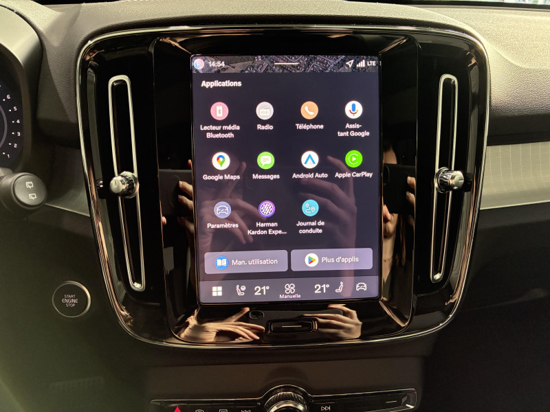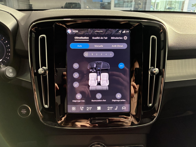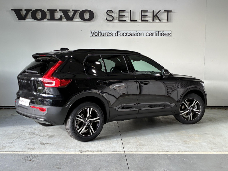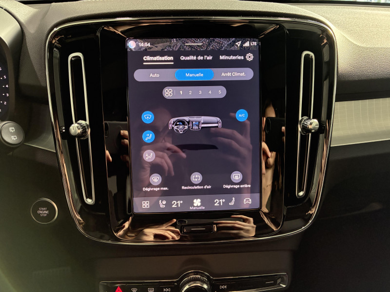 City Safety, système d'anticipation de collision intelligent : Détection des véhicules, cyclistes et piétons avec freinage automatique à pleine puissance. Détection des véhicules aux intersections avec freinage automatique à pleine puissance. Avertissement visuel et sonore paramétrable. Préparation des freins et ceintures de sécurité AV. / Climatisation automatique bi-zone (incluant ouïes d'aération à l'AR) Inclus un système de recirculation de l'air et un filtre à pollen / Déclenchement automatique des feux de detresse lors d'un freinage d'urgence / Envoi automatique d'une alerte au service d'urgence Volvo en cas de collision / Fonction climatisation de l'habitacle moteur coupé / Frein de parking électronique automatique en fonction Auto Hold (désactivable) / Freinage automatique post-collision (réduction du risque de suraccident) / Jantes alliage 18" 5 branches double Noir Mat/Diamant 235/55 R18 / Phares LED avec feux de jour design marteau de Thor et feux de route adaptatifs / Pré-câblage électrique pour le crochet d'attelage / Radar de stationnement AR avec signal sonore et visuel / Seuils de portes AV Volvo en Aluminium / Télécommande de verrouillage centralisé avec clé de contact intégrée, fermeture à distance des vitres et du toit ouvrant et fonction panique (déclenchement du klaxon et des feux de détresse) / Verrouillage automatique des portes à partir de 7 km/h / Volant sport gainé de cuir avec insert Aluminium / Accès au service d'assistance Volvo via bouton dédié dans le plafonnier / Accès au service d'urgence Volvo via bouton SOS dans le plafonnier / Airbag passager désactivable avec témoin d'indication (on/off) / Airbags conducteur et passager à déclenchement différencié / Alerte vigilance conducteur / Application Volvo Cars / Assise des sièges AV extensible manuellement / Assistant d'arrêt d'urgence, qui peut faire ralentir le véhicule jusqu'à l'arrêt en cas d'absence de réaction du conducteur aux signaux d'alerte / Bas de caisse et passages de roues Anthracite / Calandre avec contour et lamelles horizontales noir brillant / Ceintures de sécuritéà inertie à 3 points d'ancrage (sur les 5 sièges) / Combiné d'instruments digital 12,3" / Contrôle de la transmission en descente HDC / Coques de rétroviseurs noires / Direction assistée électrique asservie à la vitesse / Eclairage d'accompagnement et éclairage d'approche / Eclairage d'intérieur : Spots de lecture à l'AV avec éclairage des passagers AV, éclairages dans le coffre (x2). Miroirs de courtoisie éclairés avec éclairage d'ambiance au niveau des pieds. Boîte à gants éclairée / Ecran tactile multimédia haute résolution 9" personnalisable / Espace de rangement sous la console centrale / Filtre à particules sans entretien (réduction des émissions de particules) / Fonction Eco : optimisation des paramètres véhicule pour une conduite économique et écologique (à la demande) / Fonction Stop&Start : coupe et redémarre le moteur lorsque la voiture est à l'arrêt (déconnectable) / Garniture finition noir brillant de la partie inférieure des vitres latérales / Hayon électrique avec fonction Confort / Incrustations Urban Grid / Indicateur de perte de pression des pneus / Infotainment Volvo Car UX Services Google (comprend Google Maps, Google Assistant, Google Play Store et un volume de données illimité pour les 4 premières années). Kit mains libres Bluetooth et Streaming Audio, mode d'emploi numérique du véhicule, réception de la radio numérique (DAB+), mises à jour à distance Over the Air (OTA) / Kit anti-crevaison / Matériaux anti-allergènes dans l'habitacle (sellerie tissu, ceintures de sécurité, incrustations) / Miroirs de courtoisie éclairés, spots de lecture à l'AV et éclairage dans le coffre / Ouverture des portes sans clé Keyless Entry incluant éclairage du sol dans les poignées de porte AV / Pare-brise en verre feuilleté et colonne de direction rétractable en cas de choc / Pistage du véhicule par le service d'urgence Volvo en cas de vol du véhicule / Plaques décoratives AV/AR noir finition noir brillant / Porte-cartes bancaires et cartes de services intégré dans la planche de bord / Protection de pare-chocs AV et AR Noir / Préparation pour le système Isofix (places latérales de la 2ème rangée de sièges) / Rails de toit Noir brillant / Rappel d'oubli de bouclage de ceinture de sécurité AV et AR / Réglage en hauteur manuel des ceintures AV / Régulateur adaptatif de vitesse et de distance ACC / Rétroviseur intérieur électrochrome sans contour / Sabots de protection AV et AR Noir / Siège conducteur et passager avec réglage manuel de la hauteur / Sièges AV à commande électrique avec fonction de mémoire pour la position d'assise et les rétroviseurs extérieurs / Sièges conducteur et passager avec réglage manuel de la longueur, de l'inclinaison du dossier et de l'assise / Sièges conducteur et passager avec réglage électriques des supports lombaires 4 positions / Sonde de température extérieure et horloge / Sortie d'échappement non visible / Système audio Volvo Premium Sound by Harman/Kardon 600 W avec 13 HP et technologie Subwoofer / Système de contrôle de la stabilité et de la traction STC / Système de contrôle du freinage du véhicule VDC / Système de filtration de l'air CleanZone Advanced avec indication de la qualité de l'air intérieur / Système de protection anti-sortie de route Détection du risque de sortie de route (avec ou sans marquage au sol, de 65 à 140 km/h) avec action corrective sur la direction et, si nécessaire, sur les freins / Système de protection collision frontale : Détection du risque de collision frontale (de 65 à 140 km/h) avec action corrective sur la direction / Système de protection contre le coup du lapin WHIPS (sièges AV) / Système de protection contre les chocs latéraux SIPS / Système de protection en cas de sortie de route Ceintures de s