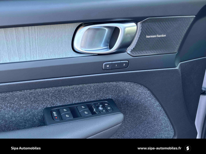 City Safety, système d'anticipation de collision intelligent : Détection des véhicules, cyclistes et piétons avec freinage automatique à pleine puissance. Détection des véhicules aux intersections avec freinage automatique à pleine puissance. Avertissement visuel et sonore paramétrable. Préparation des freins et ceintures de sécurité AV. / Climatisation automatique bi-zone (incluant ouïes d'aération à l'AR) Inclus un système de recirculation de l'air et un filtre à pollen / Déclenchement automatique des feux de detresse lors d'un freinage d'urgence / Envoi automatique d'une alerte au service d'urgence Volvo en cas de collision / Fonction climatisation de l'habitacle moteur coupé / Frein de parking électronique automatique en fonction Auto Hold (désactivable) / Freinage automatique post-collision (réduction du risque de suraccident) / Jantes alliage 18" 5 branches double Noir Mat/Diamant 235/55 R18 / Phares LED avec feux de jour design marteau de Thor et feux de route adaptatifs / Pré-câblage électrique pour le crochet d'attelage / Radar de stationnement AR avec signal sonore et visuel / Sellerie Cuir Anthracite Incrustation Bois Flotté / Seuils de portes AV Volvo en Aluminium / Toit ouvrant panoramique avec rideau pare soleil intégréà commande électrique / Télécommande de verrouillage centralisé avec clé de contact intégrée, fermeture à distance des vitres et du toit ouvrant et fonction panique (déclenchement du klaxon et des feux de détresse) / Verrouillage automatique des portes à partir de 7 km/h / Volant sport gainé de cuir avec insert Aluminium / Accès au service d'assistance Volvo via bouton dédié dans le plafonnier / Accès au service d'urgence Volvo via bouton SOS dans le plafonnier / Airbag passager désactivable avec témoin d'indication (on/off) / Airbags conducteur et passager à déclenchement différencié / Alerte vigilance conducteur / Application Volvo Cars / Assise des sièges AV extensible manuellement / Assistant d'arrêt d'urgence, qui peut faire ralentir le véhicule jusqu'à l'arrêt en cas d'absence de réaction du conducteur aux signaux d'alerte / Bas de caisse et passages de roues Anthracite / Calandre avec contour et lamelles horizontales noir brillant / Ceintures de sécuritéà inertie à 3 points d'ancrage (sur les 5 sièges) / Combiné d'instruments digital 12,3" / Contrôle de la transmission en descente HDC / Coques de rétroviseurs noires / Direction assistée électrique asservie à la vitesse / Eclairage d'accompagnement et éclairage d'approche / Eclairage d'intérieur : Spots de lecture à l'AV avec éclairage des passagers AV, éclairages dans le coffre (x2). Miroirs de courtoisie éclairés avec éclairage d'ambiance au niveau des pieds. Boîte à gants éclairée / Ecran tactile multimédia haute résolution 9" personnalisable / Espace de rangement sous la console centrale / Filtre à particules sans entretien (réduction des émissions de particules) / Fonction Eco : optimisation des paramètres véhicule pour une conduite économique et écologique (à la demande) / Fonction Stop&Start : coupe et redémarre le moteur lorsque la voiture est à l'arrêt (déconnectable) / Garniture finition noir brillant de la partie inférieure des vitres latérales / Hayon électrique avec fonction Confort / Indicateur de perte de pression des pneus / Infotainment Volvo Car UX Services Google (comprend Google Maps, Google Assistant, Google Play Store et un volume de données illimité pour les 4 premières années). Kit mains libres Bluetooth et Streaming Audio, mode d'emploi numérique du véhicule, réception de la radio numérique (DAB+), mises à jour à distance Over the Air (OTA) / Kit anti-crevaison / Matériaux anti-allergènes dans l'habitacle (sellerie tissu, ceintures de sécurité, incrustations) / Miroirs de courtoisie éclairés, spots de lecture à l'AV et éclairage dans le coffre / Ouverture des portes sans clé Keyless Entry incluant éclairage du sol dans les poignées de porte AV / Pare-brise en verre feuilleté et colonne de direction rétractable en cas de choc / Pistage du véhicule par le service d'urgence Volvo en cas de vol du véhicule / Plaques décoratives AV/AR noir finition noir brillant / Pommeau de levier de vitesse en cristal d'Orrefors / Porte-cartes bancaires et cartes de services intégré dans la planche de bord / Protection de pare-chocs AV et AR Noir / Préparation pour le système Isofix (places latérales de la 2ème rangée de sièges) / Rails de toit Noir brillant / Rappel d'oubli de bouclage de ceinture de sécurité AV et AR / Réglage en hauteur manuel des ceintures AV / Régulateur adaptatif de vitesse et de distance ACC / Rétroviseur intérieur électrochrome sans contour / Sabots de protection AV et AR Noir / Siège conducteur et passager avec réglage manuel de la hauteur / Sièges AV à commande électrique avec fonction de mémoire pour la position d'assise et les rétroviseurs extérieurs / Sièges conducteur et passager avec réglage manuel de la longueur, de l'inclinaison du dossier et de l'assise / Sièges conducteur et passager avec réglage électriques des supports lombaires 4 positions / Sonde de température extérieure et horloge / Sortie d'échappement non visible / Système audio Volvo Premium Sound by Harman/Kardon 600 W avec 13 HP et technologie Subwoofer / Système de contrôle de la stabilité et de la traction STC / Système de contrôle du freinage du véhicule VDC / Système de filtration de l'air CleanZone Advanced avec indication de la qualité de l'air intérieur / Système de protection anti-sortie de route Détection du risque de sortie de route (avec ou sans marquage au sol, de 65 à 140 km/h) avec action corrective sur la direction et, si nécessaire, sur les freins / Système de protection collision frontale : Détection du risque de collision frontale (de 65 à 140 km/h) avec action corrective sur la direction / Système de protection con