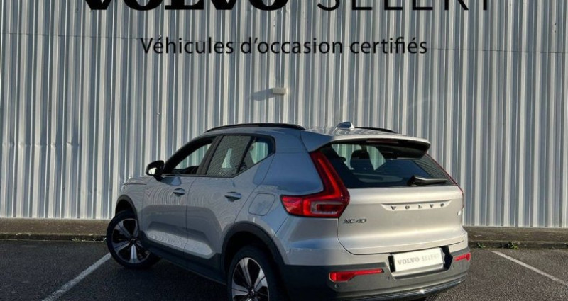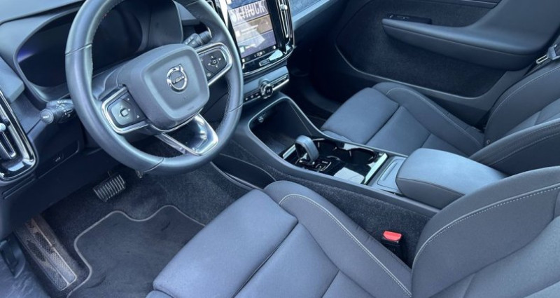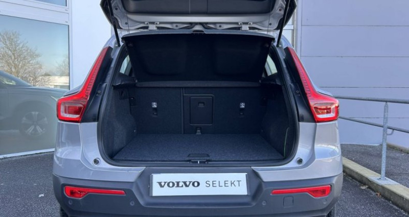 VOLVO XC40 Recharge 231 ch 1EDT Start, tout-terrain, argent aurore, 6 cv, 5 portes, première mise en circulation le 06/10/2022, garantie : 12 mois. Prix TTC : 29 980 € Prix HT : 24 983 € La TVA est récupérable sur ce véhicule. 5 places, couleur intérieur : Tissu City Canvas Anthracite, ambia OPTIONS ET ÉQUIPEMENTS : Audio - Télécommunications : - Commande vocale avancée - Connexion Bluetooth Conduite : - Assistance au démarrage en côte Couleur : - Peinture Métallisée Blanc Crystal - Peinture Métallisée Bleu Denim - Peinture Métallisée Gris Glacier - Peinture Métallisée Gris Tonnere - Peinture Métallisée Rouge Fusion - Peinture Métallisée Vert Sauge Extérieur : - Caméra de recul - Diffuseur AR Noir laqué - Feux de freinage d'urgence - Feux de jour à LED - Filtre à particules sans entretien - Hayon électrique - Pré-câblage électrique pour le crochet d'attelage - Radar de stationnement AV et AR - Rétroviseurs extérieurs rabattables électriquement - Vitres teintées à 25 % Intérieur : - Climatisation automatique bi-zone et aérations individuelles à l'AR - Commandes audio au volant - Direction assistée asservie à la vitesse - Dossier de la banquette AR rabattable 60/40 - Incrustations Aluminium - Ordinateur de bord - Pack Eclairage supérieur - Pommeau de levier de vitesse gainé de Simili-Cuir - Pédales Sport en Aluminium - Rétroviseurs intérieur (sans contour) et extérieur électrochrome - Seuil de coffre en Aluminium - Siège conducteur et passager avec réglage manuel de la hauteur - Sièges AV chauffants - Sièges conducteur et passager avec réglages électriques des supports lombaires - Sonde de température extérieure et horloge - Volant chauffant - Volant réglable en hauteur et en profondeur - Volant sport en Cuir perforé avec insert Aluminium Pack : - Appuie-tête sur chaque siège réglable en hauteur - Assise des sièges AV extensible manuellement - Bas de caisse et passages de roues Anthracite - Calandre AV pleine couleur carrosserie - Chargeur de téléphone par induction - Combiné d'instruments digital 12,3 nouvelle génération - Coques de rétroviseurs Noir brillant - Câble de recharge de 7 mètres / 10 A. Pour prise secteur - Détecteur de pluie et allumage automatique des feux - Espace de rangement sous la console centrale - Freins à disques 18 à l'AR - Limiteur et régulateur de vitesse - Peinture Métallisée Noir Onyx - Pneus toutes saison - Rétroviseur extérieur conducteur grand angle - Rétroviseurs couleur carrosserie avec partie inférieure noir - Seuils de porte en Aluminium à l'AV badgés Volvo - Système de protection anti-sortie de route - Tapis de sol premium - Toit contrasté noir - Trousse de 1er secours et triangle de présignalisation - Verrouillage de sécurité enfant manuel Sécurité : - Airbag genoux conducteur - Airbag passager désactivable avec témoin d'indication (on/off) - Airbags latéraux conducteur et passager - Airbags rideaux - Alerte franchissement de ligne active - Contrôle de la transmission en descente HDC - Feu antibrouillard AR - Indicateur de perte de pression des pneus - Kit anti-crevaison - Reconnaissance des panneaux de signalisation Autres équipements et informations : - 2 porte-cintres - Accès au service d'urgence Volvo via bouton SOS dans le plafonnier - Airbags conducteur et passager à déclenchement différencié - Alerte vigilance conducteur - Application Volvo Cars - Assistance à l'évitement des piétons et des cyclistes - Badge Recharge sur le hayon - Ceintures de sécurité à inertie à 3 points d'ancrage (sur les 5 sièges) - City Safety, système d'anticipation de collision intelligent - CleanZone : Filtre charbon de climatisation multi-actif AQS (limite l'entrée de pollen, de particules de pollution et de mauvaises odeurs en fermant automatiquement les arrivées d'air si nécessaire) et fonction pré-ventillation - Coffre sous le capot AV d'une capacité de 31 litres - Contrôle de stabilité au roulis RSC - Corbeille intégrée et amovible au niveau du tunnel central AV - Correcteur électronique de trajectoire ESC - Crochet pour sacs intégré à la boîte à gants - Deuxième câble de recharge Type 2, 4.5 mètres, 32 A triphasé (fonctionne en monophasé) Pour borne de recharge - Déclenchement automatique des feux de detresse lors d'un freinage d'urgence - Eclairage d'accompagnement et éclairage d'approche - Ecran tactile multimédia haute résolution 9 personnalisable - Fonction Eco : optimisation des paramètres véhicule pour une conduite économique et écologique (à la demande) - Fonction climatisation de l'habitacle moteur coupé - Frein de parking électronique automatique en fonction Auto Hold (désactivable) - Freinage automatique post-collision (réduction du risque de suraccident) - Gravure Recharge sur les montants AR - Infotainment Google Android Services Google (comprend Google Maps, Google Assistant, Google Play Store, chargeur smartphone par induction et un volume de données illimité pour les 4 premières années) et Kit mains libres Bluetooth et Streaming Audio, mode d'emploi numérique du véhicule, réception de la radio numérique (DAB+), mises à jour Over the Air (OTA). - Jantes alliage 19 5 branches Graphite Mat/Diamant AV 235/50 R19 103H, AR 255/45 R19 104 H - Matériaux anti-allergènes dans l'habitacle (sellerie tissu, ceintures de sécurité, incrustations) - Miroirs de courtoisie éclairés, spots de lecture à l'AV et éclairage dans le coffre - Mise à jour du système à distance - Pare-brise en verre feuilleté et colonne de direction rétractable en cas de choc - Phares LED avec correcteur dynamique de la portée et feux de jour design marteau de Thor - Port de recharge sur l'aile AR gauche et connecteur charge rapide (jusqu'à 150 kW) - Porte-cartes bancaires et cartes de services intégré dans la planche de bord - Protections de pare-chocs AV et AR Noir brillant - Préparation pour le système Isofix (places la