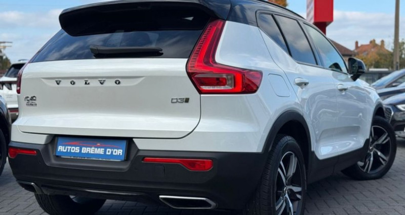 Cylindrée : 1969 cm3 EQUIPEMENTS À savoir : Déjà immatriculé en France Aucun malus écologique Aucune taxe au poids, ni surtaxe CO? PRIX AFFICHÉ = PRIX DU VÉHICULE (AUCUNE TAXE À AJOUTER) Profitez du PACK TRANQUILLITÉ lié au financement et bénéficiez de 6 ANS de garantie pour une sérénité totale : dépannage, remorquage, véhicule de prêt, garantie complète kilométrage illimité !! VOLVO XC40 2.0L D3 150ch R DESIGN GEARTRONIC 8, du 14/04/2020, BLANCHE Nacrée métallisé. FINANCEZ CE VÉHICULE POUR 499?/MOIS sans apport. Avec un apport de 6 500? mensualités de 379?/MOIS. (D'autres exemple de mensualités possible). EN SAVOIR PLUS ! Contactez-nous pour les documents nécessaires à votre dossier de financement avec ou sans apport jusqu'à 72 mois. I ACCORD DE PRINCIPE IMMÉDIAT I AUTOS BREME D'OR se situe au 3 rue nationale 57350 SPICHEREN. ( à coté du supermarché AUCHAN - SPICHEREN !!! ) Options & équipements Extérieur et Châssis - châssis sport + Pare-chocs spécifiques R-design - feux de jour LED et feux arrière LED - phares FULL LED adaptatifs (intelligent light system) - phares de route adaptatif - allumage des feux automatique - radar d'aide au stationnement avant et arrière - CAMERA DE RECUL - jantes alu R-DESIGN - vitres avant et arrière électriques - vitres teintées - pack shadow line - rétroviseurs électriques et rabattables électriquement - échappement à double sortie chrome - barres de toit noir - toit ouvrant panoramique Intérieur & Confort - VIRTUAL cockpit - volant sport R-DESIGN - choix du mode de conduite - GPS Cartographique 3D - éclairage d?ambiance - inserts de tableau de bord métal - sièges baquets sport R-DESIGN avec surpiqûres gris clair - sièges alcantara noir - apple carplay et android auto - climatisation automatique bi-zones - bluetooth avec fonction music - lecteur carte SD - climatisation automatique tactile - commande vocale - appel d'urgence SOS - coffre électrique - accès mains-libres et démarrage sans clés - follow me home Sécurité: - FRONT ASSIST : le véhicule freine en cas d'urgence immédiate et évite la collision - alerte franchissement de ligne (Lane keeping Aid) - avertisseur angle mort - aide a la conduite en descente (Hill d'escient control) - alerte attention conducteur : détection de somnolence - reconnaissance panneaux de signalisation - système prévention collision - système d'assistance de conduite - assistance au démarrage en côte - essuies glaces auto - ABS / ESP - fixation ISOFIX - verrouillage automatique des portes en roulant - régulateur de vitesse - limiteur de vitesse Autres informations : - carnet d'entretien - révision faite - aucun frais à prévoir - véhicule d'origine française et en excellent état !! Reprise possible sur Q3, GLC, X2, T-Roc, Karoq, et autres modèles. - AUTOS BREME D'OR vous propose plus de 185 véhicules en stock disponibles. Pour visualiser l'ensemble de nos annonces, nous vous invitons à cliquer sur l?encadré (en haut à droite) : « Voir les autres annonces du vendeur » Notre équipe française autour de DENIS et KEVIN vous accueille du Lundi au Samedi de 09 à 19h. SERVICE PLUS : repartez de chez nous avec votre nouvelle carte grise. Nous sommes agréés SIV. Possibilité de venir vous chercher à la gare, 30 minutes de la gare TGV de Sarreguemines et de Saint-avold, 45 min de Metz. AUTRES EQUIPEMENTS - Nb rapports : 8 - Consommation extraurbaine : 0.00 - Consommation mixte : 0.00 - Consommation urbaine : 0.00