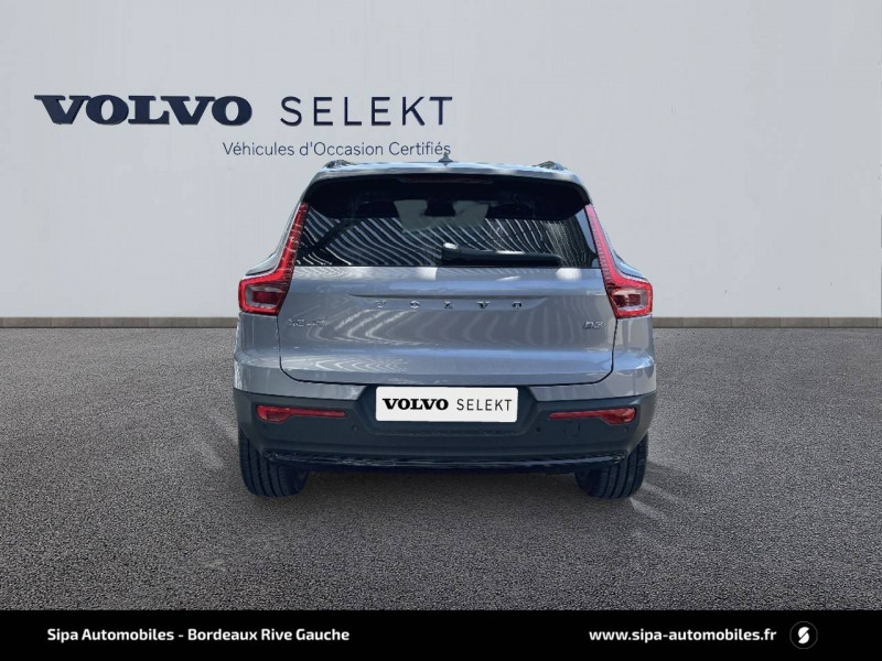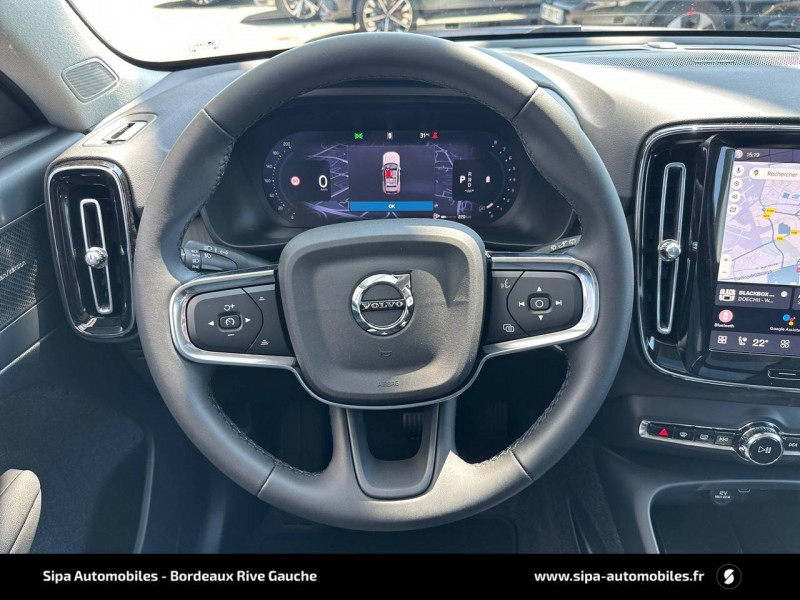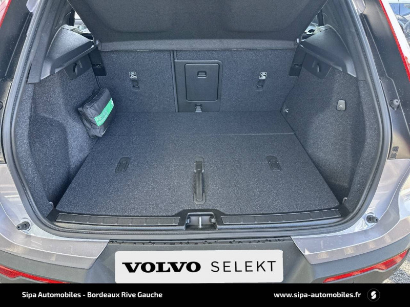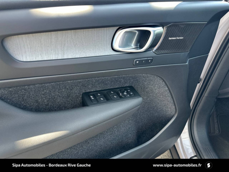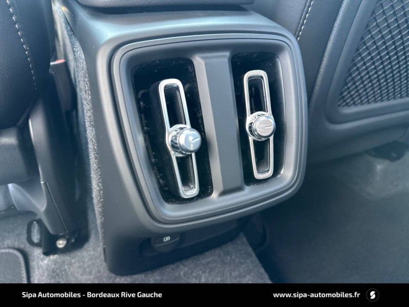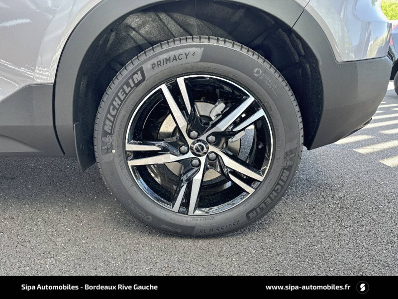 City Safety, système d'anticipation de collision intelligent : Détection des véhicules, cyclistes et piétons avec freinage automatique à pleine puissance. Détection des véhicules aux intersections avec freinage automatique à pleine puissance. Avertissement visuel et sonore paramétrable. Préparation des freins et ceintures de sécurité AV. / Climatisation automatique bi-zone (incluant ouïes d'aération à l'AR) Inclus un système de recirculation de l'air et un filtre à pollen / Déclenchement automatique des feux de detresse lors d'un freinage d'urgence / Envoi automatique d'une alerte au service d'urgence Volvo en cas de collision / Fonction climatisation de l'habitacle moteur coupé / Frein de parking électronique automatique en fonction Auto Hold (désactivable) / Freinage automatique post-collision (réduction du risque de suraccident) / Jantes alliage 18" 5 branches double Noir Mat/Diamant 235/55 R18 / Pack Hiver Sièges AV chauffants, Volant chauffant / Pack Mémoire Sièges conducteur et passager à réglages électriques avec fonction mémoire pour le siège conducteur. Appuie-têtes AR rabattables électriquement depuis l'écran central / Pack Pilot Assist Assistance à la conduite intelligente (le véhicule lit le marquage au sol et agit sur la direction afin de se maintenir au centre de sa voie, le conducteur doit garder les mains sur le volant, fonctionne jusqu'à 130 km/h. Alerte distance de sécurité. Surveillance anti-angle mort avec action correctrice sur la direction. Assistance au changement de file. Alerte trafic en marche AR et Alerte collision AR avec freinage automatique. / Phares LED avec feux de jour design marteau de Thor et feux de route adaptatifs / Pré-câblage électrique pour le crochet d'attelage / Radar de stationnement AR avec signal sonore et visuel / Seuils de portes AV Volvo en Aluminium / Télécommande de verrouillage centralisé avec clé de contact intégrée, fermeture à distance des vitres et du toit ouvrant et fonction panique (déclenchement du klaxon et des feux de détresse) / Verrouillage automatique des portes à partir de 7 km/h / Volant sport gainé de cuir avec insert Aluminium / Accès au service d'assistance Volvo via bouton dédié dans le plafonnier / Accès au service d'urgence Volvo via bouton SOS dans le plafonnier / Airbag passager désactivable avec témoin d'indication (on/off) / Airbags conducteur et passager à déclenchement différencié / Alerte vigilance conducteur / Application Volvo Cars / Assise des sièges AV extensible manuellement / Assistant d'arrêt d'urgence, qui peut faire ralentir le véhicule jusqu'à l'arrêt en cas d'absence de réaction du conducteur aux signaux d'alerte / Bas de caisse et passages de roues Anthracite / Calandre avec contour et lamelles horizontales noir brillant / Ceintures de sécuritéà inertie à 3 points d'ancrage (sur les 5 sièges) / Combiné d'instruments digital 12,3" / Contrôle de la transmission en descente HDC / Coques de rétroviseurs noires / Direction assistée électrique asservie à la vitesse / Eclairage d'accompagnement et éclairage d'approche / Eclairage d'intérieur : Spots de lecture à l'AV avec éclairage des passagers AV, éclairages dans le coffre (x2). Miroirs de courtoisie éclairés avec éclairage d'ambiance au niveau des pieds. Boîte à gants éclairée / Ecran tactile multimédia haute résolution 9" personnalisable / Espace de rangement sous la console centrale / Filtre à particules sans entretien (réduction des émissions de particules) / Fonction Eco : optimisation des paramètres véhicule pour une conduite économique et écologique (à la demande) / Fonction Stop&Start : coupe et redémarre le moteur lorsque la voiture est à l'arrêt (déconnectable) / Garniture finition noir brillant de la partie inférieure des vitres latérales / Hayon électrique avec fonction Confort / Incrustations Urban Grid / Indicateur de perte de pression des pneus / Infotainment Volvo Car UX Services Google (comprend Google Maps, Google Assistant, Google Play Store et un volume de données illimité pour les 4 premières années). Kit mains libres Bluetooth et Streaming Audio, mode d'emploi numérique du véhicule, réception de la radio numérique (DAB+), mises à jour à distance Over the Air (OTA) / Kit anti-crevaison / Miroirs de courtoisie éclairés, spots de lecture à l'AV et éclairage dans le coffre / Ouverture des portes sans clé Keyless Entry incluant éclairage du sol dans les poignées de porte AV / Pare-brise en verre feuilleté et colonne de direction rétractable en cas de choc / Pistage du véhicule par le service d'urgence Volvo en cas de vol du véhicule / Plaques décoratives AV/AR noir finition noir brillant / Porte-cartes bancaires et cartes de services intégré dans la planche de bord / Protection de pare-chocs AV et AR Noir / Préparation pour le système Isofix (places latérales de la 2ème rangée de sièges) / Rails de toit Noir brillant / Rappel d'oubli de bouclage de ceinture de sécurité AV et AR / Réglage en hauteur manuel des ceintures AV / Régulateur adaptatif de vitesse et de distance ACC / Rétroviseur intérieur électrochrome sans contour / Sabots de protection AV et AR Noir / Siège conducteur et passager avec réglage manuel de la hauteur / Sièges AV à commande électrique avec fonction de mémoire pour la position d'assise et les rétroviseurs extérieurs / Sièges conducteur et passager avec réglage manuel de la longueur, de l'inclinaison du dossier et de l'assise / Sièges conducteur et passager avec réglage électriques des supports lombaires 4 positions / Sonde de température extérieure et horloge / Sortie d'échappement non visible / Système audio Volvo Premium Sound by Harman/Kardon 600 W avec 13 HP et technologie Subwoofer / Système de contrôle de la stabilité et de la traction STC / Système de contrôle du freinage du véhicule VDC / Système de filtration de l'air CleanZone Advanced ave