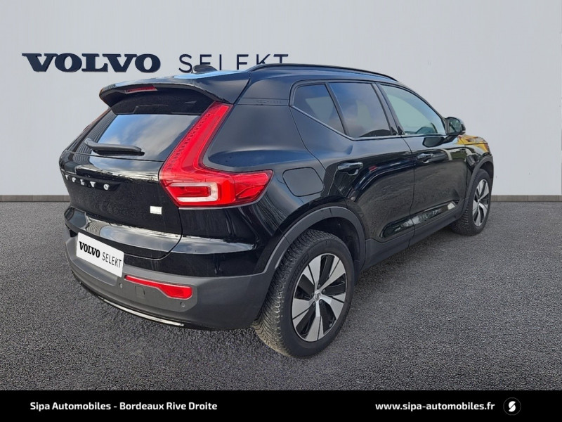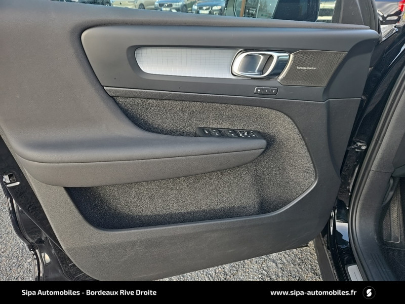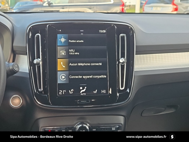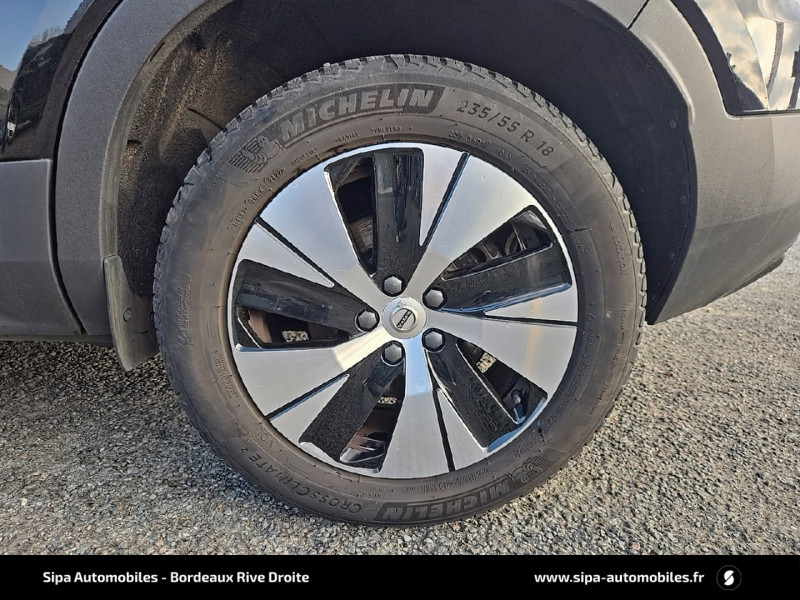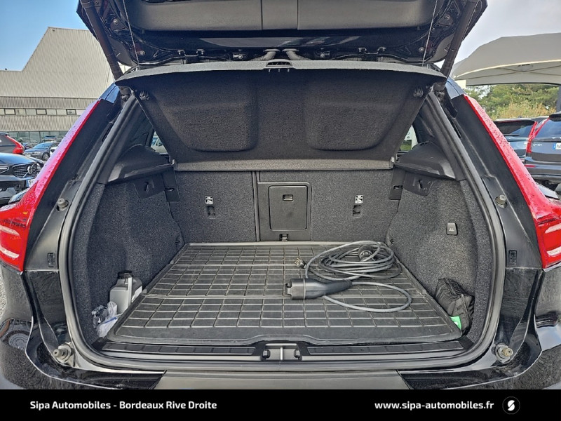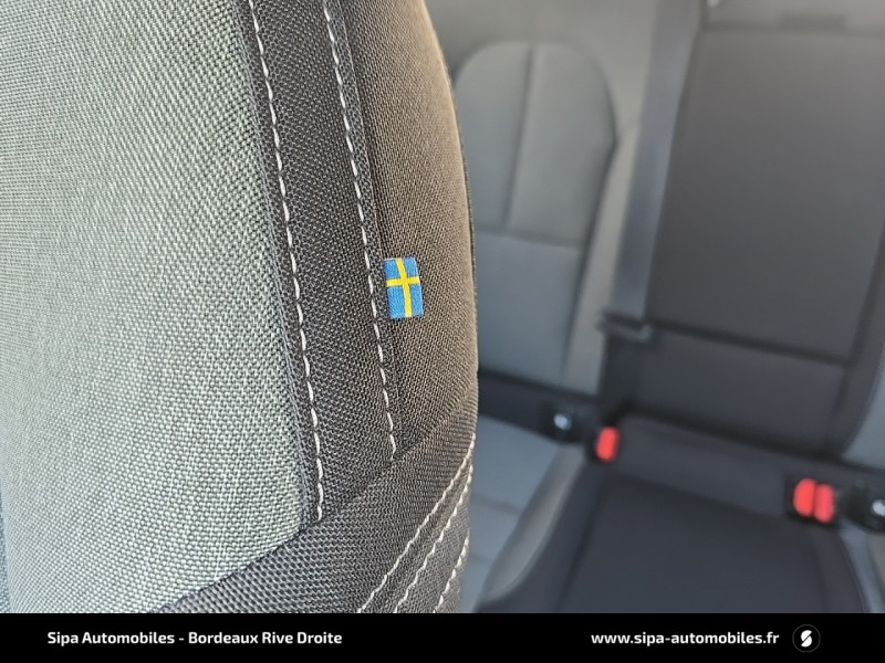 City Safety, système d'anticipation de collision intelligent : Détection des véhicules, cyclistes et piétons avec freinage automatique à pleine puissance. Détection des véhicules aux intersections avec freinage automatique à pleine puissance. Avertissement visuel et sonore paramétrable. Préparation des freins et ceintures de sécurité AV. / Climatisation automatique bi-zone (incluant ouïes d'aération à l'AR) / Commande vocale avancée (climatisation, médias, téléphone, eManuel utilisateur et navigation) / Déclenchement automatique des feux de detresse lors d'un freinage d'urgence / Envoi automatique d'une alerte au service d'urgence Volvo en cas de collision / Fonction climatisation de l'habitacle moteur coupé / Frein de parking électronique automatique en fonction Auto Hold (désactivable) / Freinage automatique post-collision (réduction du risque de suraccident) / Jantes alliage 18" 5 branches Noir/Diamant 235/55 R18 / Phares LED avec feux de jour design marteau de Thor et feux de route adaptatifs / Pneus toutes saisons (sur jantes 18" et 19") / Pré-câblage électrique pour le crochet d'attelage / Sensus Connect avec Pack Navigation / Seuils de portes AV Volvo en Aluminium / Télécommande de verrouillage centralisé avec clé de contact intégrée, fermeture à distance des vitres et du toit ouvrant et fonction panique / Verrouillage automatique des portes à partir de 7 km/h / Volant sport en Cuir avec insert Aluminium / Accès au service d'assistance Volvo via bouton dédié dans le plafonnier / Accès au service d'urgence Volvo via bouton SOS dans le plafonnier / Airbag conducteur à déclenchement différencié / Airbag passager désactivable avec témoin d'indication (on/off) / Alerte vigilance conducteur / Application Volvo Cars / Assise des sièges AV extensible manuellement / Badge T4/T5 Recharge sur le hayon / Bas de caisse et passages de roues Anthracite / Ceintures de sécuritéà inertie à 3 points d'ancrage (sur les 5 sièges) / Combiné d'instruments digital 12,3" / Contour de la calandre chromé / Contrôle de la transmission en descente HDC / Câble de recharge de 4,5 mètres / 10 A / Direction assistée asservie à la vitesse / Eclairage d'accompagnement et éclairage d'approche / Eclairage d'intérieur : Spots de lecture à l'AV avec éclairage des passagers AV, éclairages dans le coffre (x2). Miroirs de courtoisie éclairés avec éclairage d'ambiance au niveau des pieds. Boîte à gants éclairée / Ecran tactile multimédia haute résolution 9" personnalisable / Espace de rangement sous la console centrale / Fonction Eco : optimisation des paramètres véhicule pour une conduite économique et écologique (à la demande) / Fonction Stop&Start : coupe et redémarre le moteur lorsque la voiture est à l'arrêt (déconnectable) / Gravure Recharge sur les montants AR / Hayon électrique avec fonction Confort / Incrustations Urban Grid / Indicateur de perte de pression des pneus / Kit anti-crevaison / Matériaux anti-allergènes dans l'habitacle (sellerie tissu, ceintures de sécurité, incrustations) / Miroirs de courtoisie éclairés, spots de lecture à l'AV et éclairage dans le coffre / Ouverture des portes sans clé Keyless Entry incluant éclairage du sol dans les poignées de porte AV / Pare-brise en verre feuilleté et colonne de direction rétractable en cas de choc / Pistage du véhicule par le service en cas de vol du véhicule / Port de recharge sur l'aile AV gauche / Porte-cartes bancaires et cartes de services intégré dans la planche de bord / Porte-ticket de parking et d?autoroute / Protection de pare-chocs AV et AR Noir / Préparation pour le système Isofix (places latérales de la 2ème rangée de sièges) / Rappel d'oubli de bouclage de ceinture de sécurité AV et AR / Réglage en hauteur manuel des ceintures AV / Rétroviseur intérieur électrochrome sans contour / Rétroviseurs couleur carrosserie avec partie inférieure noir / Sabots de protection AV et AR Noir / Sièges conducteur et passager avec réglage électriques des supports lombaires 4 positions / Sonde de température extérieure et horloge / Sortie d'échappement non visible / Système audio Volvo Premium Sound by Harman/Kardon 600 W avec 13 HP et technologie Subwoofer / Système de contrôle de la stabilité et de la traction STC / Système de contrôle du freinage du véhicule VDC / Système de filtration de l'air CleanZone Advanced avec indication de la qualité de l'air intérieur / Système de protection anti-sortie de route / Système de protection collision frontale : Détection du risque de collision frontale (de 65 à 140 km/h) avec action corrective sur la direction / Système de protection contre le coup du lapin WHIPS (sièges AV) / Système de protection contre les chocs latéraux SIPS / Système de protection en cas de sortie de route / Système de pré-conditionnement de l'habitacle (chauffage) / Système de recharge sans fil pour smartphone situé dans le compartiment de rangement AV / Système de réglage en hauteur des phares / Système intelligent d'information au conducteur IDIS / Sécurité enfant à commande électrique / Tapis de sol textile AV/AR / Trappe de carburant intelligente sans bouchon / Trousse de 1er secours et triangle de présignalisation / Tunnel de la console centrale Anthracite / Verrouillage de sécurité enfant manuel / Vitres AV et AR électriques à impulsion (montée et descente) avec système anti-pincement