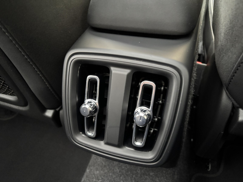 Caméras Surround View (vision panoramique à 360°) incluant caméra AV, caméra de recul et assistance de stationnement semi-automatique / City Safety, système d'anticipation de collision intelligent : Détection des véhicules, cyclistes et piétons avec freinage automatique à pleine puissance. Détection des véhicules aux intersections avec freinage automatique à pleine puissance. Avertissement visuel et sonore paramétrable. Préparation des freins et ceintures de sécurité AV. / Climatisation automatique bi-zone (incluant ouïes d'aération à l'AR) Inclus un système de recirculation de l'air et un filtre à pollen / Déclenchement automatique des feux de detresse lors d'un freinage d'urgence / Envoi automatique d'une alerte au service d'urgence Volvo en cas de collision / Fonction climatisation de l'habitacle moteur coupé / Frein de parking électronique automatique en fonction Auto Hold (désactivable) / Freinage automatique post-collision (réduction du risque de suraccident) / Jantes alliage 19" 5 branches Y Noir Mat/Diamant 235/50 R19 / Phares LED avec feux de jour design marteau de Thor et feux de route adaptatifs / Pré-câblage électrique pour le crochet d'attelage / Radar de stationnement AR avec signal sonore et visuel / Seuils de portes AV Volvo en Aluminium / Toit ouvrant panoramique avec rideau pare soleil intégréà commande électrique / Télécommande de verrouillage centralisé avec clé de contact intégrée, fermeture à distance des vitres et du toit ouvrant et fonction panique (déclenchement du klaxon et des feux de détresse) / Verrouillage automatique des portes à partir de 7 km/h / Volant sport en Cuir avec insert Aluminium / Accès au service d'assistance Volvo via bouton dédié dans le plafonnier / Accès au service d'urgence Volvo via bouton SOS dans le plafonnier / Airbag passager désactivable avec témoin d'indication (on/off) / Airbags conducteur et passager à déclenchement différencié / Alerte vigilance conducteur / Application Volvo Cars / Assise des sièges AV extensible manuellement / Assistant d'arrêt d'urgence, qui peut faire ralentir le véhicule jusqu'à l'arrêt en cas d'absence de réaction du conducteur aux signaux d'alerte / Bas de caisse et passages de roues Anthracite / Calandre avec contour et lamelles horizontales noir brillant / Ceintures de sécuritéà inertie à 3 points d'ancrage (sur les 5 sièges) / Combiné d'instruments digital 12,3" / Contrôle de la transmission en descente HDC / Coques de rétroviseurs noires / Direction assistée électrique asservie à la vitesse / Eclairage d'accompagnement et éclairage d'approche / Eclairage d'intérieur : Spots de lecture à l'AV avec éclairage des passagers AV, éclairages dans le coffre (x2). Miroirs de courtoisie éclairés avec éclairage d'ambiance au niveau des pieds. Boîte à gants éclairée / Ecran tactile multimédia haute résolution 9" personnalisable / Espace de rangement sous la console centrale / Filtre à particules sans entretien (réduction des émissions de particules) / Fonction Eco : optimisation des paramètres véhicule pour une conduite économique et écologique (à la demande) / Fonction Stop&Start : coupe et redémarre le moteur lorsque la voiture est à l'arrêt (déconnectable) / Garniture finition noir brillant de la partie inférieure des vitres latérales / Hayon électrique avec fonction Confort / Indicateur de perte de pression des pneus / Infotainment Volvo Car UX Services Google (comprend Google Maps, Google Assistant, Google Play Store et un volume de données illimité pour les 4 premières années). Kit mains libres Bluetooth et Streaming Audio, mode d'emploi numérique du véhicule, réception de la radio numérique (DAB+), mises à jour à distance Over the Air (OTA) / Kit anti-crevaison / Matériaux anti-allergènes dans l'habitacle (sellerie tissu, ceintures de sécurité, incrustations) / Miroirs de courtoisie éclairés, spots de lecture à l'AV et éclairage dans le coffre / Ouverture des portes sans clé Keyless Entry incluant éclairage du sol dans les poignées de porte AV / Pare-brise en verre feuilleté et colonne de direction rétractable en cas de choc / Pistage du véhicule par le service d'urgence Volvo en cas de vol du véhicule / Plaques décoratives AV/AR noir finition noir brillant / Porte-cartes bancaires et cartes de services intégré dans la planche de bord / Protection de pare-chocs AV et AR Noir / Préparation pour le système Isofix (places latérales de la 2ème rangée de sièges) / Rails de toit Noir brillant / Rappel d'oubli de bouclage de ceinture de sécurité AV et AR / Réglage en hauteur manuel des ceintures AV / Régulateur adaptatif de vitesse et de distance ACC / Rétroviseur intérieur électrochrome sans contour / Sabots de protection AV et AR Noir / Sièges AV à commande électrique avec fonction de mémoire pour la position d'assise et les rétroviseurs extérieurs / Sièges conducteur et passager avec réglage électriques des supports lombaires 4 positions / Sonde de température extérieure et horloge / Sortie d'échappement non visible / Système audio Volvo Premium Sound by Harman/Kardon 600 W avec 13 HP et technologie Subwoofer / Système de contrôle de la stabilité et de la traction STC / Système de contrôle du freinage du véhicule VDC / Système de filtration de l'air CleanZone Advanced avec indication de la qualité de l'air intérieur / Système de protection anti-sortie de route Détection du risque de sortie de route (avec ou sans marquage au sol, de 65 à 140 km/h) avec action corrective sur la direction et, si nécessaire, sur les freins / Système de protection collision frontale : Détection du risque de collision frontale (de 65 à 140 km/h) avec action corrective sur la direction / Système de protection contre le coup du lapin WHIPS (sièges AV) / Système de protection contre les chocs latéraux SIPS / Système de protection en cas de sortie de route Ceintures
