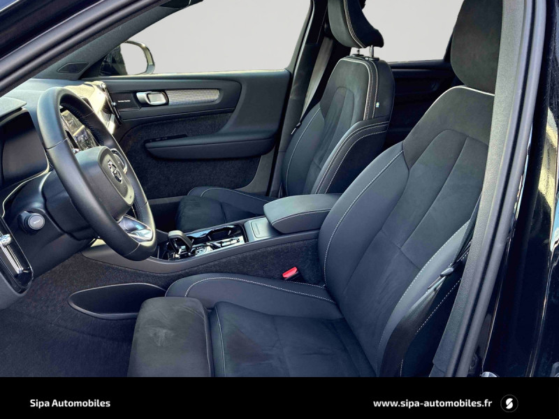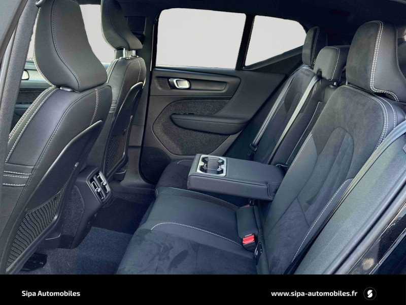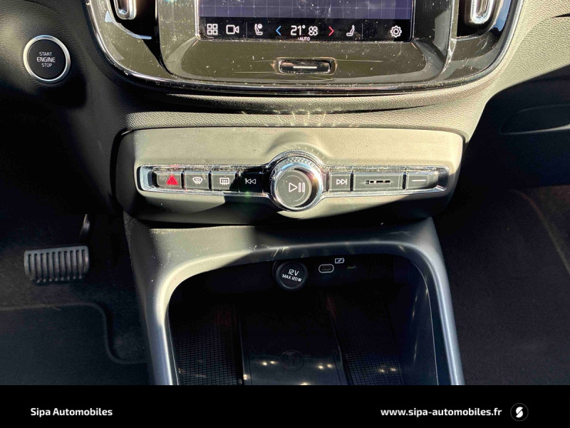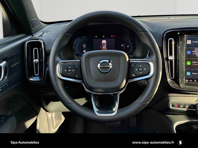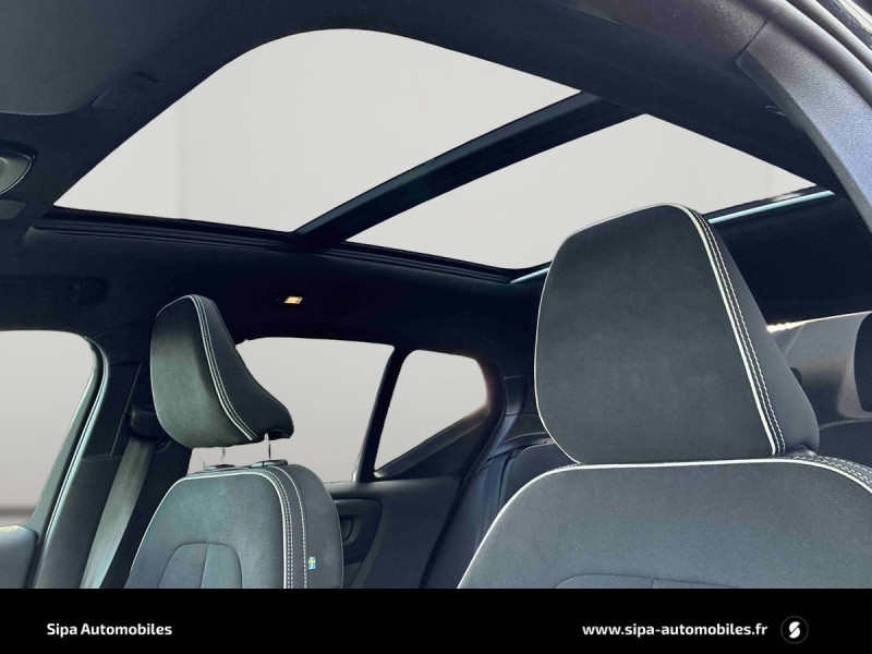 Caméras Surround View (vision panoramique à 360°) incluant caméra AV, caméra de recul et assistance de stationnement semi-automatique / City Safety, système d'anticipation de collision intelligent : Détection des véhicules, cyclistes et piétons avec freinage automatique à pleine puissance. Détection des véhicules aux intersections avec freinage automatique à pleine puissance. Avertissement visuel et sonore paramétrable. Préparation des freins et ceintures de sécurité AV. / Climatisation automatique bi-zone (incluant ouïes d'aération à l'AR) Inclus un système de recirculation de l'air et un filtre à pollen / Déclenchement automatique des feux de detresse lors d'un freinage d'urgence / Envoi automatique d'une alerte au service d'urgence Volvo en cas de collision / Fonction climatisation de l'habitacle moteur coupé / Frein de parking électronique automatique en fonction Auto Hold (désactivable) / Freinage automatique post-collision (réduction du risque de suraccident) / Jantes alliage 19" 5 branches Y Noir Mat/Diamant 235/50 R19 / Phares LED avec feux de jour design marteau de Thor et feux de route adaptatifs / Pré-câblage électrique pour le crochet d'attelage / Radar de stationnement AR avec signal sonore et visuel / Seuils de portes AV Volvo en Aluminium / Toit ouvrant panoramique avec rideau pare soleil intégréà commande électrique / Télécommande de verrouillage centralisé avec clé de contact intégrée, fermeture à distance des vitres et du toit ouvrant et fonction panique (déclenchement du klaxon et des feux de détresse) / Verrouillage automatique des portes à partir de 7 km/h / Volant sport en Cuir avec insert Aluminium / Accès au service d'assistance Volvo via bouton dédié dans le plafonnier / Accès au service d'urgence Volvo via bouton SOS dans le plafonnier / Airbag passager désactivable avec témoin d'indication (on/off) / Airbags conducteur et passager à déclenchement différencié / Alerte vigilance conducteur / Application Volvo Cars / Assise des sièges AV extensible manuellement / Assistant d'arrêt d'urgence, qui peut faire ralentir le véhicule jusqu'à l'arrêt en cas d'absence de réaction du conducteur aux signaux d'alerte / Bas de caisse et passages de roues Anthracite / Calandre avec contour et lamelles horizontales noir brillant / Ceintures de sécuritéà inertie à 3 points d'ancrage (sur les 5 sièges) / Combiné d'instruments digital 12,3" / Contrôle de la transmission en descente HDC / Coques de rétroviseurs noires / Direction assistée électrique asservie à la vitesse / Eclairage d'accompagnement et éclairage d'approche / Eclairage d'intérieur : Spots de lecture à l'AV avec éclairage des passagers AV, éclairages dans le coffre (x2). Miroirs de courtoisie éclairés avec éclairage d'ambiance au niveau des pieds. Boîte à gants éclairée / Ecran tactile multimédia haute résolution 9" personnalisable / Espace de rangement sous la console centrale / Filtre à particules sans entretien (réduction des émissions de particules) / Fonction Eco : optimisation des paramètres véhicule pour une conduite économique et écologique (à la demande) / Fonction Stop&Start : coupe et redémarre le moteur lorsque la voiture est à l'arrêt (déconnectable) / Garniture finition noir brillant de la partie inférieure des vitres latérales / Hayon électrique avec fonction Confort / Indicateur de perte de pression des pneus / Infotainment Volvo Car UX Services Google (comprend Google Maps, Google Assistant, Google Play Store et un volume de données illimité pour les 4 premières années). Kit mains libres Bluetooth et Streaming Audio, mode d'emploi numérique du véhicule, réception de la radio numérique (DAB+), mises à jour à distance Over the Air (OTA) / Kit anti-crevaison / Matériaux anti-allergènes dans l'habitacle (sellerie tissu, ceintures de sécurité, incrustations) / Miroirs de courtoisie éclairés, spots de lecture à l'AV et éclairage dans le coffre / Ouverture des portes sans clé Keyless Entry incluant éclairage du sol dans les poignées de porte AV / Pare-brise en verre feuilleté et colonne de direction rétractable en cas de choc / Pistage du véhicule par le service d'urgence Volvo en cas de vol du véhicule / Plaques décoratives AV/AR noir finition noir brillant / Porte-cartes bancaires et cartes de services intégré dans la planche de bord / Protection de pare-chocs AV et AR Noir / Préparation pour le système Isofix (places latérales de la 2ème rangée de sièges) / Rails de toit Noir brillant / Rappel d'oubli de bouclage de ceinture de sécurité AV et AR / Réglage en hauteur manuel des ceintures AV / Régulateur adaptatif de vitesse et de distance ACC / Rétroviseur intérieur électrochrome sans contour / Sabots de protection AV et AR Noir / Sièges AV à commande électrique avec fonction de mémoire pour la position d'assise et les rétroviseurs extérieurs / Sièges conducteur et passager avec réglage électriques des supports lombaires 4 positions / Sonde de température extérieure et horloge / Sortie d'échappement non visible / Système audio Volvo Premium Sound by Harman/Kardon 600 W avec 13 HP et technologie Subwoofer / Système de contrôle de la stabilité et de la traction STC / Système de contrôle du freinage du véhicule VDC / Système de filtration de l'air CleanZone Advanced avec indication de la qualité de l'air intérieur / Système de protection anti-sortie de route Détection du risque de sortie de route (avec ou sans marquage au sol, de 65 à 140 km/h) avec action corrective sur la direction et, si nécessaire, sur les freins / Système de protection collision frontale : Détection du risque de collision frontale (de 65 à 140 km/h) avec action corrective sur la direction / Système de protection contre le coup du lapin WHIPS (sièges AV) / Système de protection contre les chocs latéraux SIPS / Système de protection en cas de sortie de route Ceintures