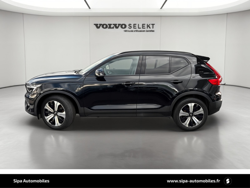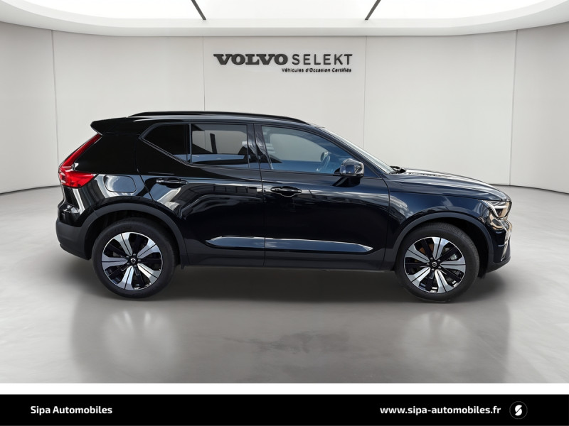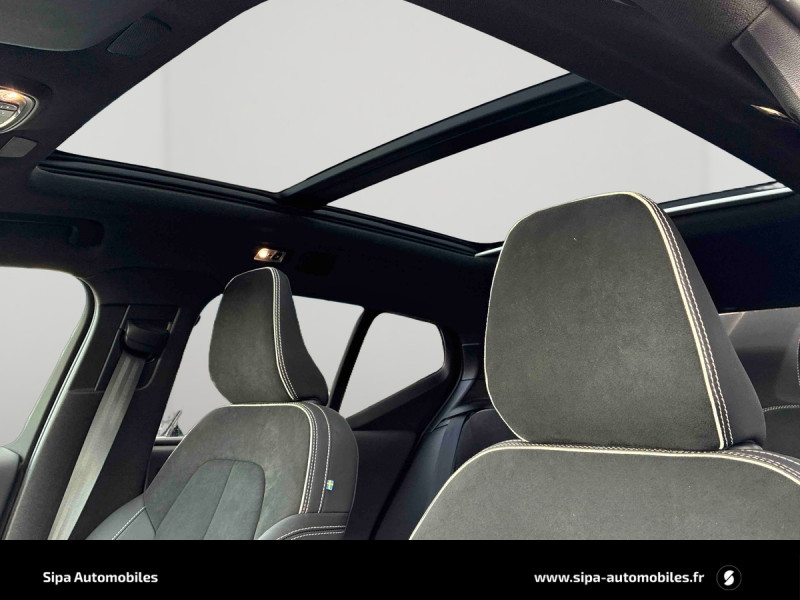 City Safety, système d'anticipation de collision intelligent : Détection des véhicules, cyclistes et piétons avec freinage automatique à pleine puissance. Détection des véhicules aux intersections avec freinage automatique à pleine puissance. Avertissement visuel et sonore paramétrable. Préparation des freins et ceintures de sécurité AV. / Climatisation automatique bi-zone (incluant ouïes d'aération à l'AR) / Commande vocale avancée (climatisation, médias, téléphone, eManuel utilisateur et navigation) / Déclenchement automatique des feux de detresse lors d'un freinage d'urgence / Envoi automatique d'une alerte au service d'urgence Volvo en cas de collision / Fonction climatisation de l'habitacle moteur coupé / Frein de parking électronique automatique en fonction Auto Hold (désactivable) / Freinage automatique post-collision (réduction du risque de suraccident) / Jantes alliage 19" 5 branches doubles Noir/Diamant 235/50 R19 / Phares LED avec feux de jour design marteau de Thor et feux de route adaptatifs / Pneus toutes saisons (sur jantes 18" et 19") / Pré-câblage électrique pour le crochet d'attelage / Sensus Connect avec Pack Navigation / Seuils de portes AV Volvo en Aluminium / Toit ouvrant panoramique avec rideau pare soleil intégréà commande électrique / Télécommande de verrouillage centralisé avec clé de contact intégrée, fermeture à distance des vitres et du toit ouvrant et fonction panique / Verrouillage automatique des portes à partir de 7 km/h / Volant sport en Cuir avec insert Aluminium / Accès au service d'assistance Volvo via bouton dédié dans le plafonnier / Accès au service d'urgence Volvo via bouton SOS dans le plafonnier / Airbag conducteur à déclenchement différencié / Airbag passager désactivable avec témoin d'indication (on/off) / Alerte vigilance conducteur / Application Volvo Cars / Assise des sièges AV extensible manuellement / Badge T4/T5 Recharge sur le hayon / Bas de caisse et passages de roues Anthracite / Ceintures de sécuritéà inertie à 3 points d'ancrage (sur les 5 sièges) / Combiné d'instruments digital 12,3" / Contour de la calandre chromé / Contrôle de la transmission en descente HDC / Câble de recharge de 4,5 mètres / 10 A / Direction assistée asservie à la vitesse / Eclairage d'accompagnement et éclairage d'approche / Eclairage d'intérieur : Spots de lecture à l'AV avec éclairage des passagers AV, éclairages dans le coffre (x2). Miroirs de courtoisie éclairés avec éclairage d'ambiance au niveau des pieds. Boîte à gants éclairée / Ecran tactile multimédia haute résolution 9" personnalisable / Espace de rangement sous la console centrale / Fonction Eco : optimisation des paramètres véhicule pour une conduite économique et écologique (à la demande) / Fonction Stop&Start : coupe et redémarre le moteur lorsque la voiture est à l'arrêt (déconnectable) / Gravure Recharge sur les montants AR / Hayon électrique avec fonction Confort / Incrustations Urban Grid / Indicateur de perte de pression des pneus / Kit anti-crevaison / Matériaux anti-allergènes dans l'habitacle (sellerie tissu, ceintures de sécurité, incrustations) / Miroirs de courtoisie éclairés, spots de lecture à l'AV et éclairage dans le coffre / Ouverture des portes sans clé Keyless Entry incluant éclairage du sol dans les poignées de porte AV / Pare-brise en verre feuilleté et colonne de direction rétractable en cas de choc / Pistage du véhicule par le service en cas de vol du véhicule / Port de recharge sur l'aile AV gauche / Porte-cartes bancaires et cartes de services intégré dans la planche de bord / Porte-ticket de parking et d?autoroute / Protection de pare-chocs AV et AR Noir / Préparation pour le système Isofix (places latérales de la 2ème rangée de sièges) / Rappel d'oubli de bouclage de ceinture de sécurité AV et AR / Réglage en hauteur manuel des ceintures AV / Rétroviseur intérieur électrochrome sans contour / Rétroviseurs couleur carrosserie avec partie inférieure noir / Sabots de protection AV et AR Noir / Sièges conducteur et passager avec réglage électriques des supports lombaires 4 positions / Sonde de température extérieure et horloge / Sortie d'échappement non visible / Système audio Volvo Premium Sound by Harman/Kardon 600 W avec 13 HP et technologie Subwoofer / Système de contrôle de la stabilité et de la traction STC / Système de contrôle du freinage du véhicule VDC / Système de filtration de l'air CleanZone Advanced avec indication de la qualité de l'air intérieur / Système de protection anti-sortie de route / Système de protection collision frontale : Détection du risque de collision frontale (de 65 à 140 km/h) avec action corrective sur la direction / Système de protection contre le coup du lapin WHIPS (sièges AV) / Système de protection contre les chocs latéraux SIPS / Système de protection en cas de sortie de route / Système de pré-conditionnement de l'habitacle (chauffage) / Système de recharge sans fil pour smartphone situé dans le compartiment de rangement AV / Système de réglage en hauteur des phares / Système intelligent d'information au conducteur IDIS / Sécurité enfant à commande électrique / Tapis de sol textile AV/AR / Trappe de carburant intelligente sans bouchon / Trousse de 1er secours et triangle de présignalisation / Tunnel de la console centrale Anthracite / Verrouillage de sécurité enfant manuel / Vitres AV et AR électriques à impulsion (montée et descente) avec système anti-pincement