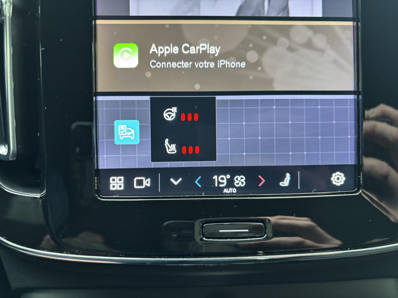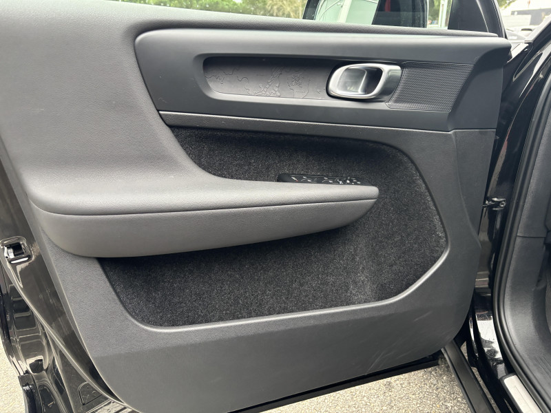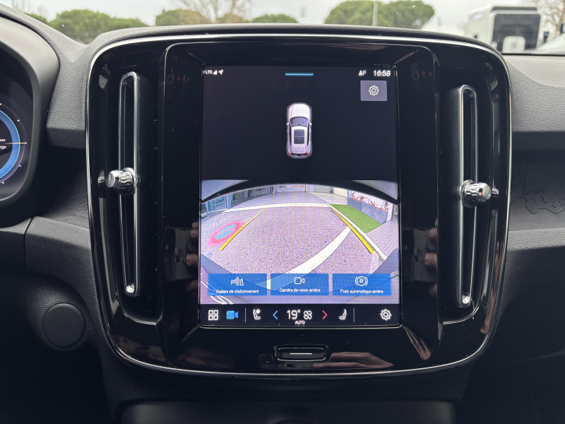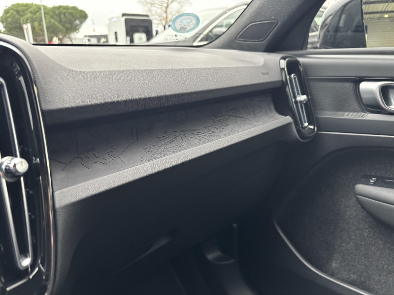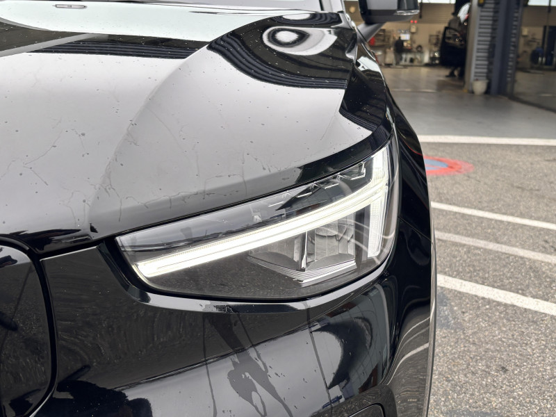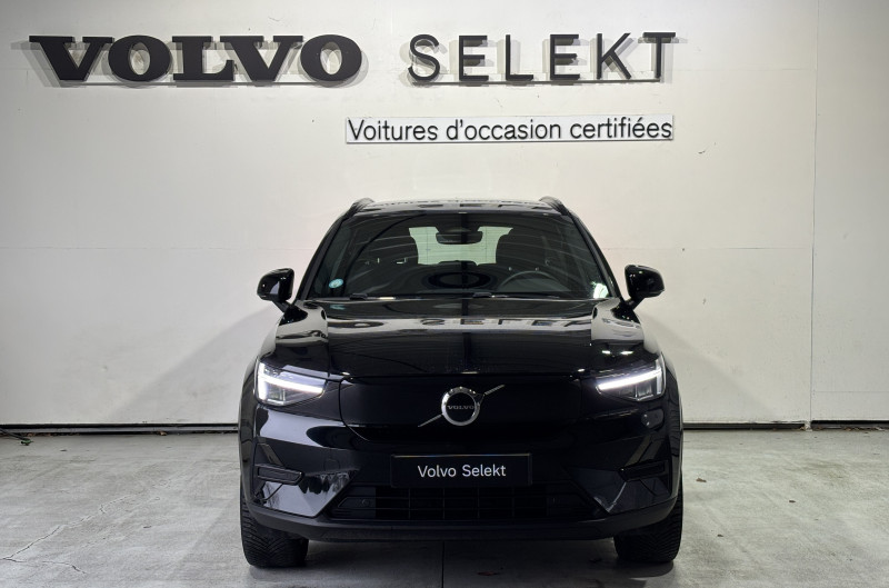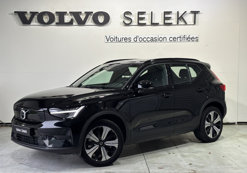 CleanZone : Filtre charbon de climatisation multi-actif (limite l'entrée de pollen, de particules de pollution et de mauvaises odeurs en fermant automatiquement les arrivées d'air si nécessaire) et fonction pré-ventillation / Climatisation automatique bi-zone (incluant ouïes d'aération à l'AR) / Déclenchement automatique des feux de detresse lors d'un freinage d'urgence / Envoi automatique d'une alerte au service d'urgence Volvo en cas de collision / Fonction climatisation de l'habitacle moteur coupé / Frein de parking électronique automatique en fonction Auto Hold (désactivable) / Freinage automatique post-collision (réduction du risque de suraccident) / Incrustations Aluminium / Jantes alliage 19" 5 branches Graphite Mat/Diamant AV 235/50 R19, AR 255/45 R19 / Phares LED avec feux de jour design marteau de Thor et feux de route adaptatifs / Pommeau de levier de vitesse gainé de Simili-Cuir / Pré-câblage électrique pour le crochet d'attelage / Seuil de coffre en Aluminium / Seuils de portes AV Volvo en Aluminium / Télécommande de verrouillage centralisé avec clé de contact intégrée, fermeture à distance des vitres et du toit ouvrant et fonction panique / Verrouillage automatique des portes à partir de 7 km/h / Volant sport avec insert Aluminium / 2 porte-cintres / Accès au service d'assistance Volvo via bouton dédié dans le plafonnier / Accès au service d'urgence Volvo via bouton SOS dans le plafonnier / Airbag passager désactivable avec témoin d'indication (on/off) / Airbags conducteur et passager à déclenchement différencié / Alerte vigilance conducteur / Application Volvo Cars sur smartphone iOS ou Android / Assise des sièges AV extensible manuellement / Assistance à l'évitement des piétons et des cyclistes / Badge Recharge sur le hayon / Bas de caisse et passages de roues Anthracite / Calandre AV pleine couleur carrosserie / Ceintures de sécuritéà inertie à 3 points d'ancrage (sur les 5 sièges) / City Safety, système d'anticipation de collision intelligent / Coffre sous le capot AV d'une capacité de 31 litres / Combiné d'instruments digital 12,3" / Contrôle de la transmission en descente HDC / Coques de rétroviseurs Noir brillant / Corbeille intégrée et amovible au niveau du tunnel central AV / Crochet pour sacs intégréà la boîte à gants / Câble de recharge de 7 mètres / 10 A. Pour prise secteur / Deuxième câble de recharge Type 2, 4.5 mètres, 32 A triphasé (fonctionne en monophasé) Pour borne de recharge / Diffuseur AR Noir laqué / Direction assistée asservie à la vitesse / Eclairage d'accompagnement et éclairage d'approche / Ecran tactile multimédia haute résolution 9" personnalisable / Espace de rangement sous la console centrale / Fonction Eco : optimisation des paramètres véhicule pour une conduite économique et écologique (à la demande) / Gravure Recharge sur les montants AR / Indicateur de perte de pression des pneus / Infotainment Google Android Services Google (comprend Google Maps, Google Assistant, Google Play Store, chargeur smartphone par induction et un volume de données illimité pour les 4 premières années) et Kit mains libres Bluetooth et Streaming Audio, mode d?emploi numérique du véhicule, réception de la radio numérique (DAB+), mises à jour Over the Air (OTA). / Kit anti-crevaison / Matériaux anti-allergènes dans l'habitacle (sellerie tissu, ceintures de sécurité, incrustations) / Miroirs de courtoisie éclairés, spots de lecture à l'AV et éclairage dans le coffre / Mise à jour du système à distance / Pare-brise en verre feuilleté et colonne de direction rétractable en cas de choc / Parties inférieures des vitres noir brillant / Pneus toutes saison / Port de recharge sur l'aile AR gauche et connecteur charge rapide (jusqu'à 150 kW) / Porte-cartes bancaires et cartes de services intégré dans la planche de bord / Protections de pare-chocs AV et AR Noir brillant / Préparation pour le système Isofix (places latérales de la 2ème rangée de sièges) / Rappel d'oubli de bouclage des ceintures de sécurité AV et AR / Réglage en hauteur manuel des ceintures AV / Rétroviseurs couleur carrosserie avec partie inférieure noir / Rétroviseurs intérieur (sans contour) et extérieur électrochrome / Sabots de protection AV et AR Noir / Siège conducteur et passager avec réglage manuel de la hauteur / Sièges conducteur et passager avec réglage manuel de la longueur, de l'inclinaison du dossier et de l'assise / Sièges conducteur et passager avec réglages électriques des supports lombaires / Sonde de température extérieure et horloge / Système audio Volvo High Performance avec technologie air woofer au niveau de la console centrale 250 W, 8 HP, radio numérique terrestre, prise 12 V et 2 ports USB C à l'AV / Système de contrôle de la stabilité et de la traction STC / Système de contrôle du freinage du véhicule VDC / Système de protection anti-sortie de route / Système de protection collision frontale : Détection du risque de collision frontale (de 65 à 140 km/h) avec action corrective sur la direction / Système de protection contre le coup du lapin WHIPS (sièges AV) / Système de protection contre les chocs latéraux SIPS / Système de protection en cas de sortie de route / Système de pré-conditionnement de l'habitacle (chauffage) / Système de réglage en hauteur des phares / Système intelligent d'information au conducteur IDIS / Tapis de sol premium / Trousse de 1er secours et triangle de présignalisation / Tunnel de la console centrale Noir brillant / Verrouillage de sécurité enfant manuel / Vitres AV et AR électriques à impulsion (montée et descente) avec système anti-pincement