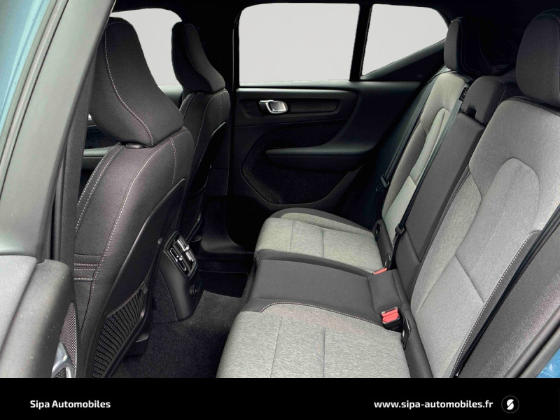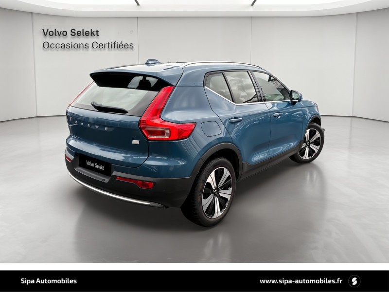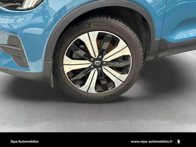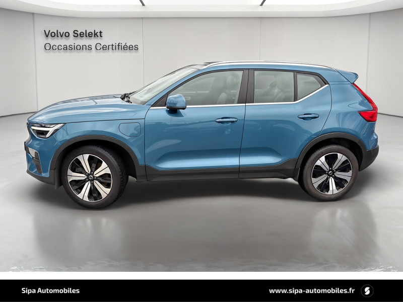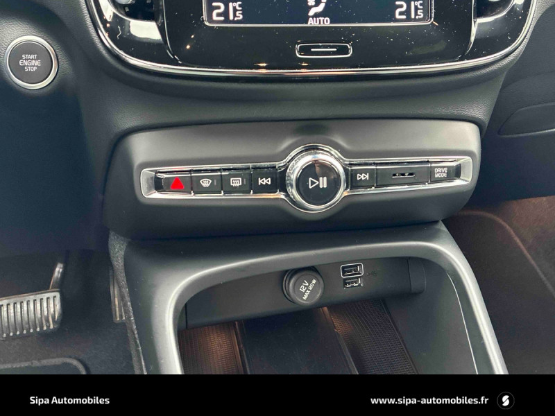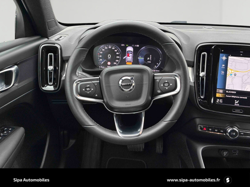 City Safety, système d'anticipation de collision intelligent : Détection des véhicules, cyclistes et piétons avec freinage automatique à pleine puissance. Détection des véhicules aux intersections avec freinage automatique à pleine puissance. Avertissement visuel et sonore paramétrable. Préparation des freins et ceintures de sécurité AV. / CleanZone : Filtre charbon de climatisation multi-actif AQS (limite l'entrée de pollen, de particules de pollution et de mauvaises odeurs en fermant automatiquement les arrivées d'air si nécessaire) et fonction pré-ventillation / Climatisation automatique bi-zone (incluant ouïes d'aération à l'AR) / Commande vocale avancée (climatisation, médias, téléphone, eManuel utilisateur et navigation) / Déclenchement automatique des feux de detresse lors d'un freinage d'urgence / Envoi automatique d'une alerte au service d'urgence Volvo en cas de collision / Fonction climatisation de l'habitacle moteur coupé / Frein de parking électronique automatique en fonction Auto Hold (désactivable) / Freinage automatique post-collision (réduction du risque de suraccident) / Jantes alliage 18" 5 branches Noir/Diamant 235/55 R18 / Phares LED avec feux de jour design marteau de Thor et feux de route adaptatifs / Pneus toutes saisons (sur jantes 18" et 19") / Pré-câblage électrique pour le crochet d'attelage / Sensus Connect avec Pack Navigation / Télécommande de verrouillage centralisé avec clé de contact intégrée, fermeture à distance des vitres et du toit ouvrant et fonction panique / Verrouillage automatique des portes à partir de 7 km/h / Volant sport en Cuir avec insert Aluminium / Accès au service d'assistance Volvo via bouton dédié dans le plafonnier / Accès au service d'urgence Volvo via bouton SOS dans le plafonnier / Airbag conducteur à déclenchement différencié / Airbag passager désactivable avec témoin d'indication (on/off) / Alerte vigilance conducteur / Application Volvo Cars / Assise des sièges AV extensible manuellement / Badge T4/T5 Recharge sur le hayon / Bas de caisse et passages de roues Anthracite / Ceintures de sécuritéà inertie à 3 points d'ancrage (sur les 5 sièges) / Combiné d'instruments digital 12,3" / Contour de la calandre chromé / Contrôle de la transmission en descente HDC / Câble de recharge de 4,5 mètres / 10 A / Direction assistée asservie à la vitesse / Eclairage d'accompagnement et éclairage d'approche / Eclairage d'intérieur : Spots de lecture à l'AV avec éclairage des passagers AV, éclairages dans le coffre (x2). Miroirs de courtoisie éclairés avec éclairage d'ambiance au niveau des pieds. Boîte à gants éclairée / Ecran tactile multimédia haute résolution 9" personnalisable / Espace de rangement sous la console centrale / Fonction Eco : optimisation des paramètres véhicule pour une conduite économique et écologique (à la demande) / Fonction Stop&Start : coupe et redémarre le moteur lorsque la voiture est à l'arrêt (déconnectable) / Gravure Recharge sur les montants AR / Hayon électrique avec fonction Confort / Incrustations Urban Grid / Indicateur de perte de pression des pneus / Kit anti-crevaison / Matériaux anti-allergènes dans l'habitacle (sellerie tissu, ceintures de sécurité, incrustations) / Miroirs de courtoisie éclairés, spots de lecture à l'AV et éclairage dans le coffre / Ouverture des portes sans clé Keyless Entry incluant éclairage du sol dans les poignées de porte AV / Pare-brise en verre feuilleté et colonne de direction rétractable en cas de choc / Pistage du véhicule par le service en cas de vol du véhicule / Port de recharge sur l'aile AV gauche / Porte-cartes bancaires et cartes de services intégré dans la planche de bord / Porte-ticket de parking et d?autoroute / Protection de pare-chocs AV et AR Noir / Préparation pour le système Isofix (places latérales de la 2ème rangée de sièges) / Rails de toit Chromés / Rappel d'oubli de bouclage de ceinture de sécurité AV et AR / Réglage en hauteur manuel des ceintures AV / Rétroviseur intérieur électrochrome sans contour / Rétroviseurs couleur carrosserie avec partie inférieure noir / Sabots de protection AV et AR Noir / Sièges conducteur et passager avec réglage manuel de la hauteur / Sièges conducteur et passager avec réglage manuel de la longueur, de l'inclinaison du dossier et de l'assise / Sièges conducteur et passager avec réglage électriques des supports lombaires 4 positions / Sonde de température extérieure et horloge / Sortie d'échappement non visible / Système audio Volvo High Performance avec technologie air woofer au niveau de la console centrale 250 W, 8 HP et radio RDS / Système de contrôle de la stabilité et de la traction STC / Système de contrôle du freinage du véhicule VDC / Système de protection anti-sortie de route / Système de protection collision frontale : Détection du risque de collision frontale (de 65 à 140 km/h) avec action corrective sur la direction / Système de protection contre le coup du lapin WHIPS (sièges AV) / Système de protection contre les chocs latéraux SIPS / Système de protection en cas de sortie de route / Système de pré-conditionnement de l'habitacle (chauffage) / Système de recharge sans fil pour smartphone situé dans le compartiment de rangement AV / Système de réglage en hauteur des phares / Système intelligent d'information au conducteur IDIS / Sécurité enfant à commande électrique / Tapis de sol textile AV/AR / Trappe de carburant intelligente sans bouchon / Trousse de 1er secours et triangle de présignalisation / Tunnel de la console centrale Anthracite / Verrouillage de sécurité enfant manuel / Vitres AV et AR électriques à impulsion (montée et descente) avec système anti-pincement