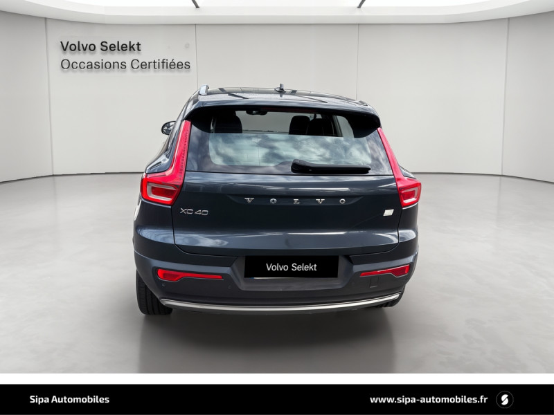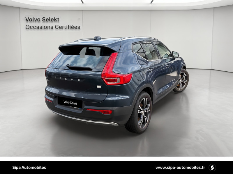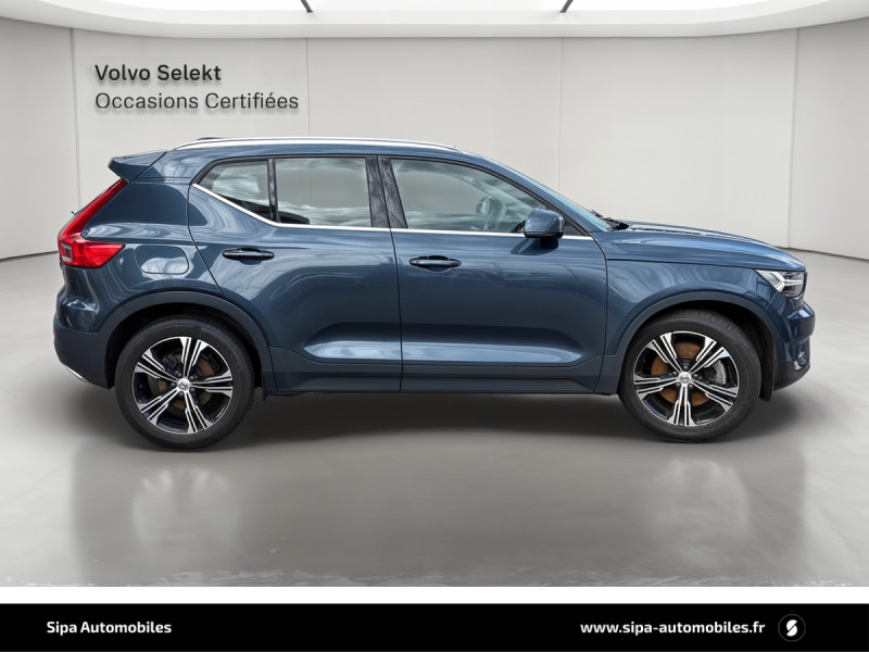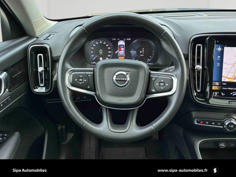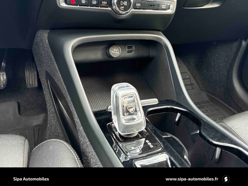 Antibrouillard AV à LED avec éclairage d'intersection / Assise et dossier des sièges en Cuir / CleanZone : filtre à charbon de climatisation multi-actif et fonction pré-ventilation / Climatisation automatique bi-zone Inclut boîte à gants réfrigérée et ouïes d'aération à l'AR / Clé Inscription gainée de cuir / Commande vocale avancée (climatisation, médias, téléphone, eManuel utilisateur et navigation) / Déclenchement automatique des feux de detresse lors d'un freinage d'urgence / Fonction climatisation de l'habitacle moteur coupé / Frein de parking électronique automatique en fonction Auto Hold (désactivable) / Freinage automatique post-collision (réduction du risque de suraccident) / Incrustations Bois Flotté / Jantes alliage 19" 5 branches double Noir / Diamant, 235/50 R19 / Phares LED avec correcteur dynamique de la portée, feux de route adaptatifs et feux de jour design marteau de Thor / Pommeau de levier de vitesse Simili-cuir / Pré-câblage électrique pour le crochet d'attelage / Radar de stationnement AR avec signal sonore et visuel / Sensus Navigation, Affichage 3D, cartographie Europe, information trafic en temps réel Applications web dédiées, 8 ans de mises à jour cartographiques gratuites grâce au programme MapCare / Seuil de coffre en Aluminium / Seuils de portes AV Inscription en Aluminium / Télécommande de verrouillage centralisé avec clé de contact integrée, fermeture automatique des vitres et du toit ouvrant, fonction panique (déclenchement du klaxon et des feux de détresse) / Verrouillage automatique des portes à partir de 7 km/h / Volant 3 branches gainé de Cuir avec insert en Aluminium / Volvo On Call avec fonction Car Sharing - Application mobile : Localisation de la voiture, Verrouillage / déverrouillage des portes, Ordinateur de bord, Journal et statistiques de conduite, Calendrier lié, Chauffer ou rafraîchir l?habitacle à distance (boîte automatique uniquement). Partagez votre Volvo avec votre famille et vos amis en leur donnant accès à distance avec une clé numérique - Fonctionnalité du véhicule : Alerte automatique en cas de collision, Service SOS, Assistance, Avertissement de vol, Tracking du véhicule v / 2 porte-cintres / Accès au service d'urgence Volvo via bouton SOS dans le plafonnier / Airbag passager désactivable avec témoin d'indication (on/off) / Airbags conducteur et passager à déclenchement différencié / Alerte vigilance conducteur / Assise des sièges AV extensible manuellement / Badge T4/T5 Recharge sur le hayon / Bas de caisse et passages de roues Anthracite / Calandre spécifique Inscription avec contour chromé / Ceintures de sécuritéà inertie à 3 points d'ancrage (sur les 5 sièges) / Combiné d'instruments digital 12,3" / Contour inférieur des fenêtres latérales Argent brillant / Contrôle de la transmission en descente HDC / Crochet pour sacs intégréà la boîte à gants / Câble de recharge de 4,5 mètres / 10 A / Direction assistée électrique asservie à la vitesse / Eclairage d'accompagnement et éclairage d'approche / Ecran tactile multimédia haute résolution 9" personnalisable / Espace de rangement sous la console centrale / Fonction Eco : optimisation des paramètres véhicule pour une conduite économique et écologique (à la demande) / Fonction Stop&Start : coupe et redémarre le moteur lorsque la voiture est à l'arrêt (déconnectable) / Gravure Recharge sur les montants AR / Indicateur de perte de pression des pneus / Kit anti-crevaison / Matériaux anti-allergènes dans l'habitacle (sellerie tissu, ceintures de sécurité, incrustations) / Miroirs de courtoisie éclairés, spots de lecture à l'AV et éclairage dans le coffre / Mode de conduite personnalisable / Ouverture des portes sans clé Keyless Entry Eclairage du sol dans les poignées de porte AV + Hayon électrique avec fonction Confort (sans les mains) / Pare-brise en verre feuilleté et colonne de direction rétractable en cas de choc / Port de recharge sur l'aile AV gauche / Porte-cartes bancaires et cartes de services intégré dans la planche de bord / Porte-ticket de parking et d'autoroute / Protections de pare-chocs AV et AR Argent Mat / Préparation pour le système Isofix (places latérales de la 2ème rangée de sièges) / Rails de toit couleur Argent brillant / Rappel d'oubli de bouclage de ceinture de sécurité AV et AR / Réglage en hauteur manuel des ceintures AV / Réglage électrique des supports lombaires / Rétroviseurs couleur carrosserie avec partie inférieure noir / Rétroviseurs intérieur (sans contour) et extérieurs électrochromes / Sabots de protection AV et AR Noir / Sac de rangement pour câble de recharge électrique / Sensus Connect : Applications web, affichage et lecture vocale des SMS (TTS), eManuel utilisateur et service révision connectée / Sièges conducteur et passager avec réglage manuel de la hauteur / Sièges conducteur et passager avec réglages manuels de la longueur, de l?inclinaison du dossier et de l?assise / Sonde de température extérieure et horloge / Sortie d'échappement non visible / Système audio Volvo High Performance avec technologie woofer au niveau de la console centrale : 250 W, 8 HP, radio RDS, prise 12 V et 3 ports USB / Système de contrôle de la stabilité et de la traction STC / Système de contrôle du freinage du véhicule VDC / Système de protection anti-sortie de route / Système de protection collision frontale : Détection du risque de collision frontale (de 65 à 140 km/h) avec action corrective sur la direction / Système de protection contre le coup du lapin WHIPS (sièges AV) / Système de protection contre les chocs latéraux SIPS / Système de pré-conditionnement de l'habitacle (chauffage) / Système de réglage en hauteur des phares / Système intelligent d'information au conducteur IDIS / Tapis de sol INSCRIPTION / Trappe de carburant intelligente sans bouchon / Trousse de 1er secours et triangle de présignalisatio