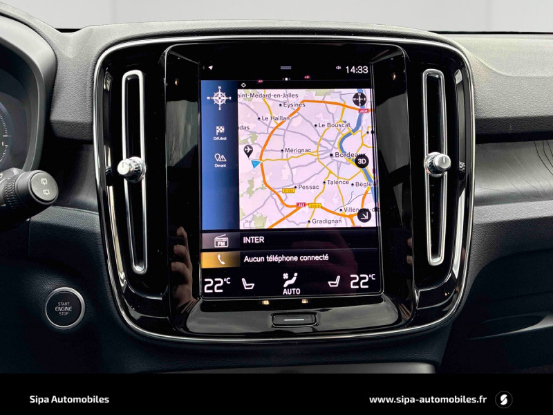 City Safety, système d'anticipation de collision intelligent : Détection des véhicules, cyclistes et piétons avec freinage automatique à pleine puissance. Détection des véhicules aux intersections avec freinage automatique à pleine puissance. Avertissement visuel et sonore paramétrable. Préparation des freins et ceintures de sécurité AV. / Climatisation automatique bi-zone (incluant ouïes d'aération à l'AR) / Commande vocale avancée (climatisation, médias, téléphone, eManuel utilisateur et navigation) / Déclenchement automatique des feux de detresse lors d'un freinage d'urgence / Envoi automatique d'une alerte au service d'urgence Volvo en cas de collision / Fonction climatisation de l'habitacle moteur coupé / Frein de parking électronique automatique en fonction Auto Hold (désactivable) / Freinage automatique post-collision (réduction du risque de suraccident) / Jantes alliage 19" 5 branches doubles Noir/Diamant 235/50 R19 / Phares LED avec feux de jour design marteau de Thor et feux de route adaptatifs / Pneus toutes saisons (sur jantes 18" et 19") / Pré-câblage électrique pour le crochet d'attelage / Sensus Connect avec Pack Navigation / Seuils de portes AV Volvo en Aluminium / Toit ouvrant panoramique avec rideau pare soleil intégréà commande électrique / Télécommande de verrouillage centralisé avec clé de contact intégrée, fermeture à distance des vitres et du toit ouvrant et fonction panique / Verrouillage automatique des portes à partir de 7 km/h / Volant sport en Cuir avec insert Aluminium / Accès au service d'assistance Volvo via bouton dédié dans le plafonnier / Accès au service d'urgence Volvo via bouton SOS dans le plafonnier / Airbag conducteur à déclenchement différencié / Airbag passager désactivable avec témoin d'indication (on/off) / Alerte vigilance conducteur / Application Volvo Cars / Assise des sièges AV extensible manuellement / Badge T4/T5 Recharge sur le hayon / Bas de caisse et passages de roues Anthracite / Ceintures de sécuritéà inertie à 3 points d'ancrage (sur les 5 sièges) / Combiné d'instruments digital 12,3" / Contour de la calandre chromé / Contrôle de la transmission en descente HDC / Câble de recharge de 4,5 mètres / 10 A / Direction assistée asservie à la vitesse / Eclairage d'accompagnement et éclairage d'approche / Eclairage d'intérieur : Spots de lecture à l'AV avec éclairage des passagers AV, éclairages dans le coffre (x2). Miroirs de courtoisie éclairés avec éclairage d'ambiance au niveau des pieds. Boîte à gants éclairée / Ecran tactile multimédia haute résolution 9" personnalisable / Espace de rangement sous la console centrale / Fonction Eco : optimisation des paramètres véhicule pour une conduite économique et écologique (à la demande) / Fonction Stop&Start : coupe et redémarre le moteur lorsque la voiture est à l'arrêt (déconnectable) / Gravure Recharge sur les montants AR / Hayon électrique avec fonction Confort / Incrustations Urban Grid / Indicateur de perte de pression des pneus / Kit anti-crevaison / Matériaux anti-allergènes dans l'habitacle (sellerie tissu, ceintures de sécurité, incrustations) / Miroirs de courtoisie éclairés, spots de lecture à l'AV et éclairage dans le coffre / Ouverture des portes sans clé Keyless Entry incluant éclairage du sol dans les poignées de porte AV / Pare-brise en verre feuilleté et colonne de direction rétractable en cas de choc / Pistage du véhicule par le service en cas de vol du véhicule / Port de recharge sur l'aile AV gauche / Porte-cartes bancaires et cartes de services intégré dans la planche de bord / Porte-ticket de parking et d?autoroute / Protection de pare-chocs AV et AR Noir / Préparation pour le système Isofix (places latérales de la 2ème rangée de sièges) / Rappel d'oubli de bouclage de ceinture de sécurité AV et AR / Réglage en hauteur manuel des ceintures AV / Rétroviseur intérieur électrochrome sans contour / Rétroviseurs couleur carrosserie avec partie inférieure noir / Sabots de protection AV et AR Noir / Sièges conducteur et passager avec réglage électriques des supports lombaires 4 positions / Sonde de température extérieure et horloge / Sortie d'échappement non visible / Système audio Volvo Premium Sound by Harman/Kardon 600 W avec 13 HP et technologie Subwoofer / Système de contrôle de la stabilité et de la traction STC / Système de contrôle du freinage du véhicule VDC / Système de filtration de l'air CleanZone Advanced avec indication de la qualité de l'air intérieur / Système de protection anti-sortie de route / Système de protection collision frontale : Détection du risque de collision frontale (de 65 à 140 km/h) avec action corrective sur la direction / Système de protection contre le coup du lapin WHIPS (sièges AV) / Système de protection contre les chocs latéraux SIPS / Système de protection en cas de sortie de route / Système de pré-conditionnement de l'habitacle (chauffage) / Système de recharge sans fil pour smartphone situé dans le compartiment de rangement AV / Système de réglage en hauteur des phares / Système intelligent d'information au conducteur IDIS / Sécurité enfant à commande électrique / Tapis de sol textile AV/AR / Trappe de carburant intelligente sans bouchon / Trousse de 1er secours et triangle de présignalisation / Tunnel de la console centrale Anthracite / Verrouillage de sécurité enfant manuel / Vitres AV et AR électriques à impulsion (montée et descente) avec système anti-pincement